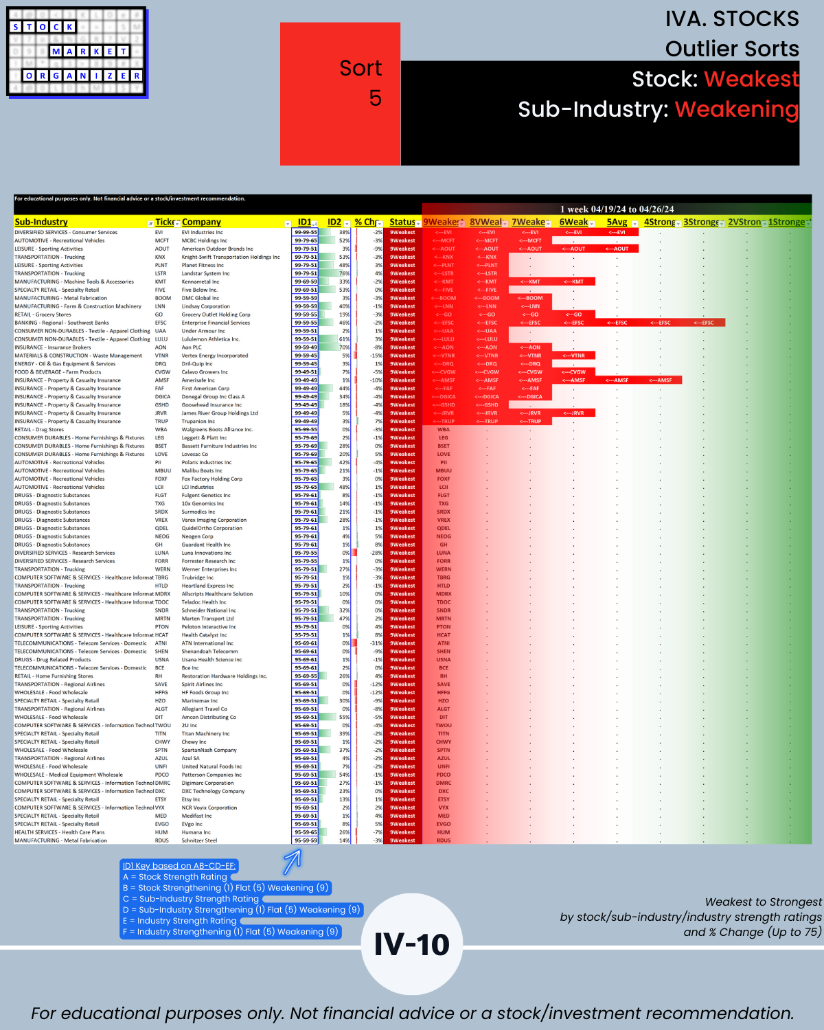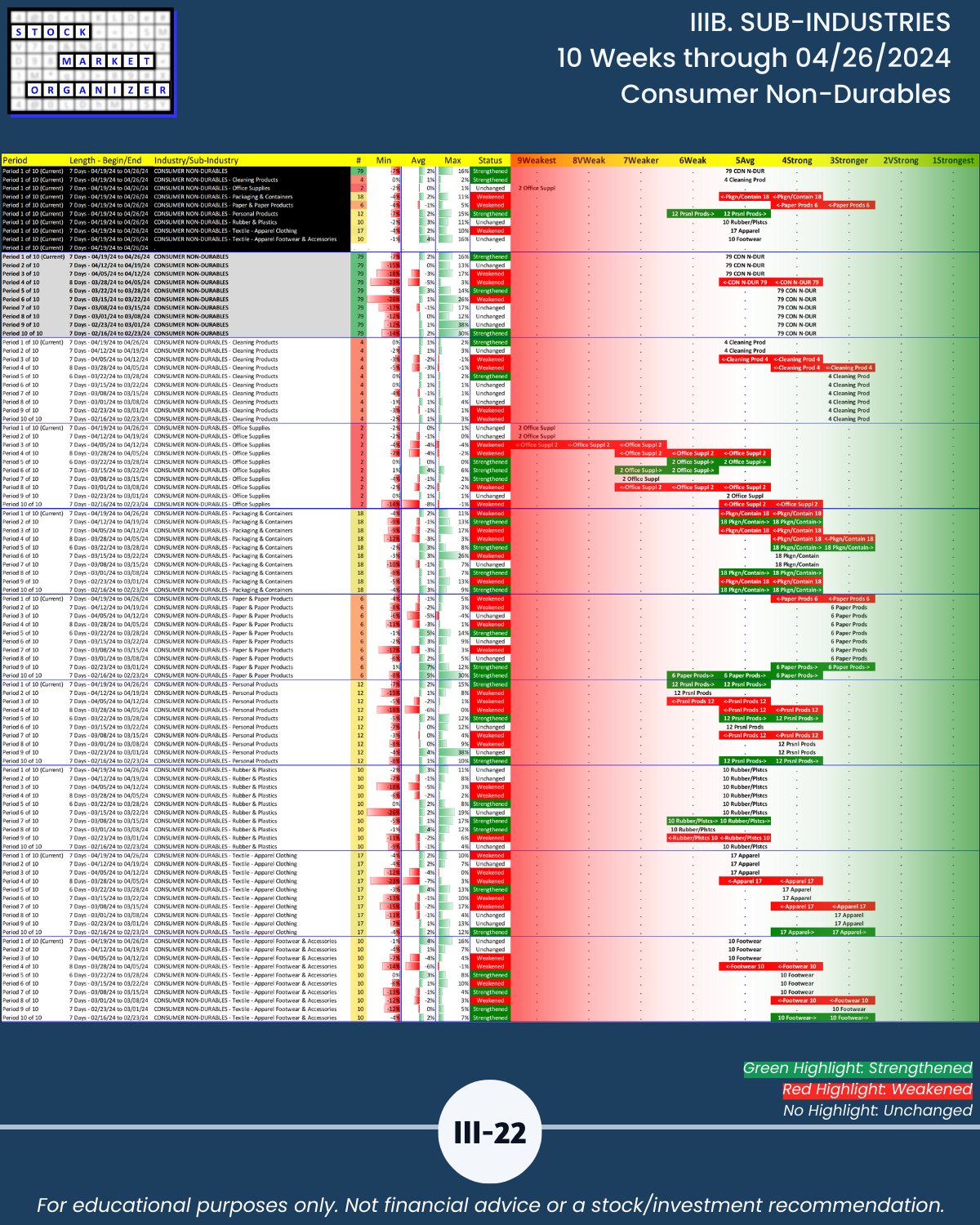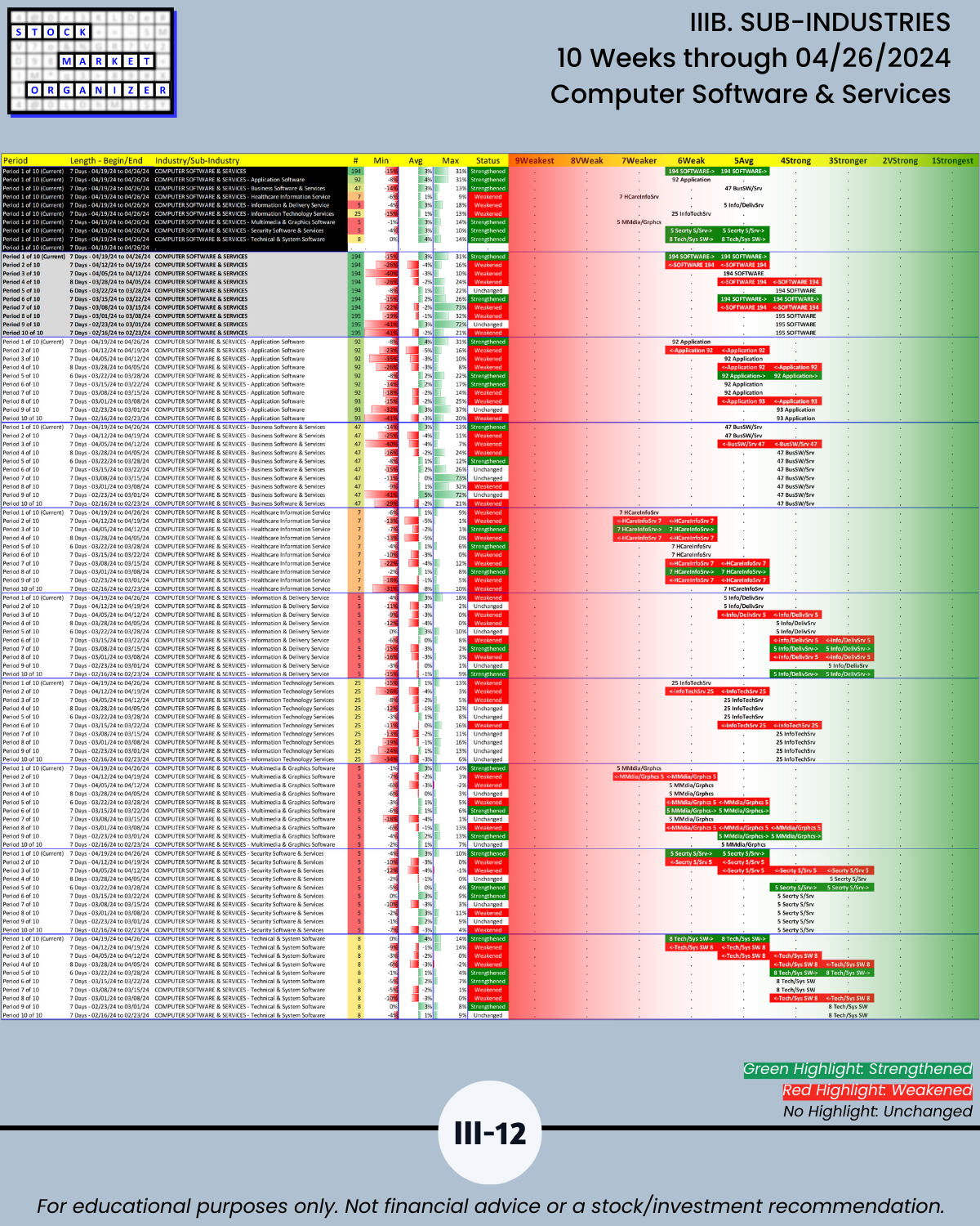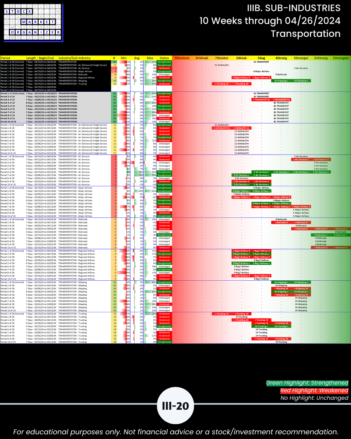 IIIB. SUB-INDUSTRIES 10-Week Strengthening/Weakening
