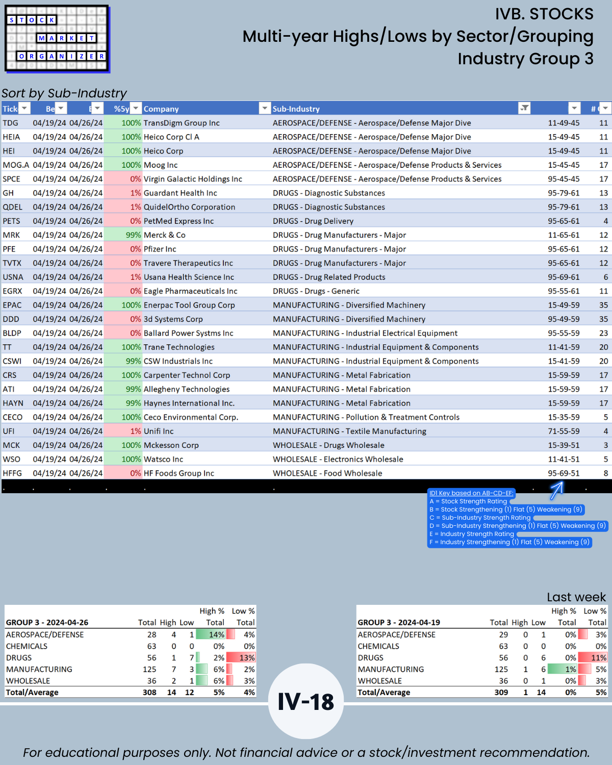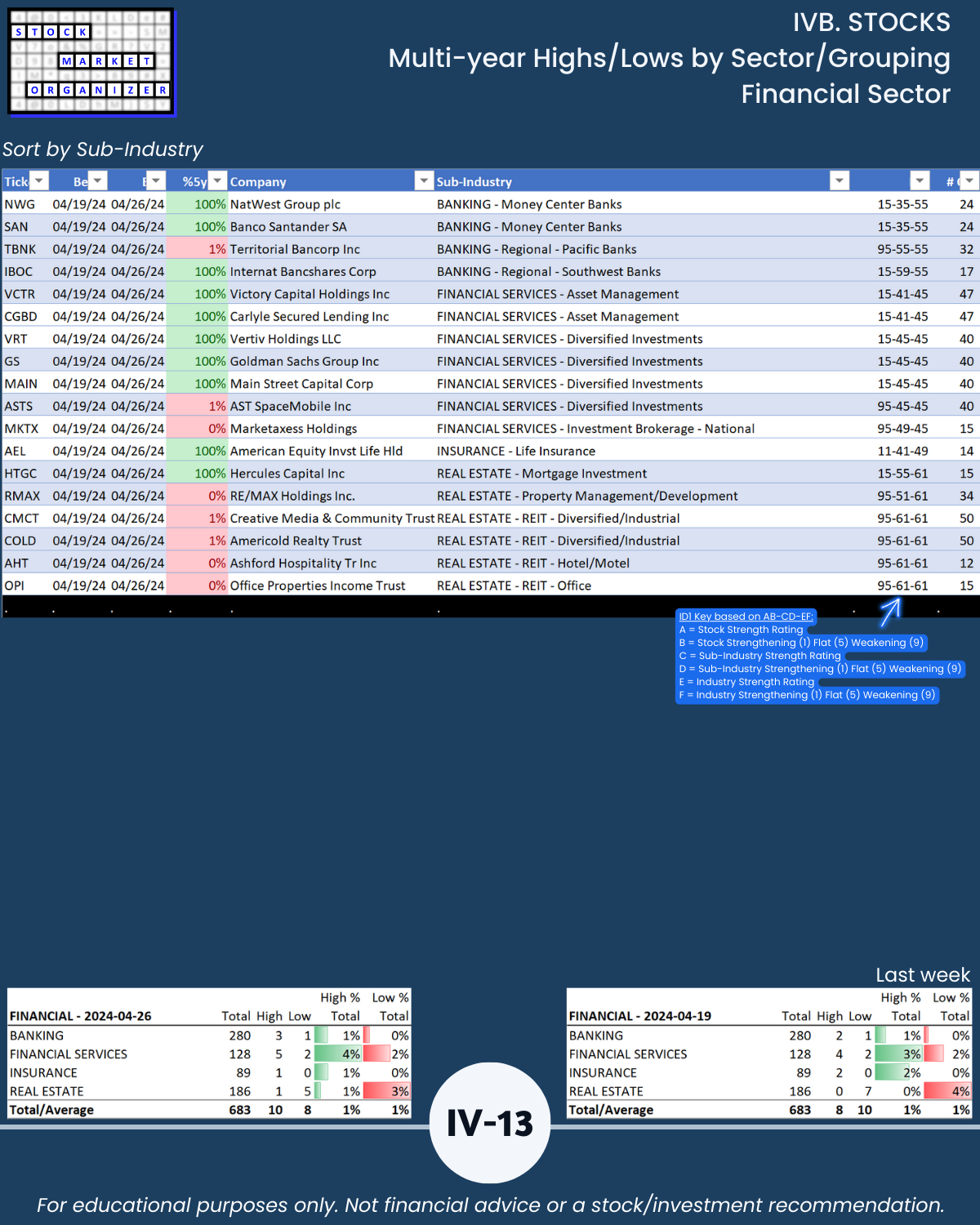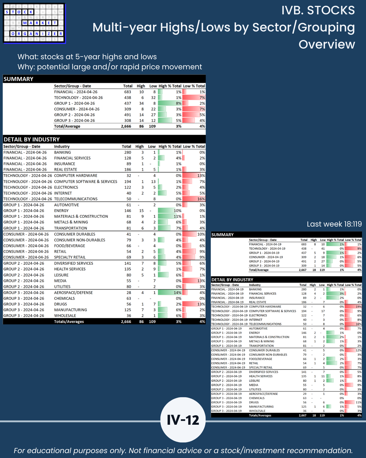 IVB. STOCKS Multi-Year Highs/Lows by Sector/Grouping