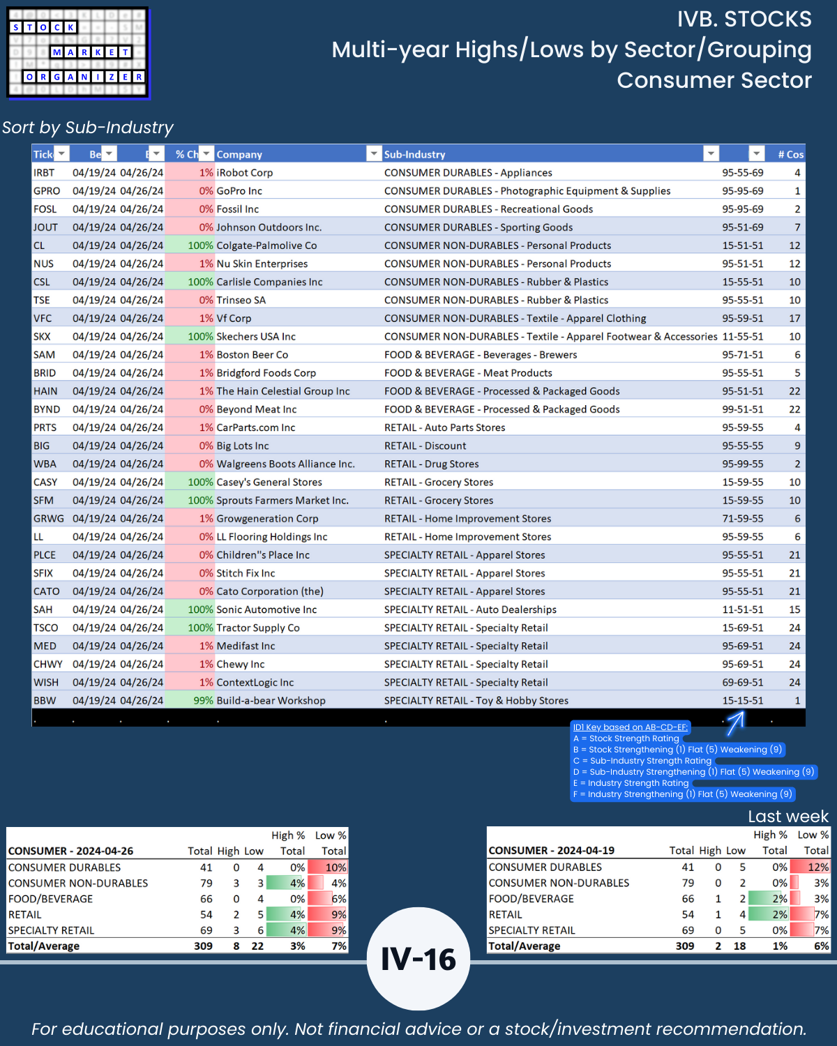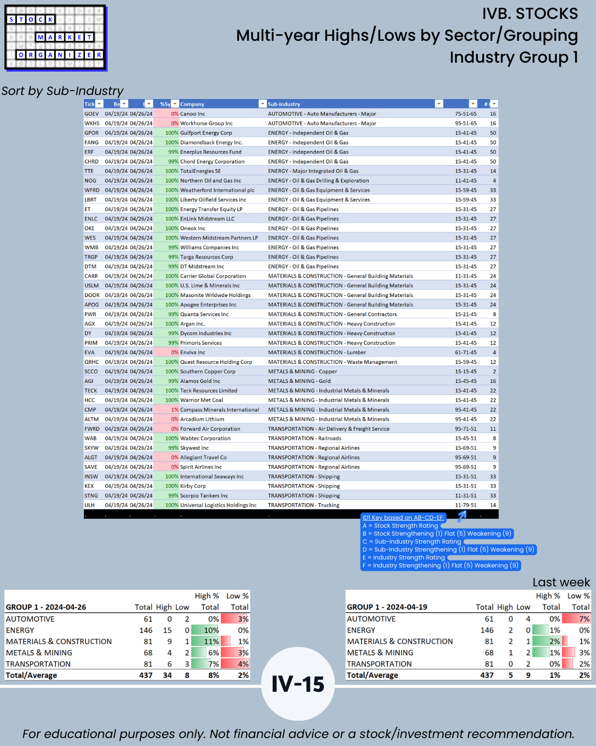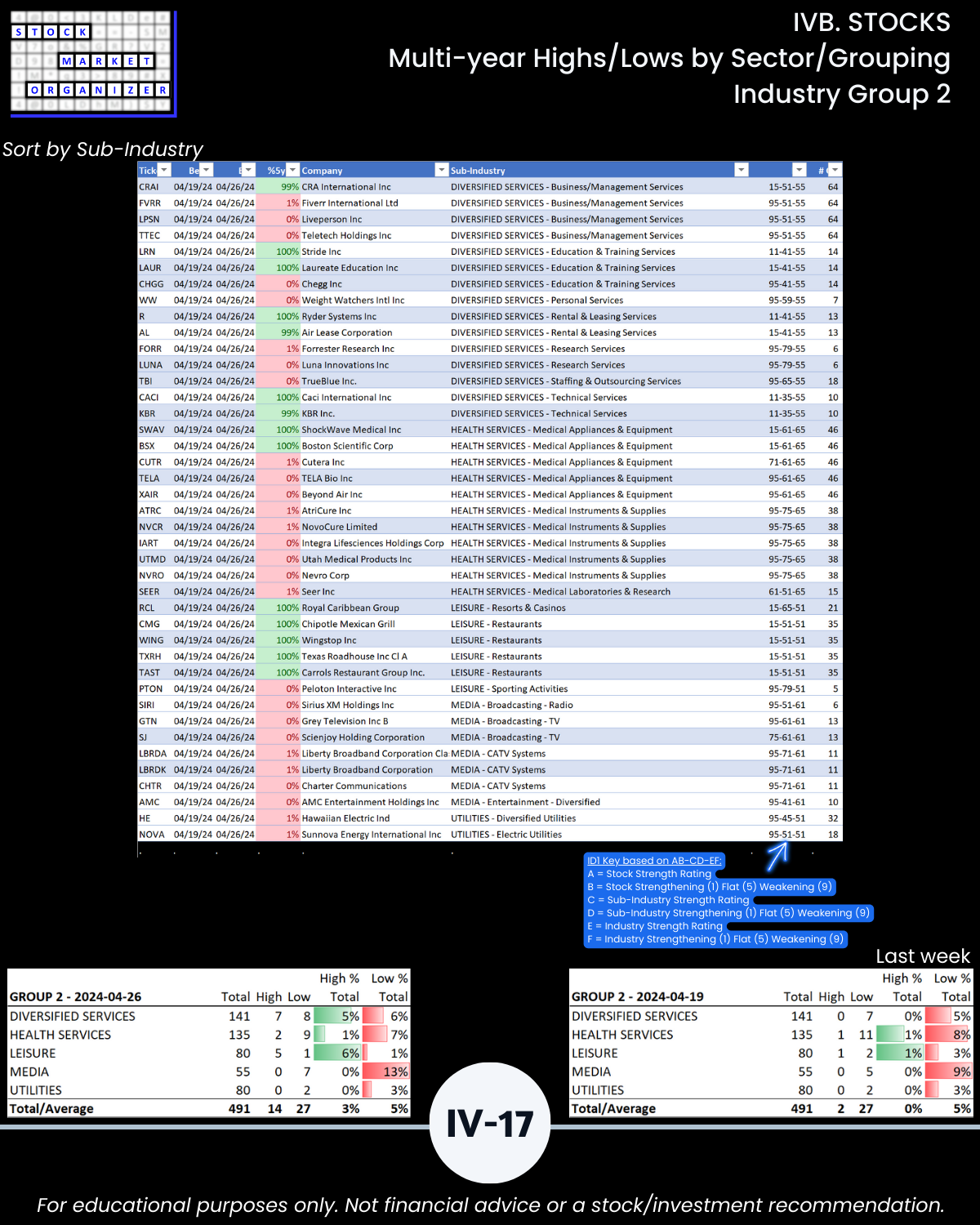 IVB. STOCKS Multi-Year Highs/Lows by Sector/Grouping