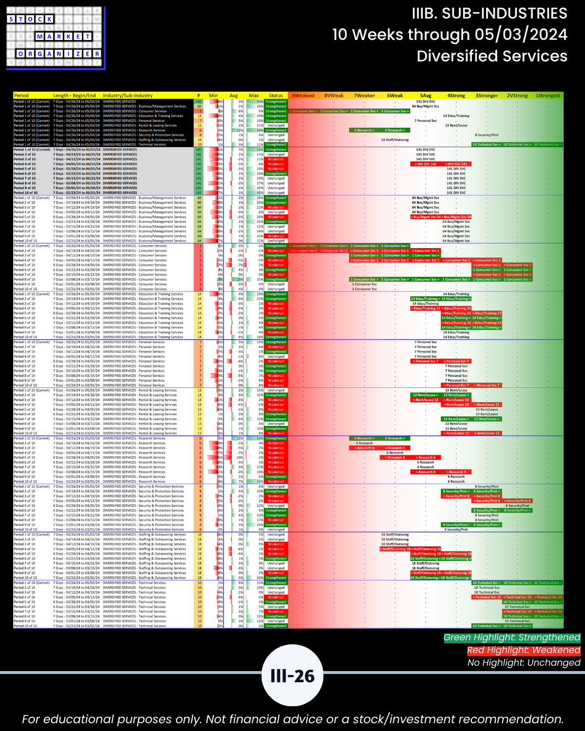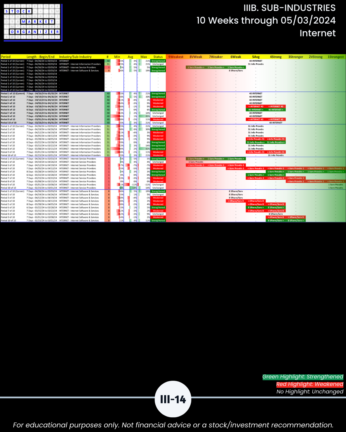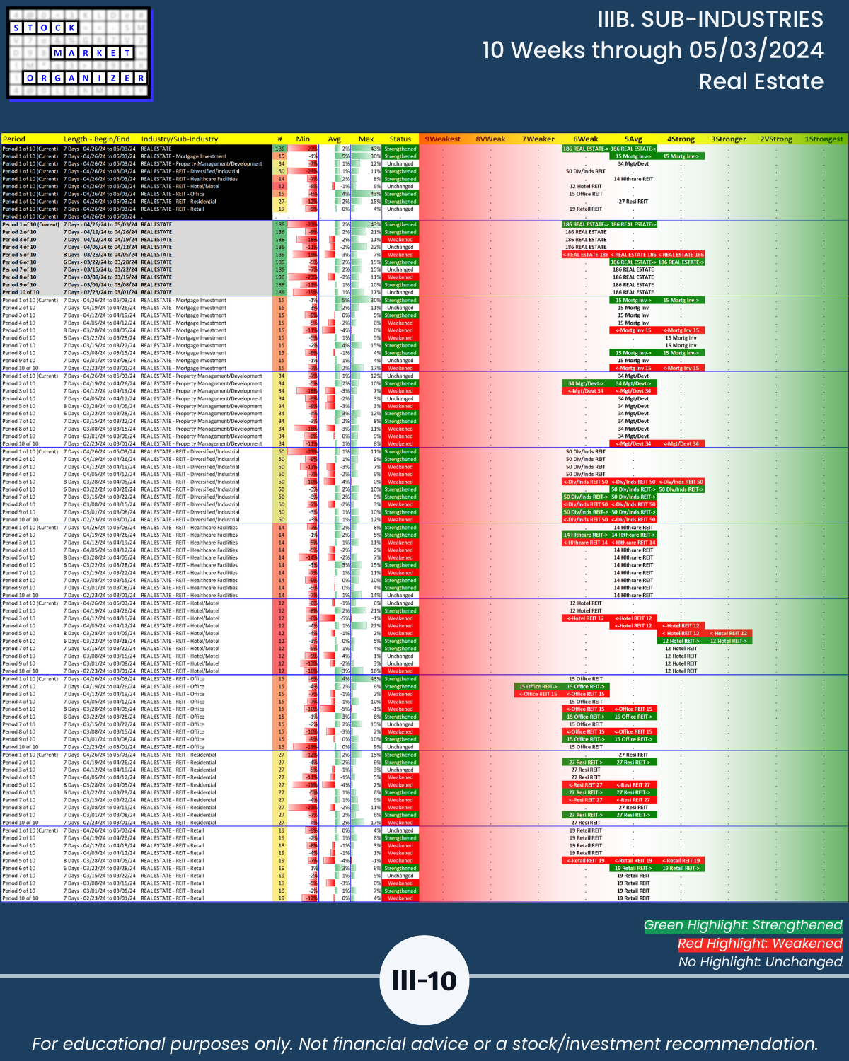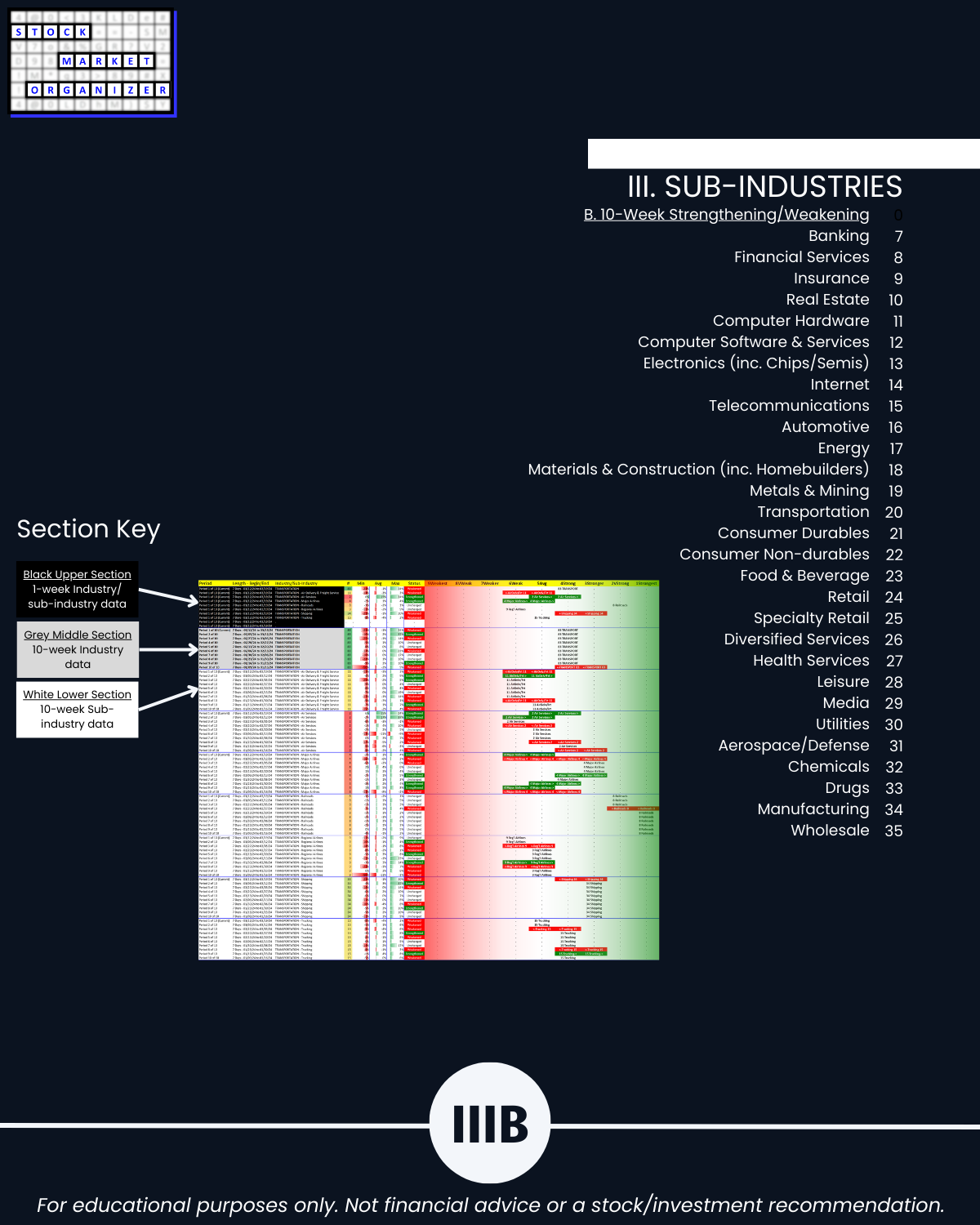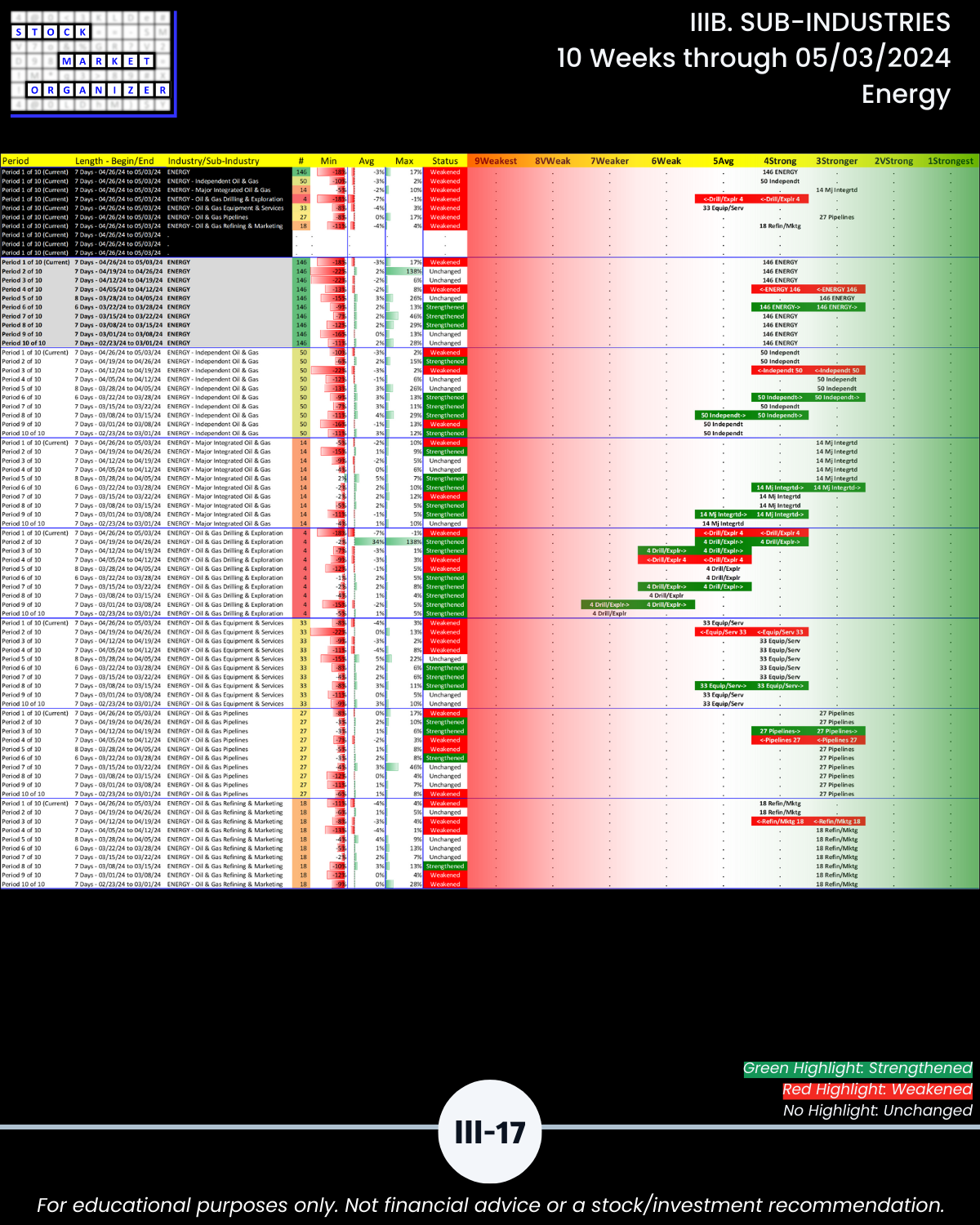 IIIB. SUB-INDUSTRIES 10-Week Strengthening/Weakening