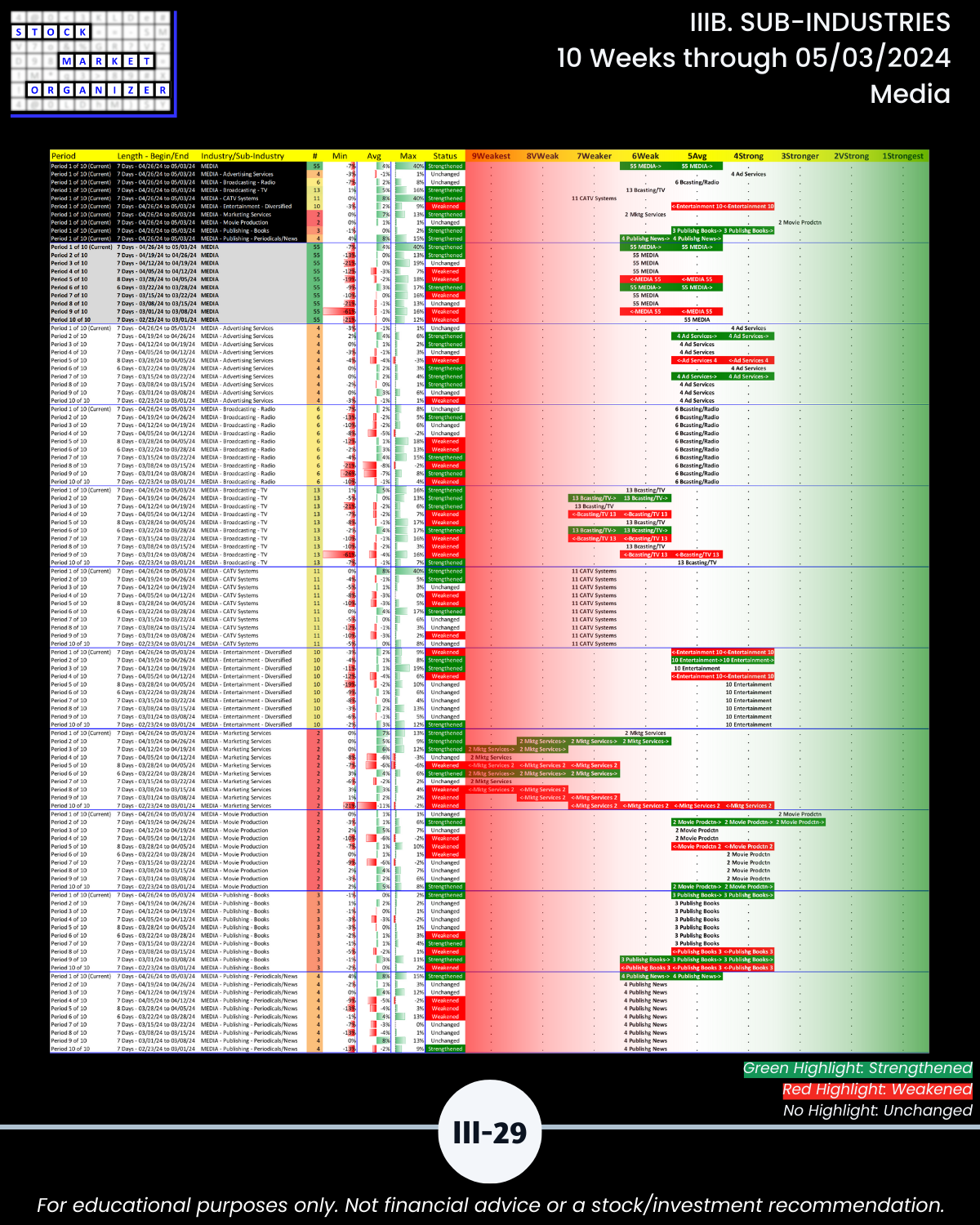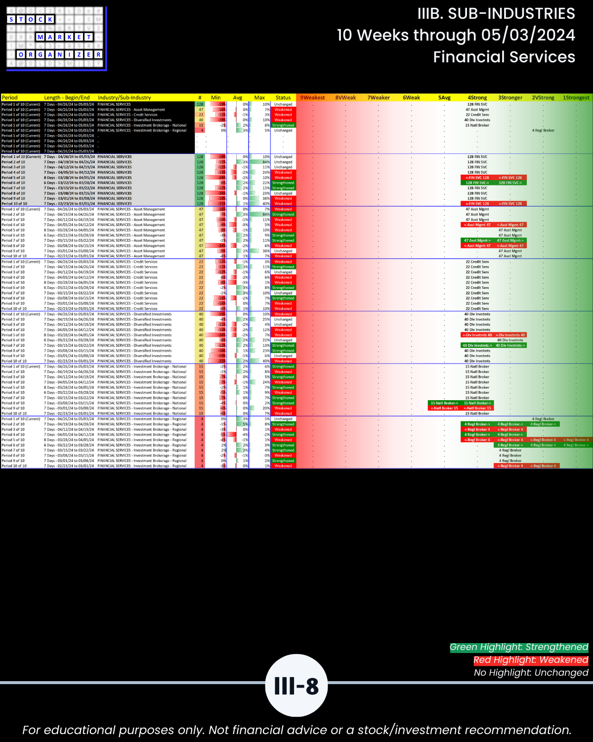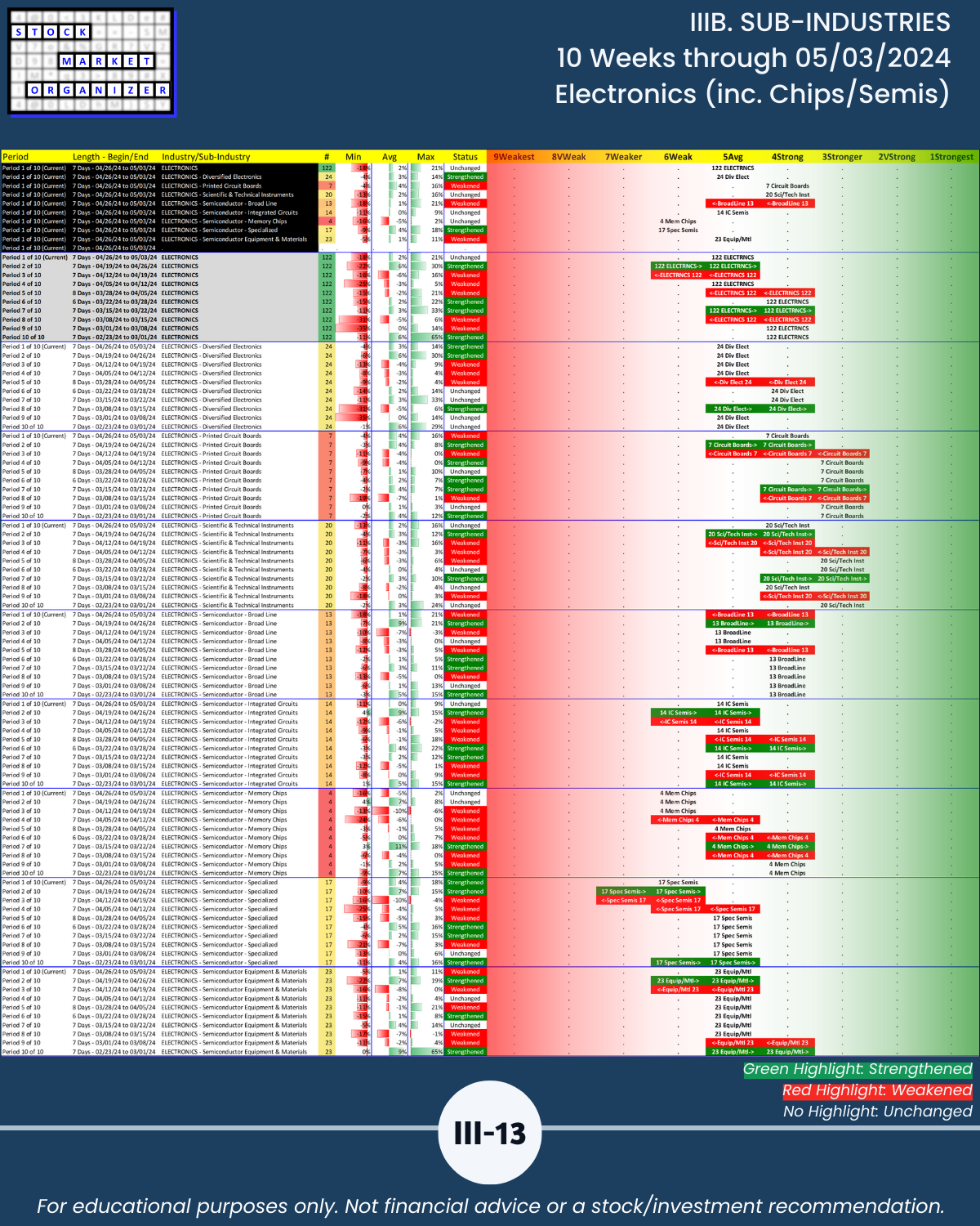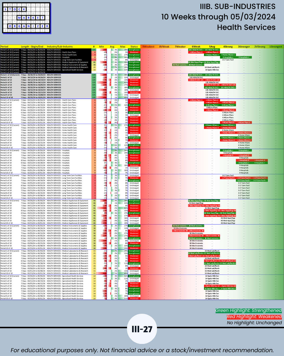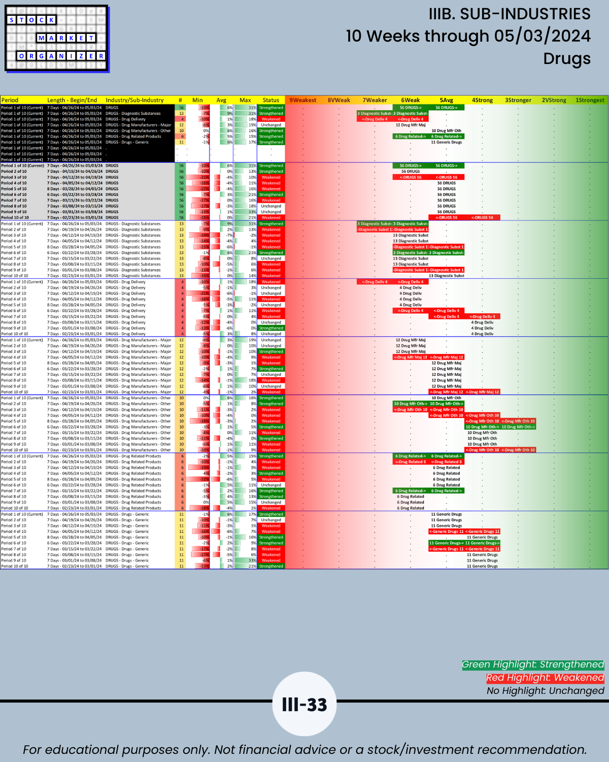 IIIB. SUB-INDUSTRIES 10-Week Strengthening/Weakening