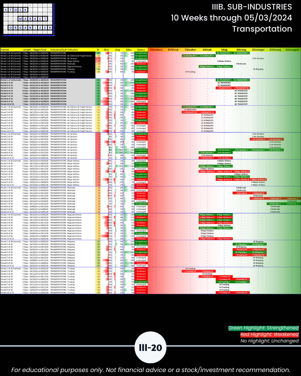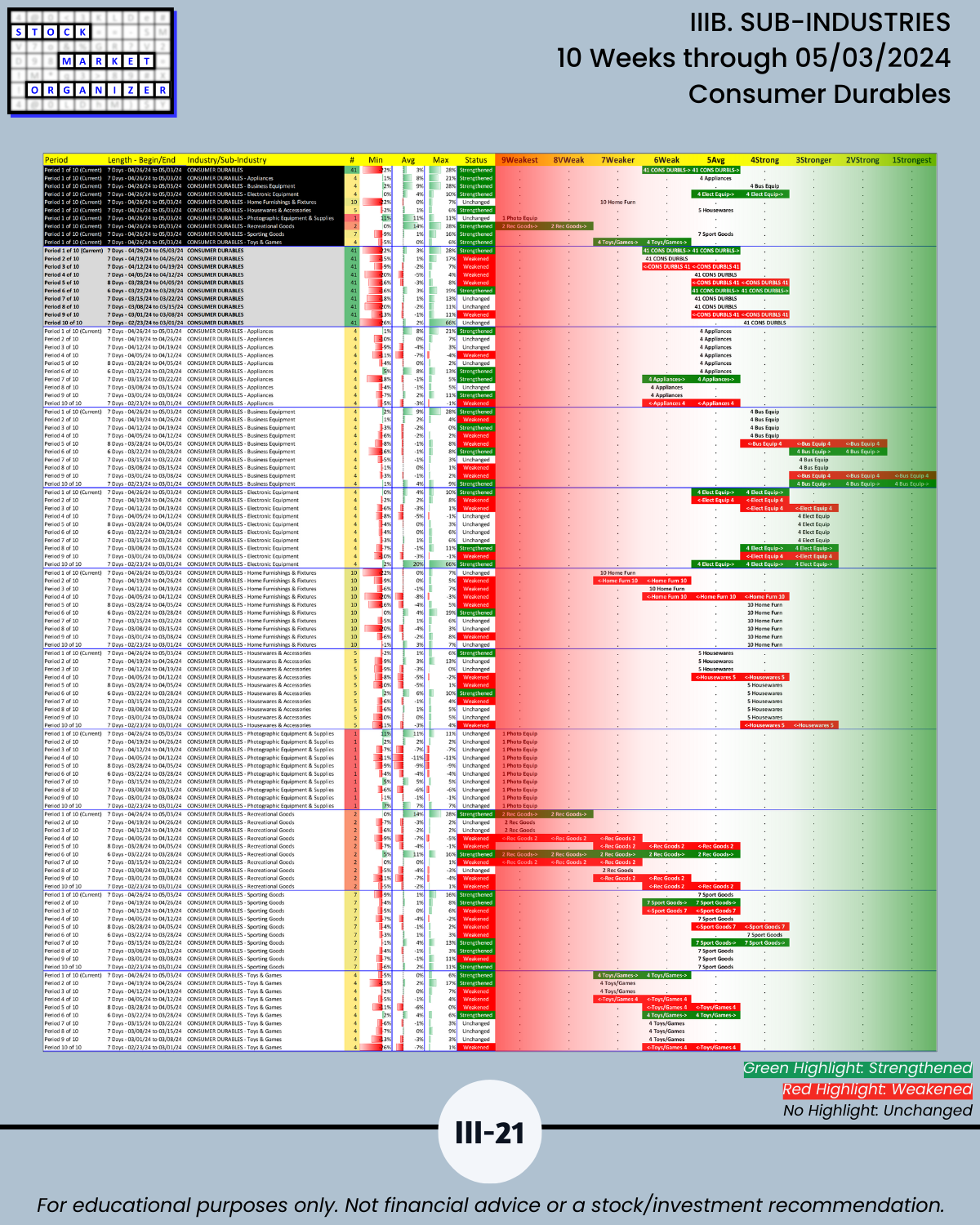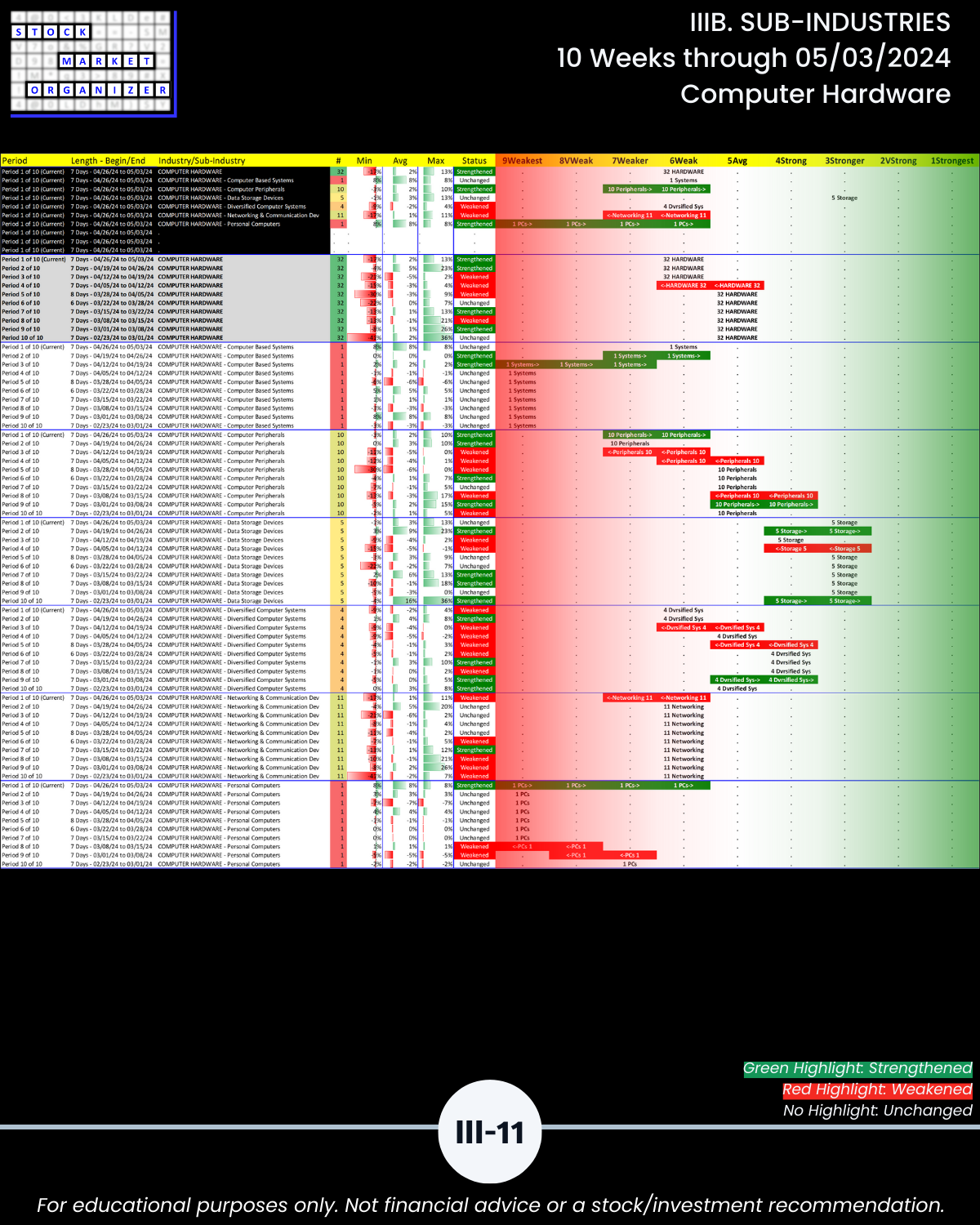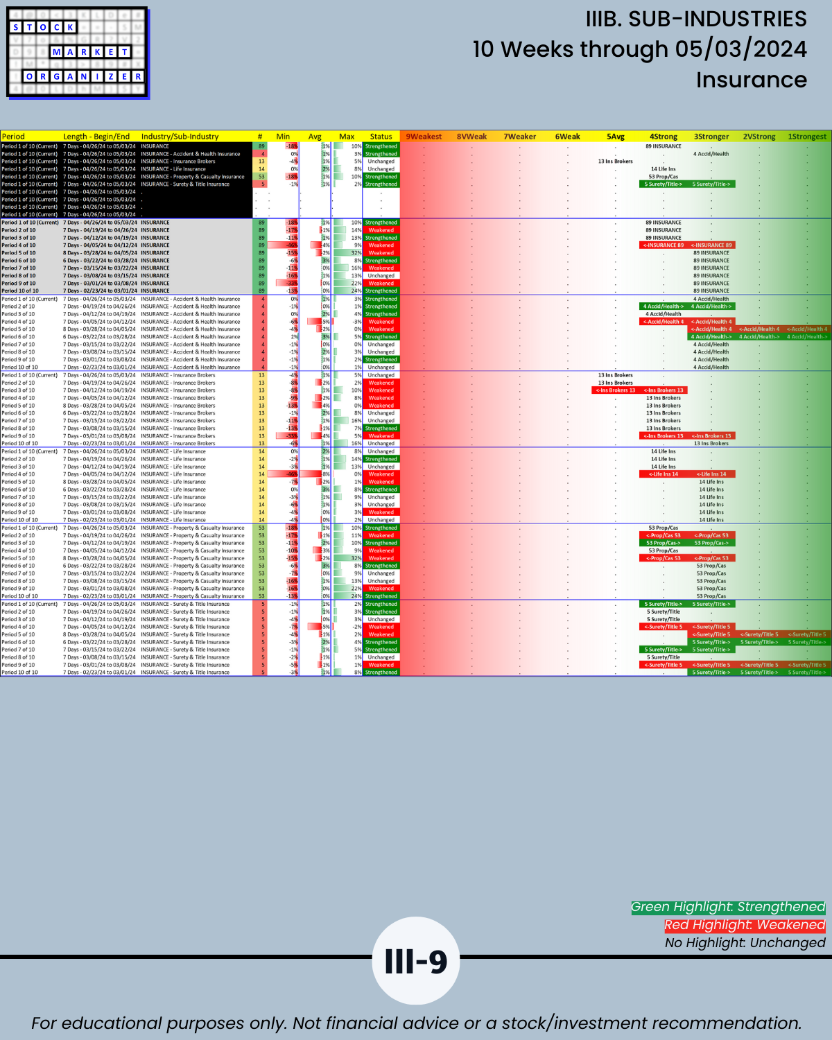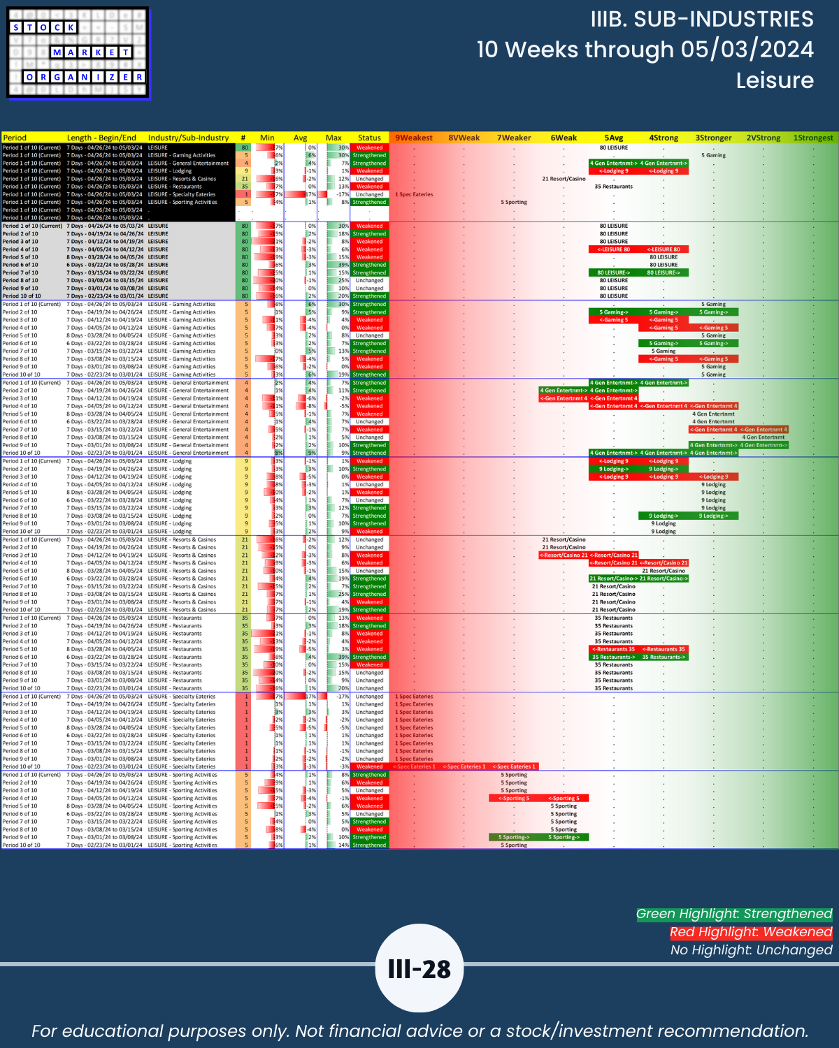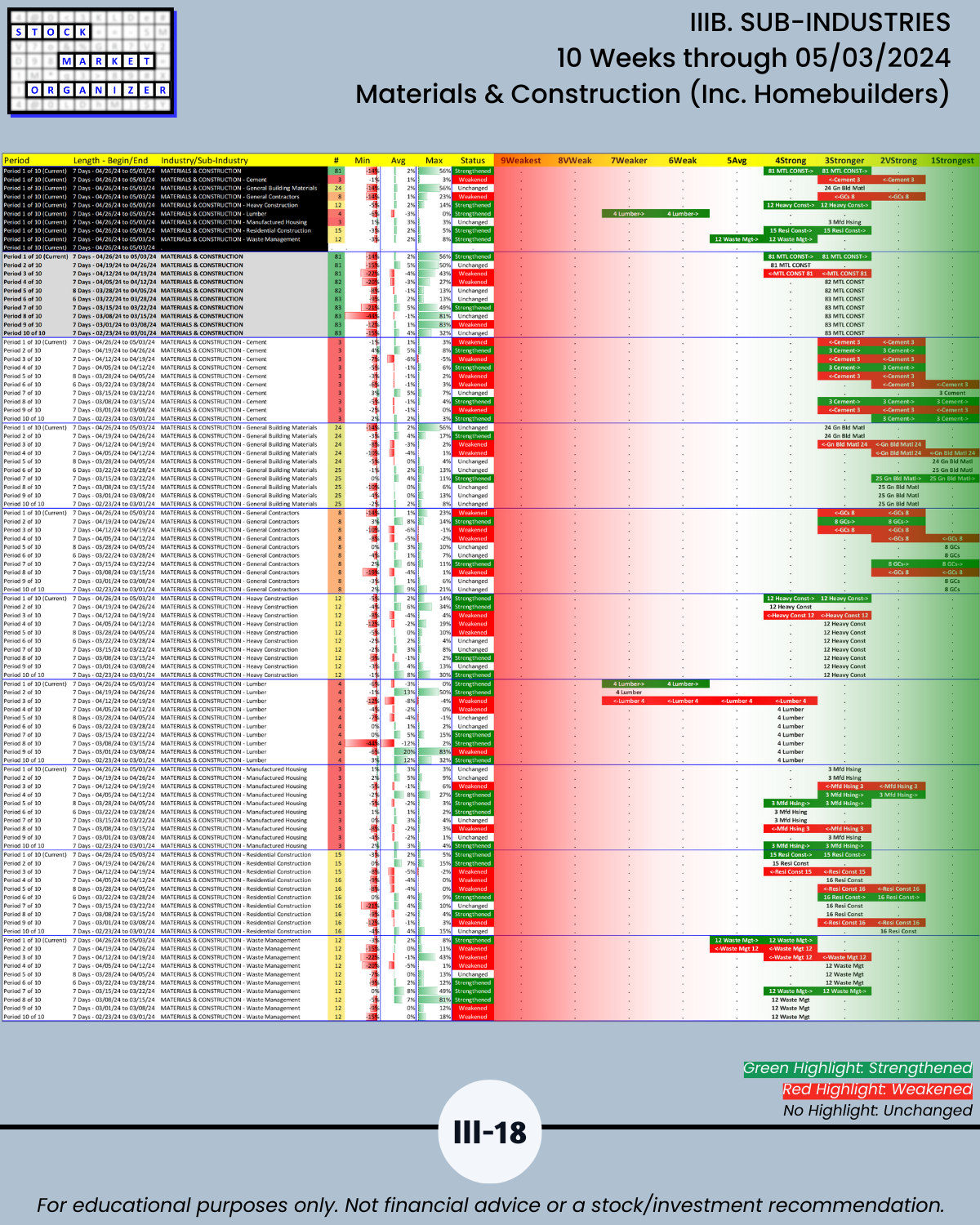 IIIB. SUB-INDUSTRIES 10-Week Strengthening/Weakening