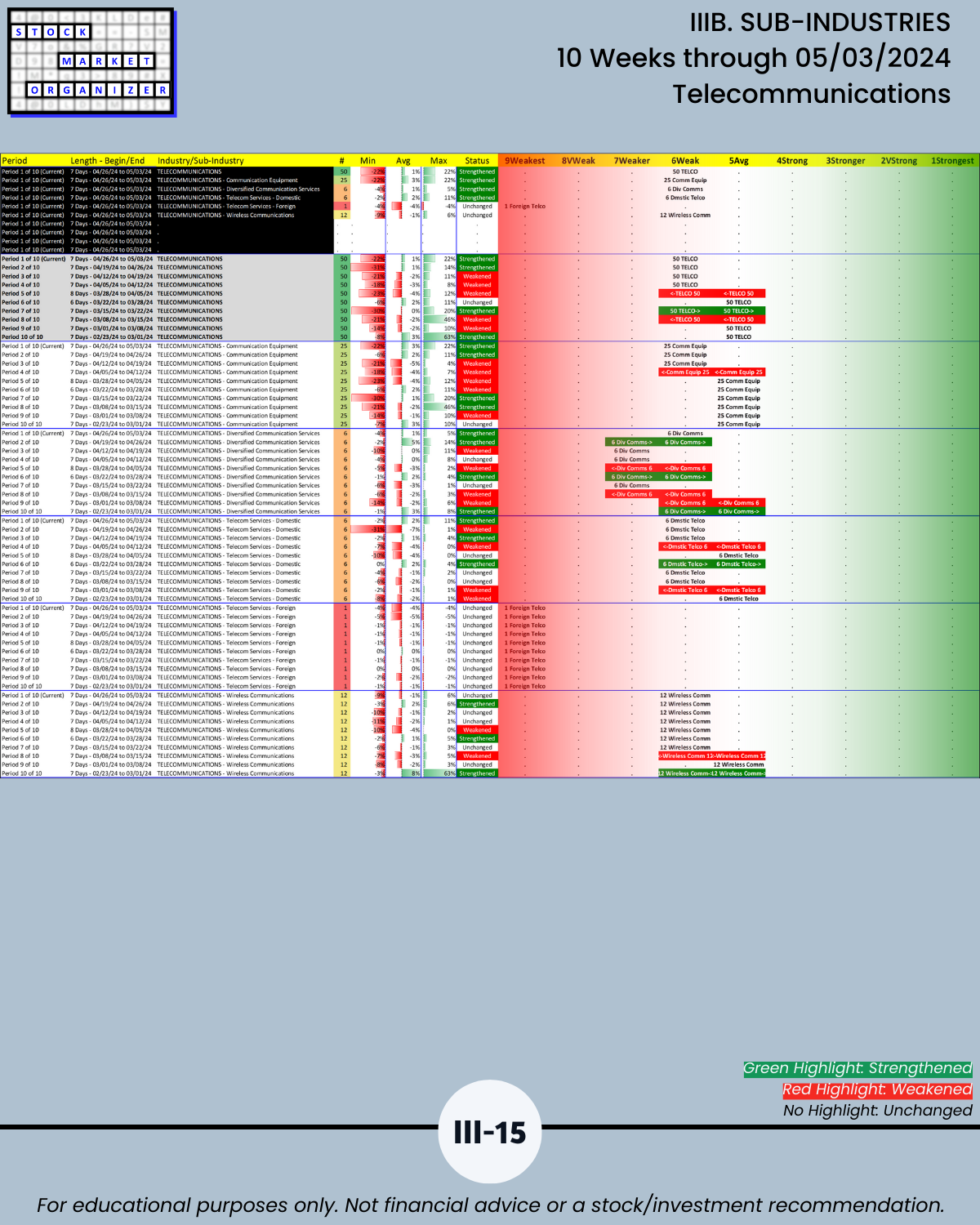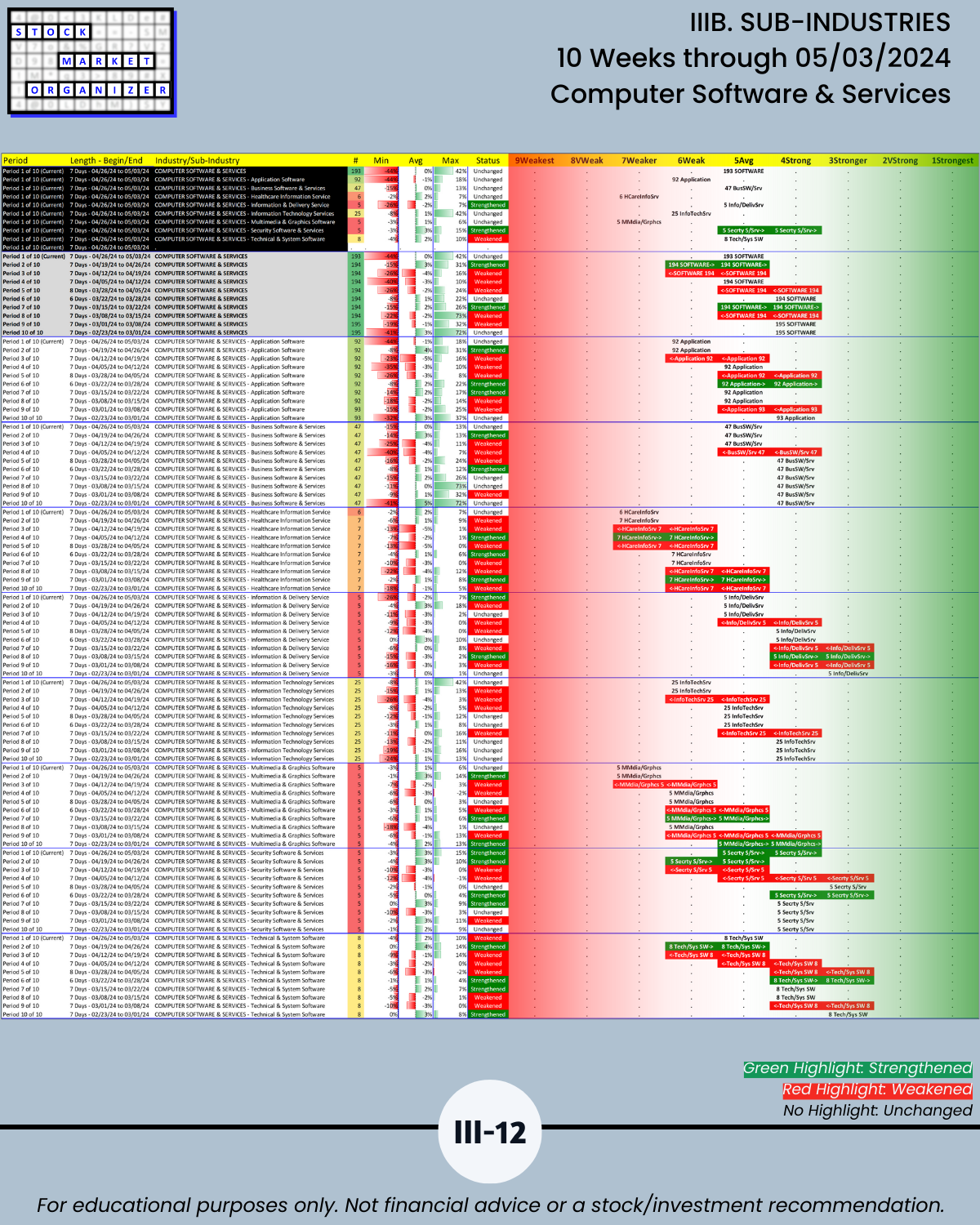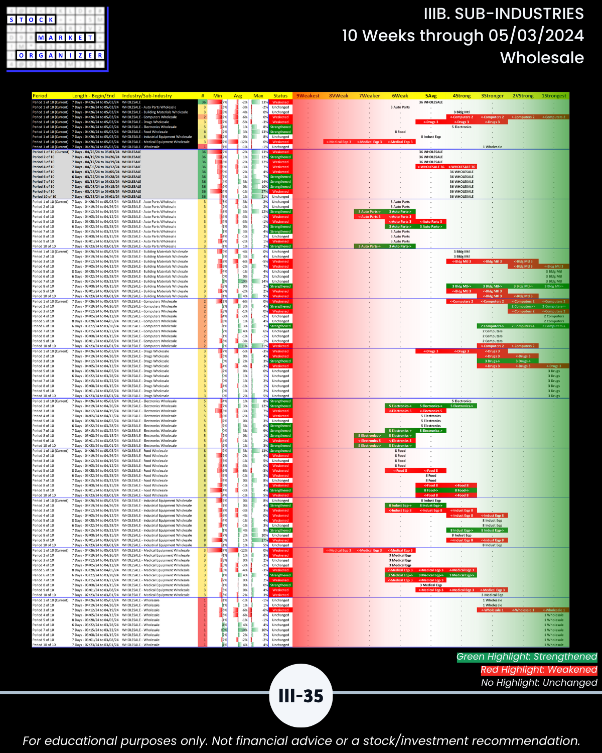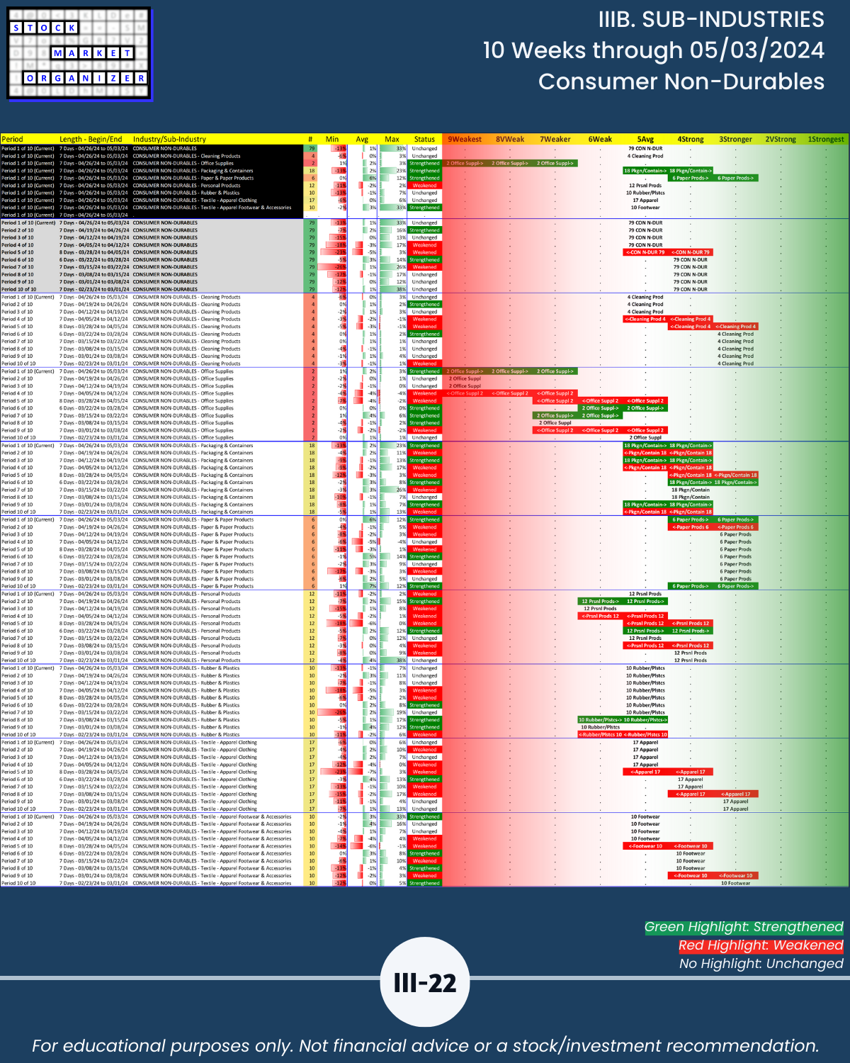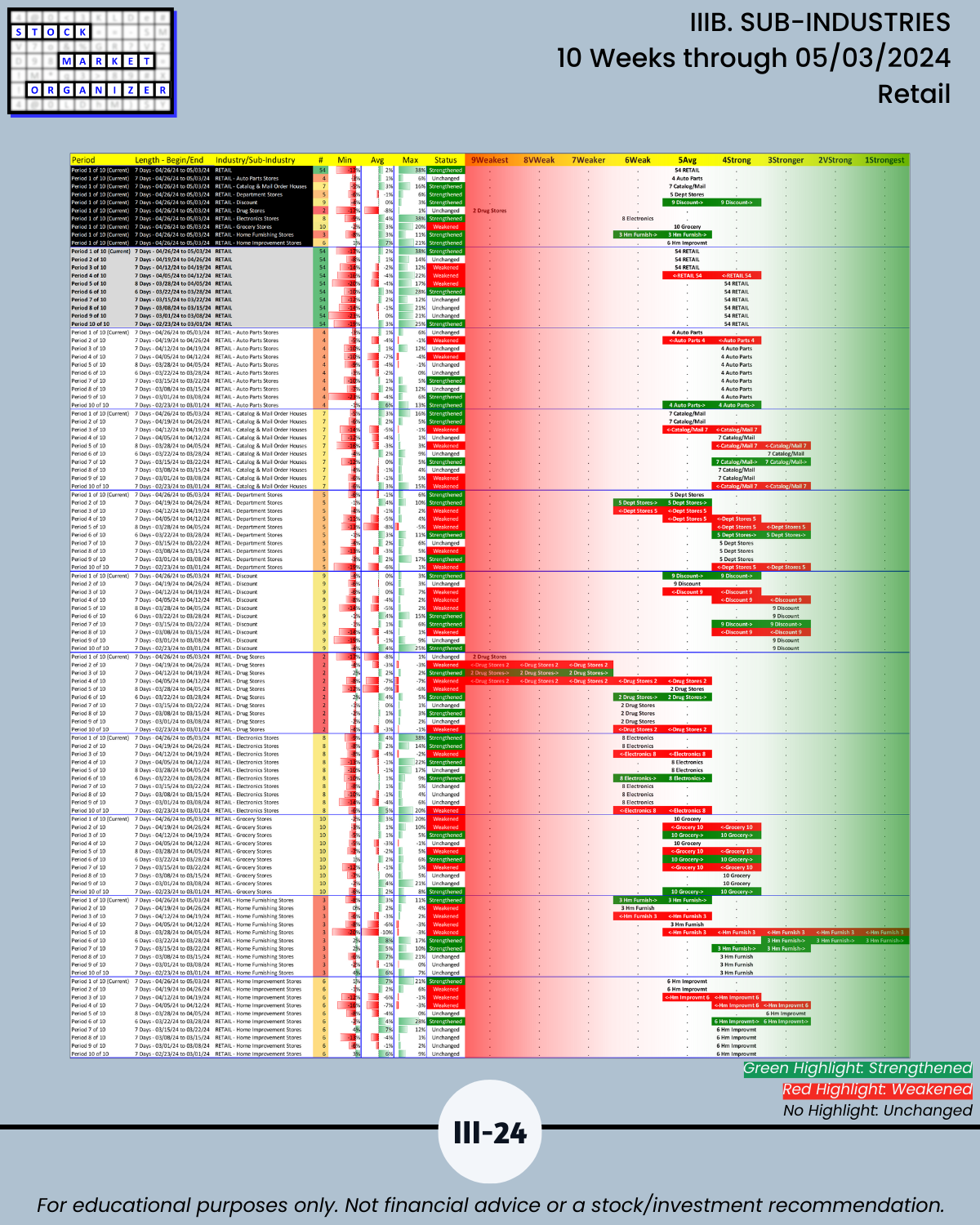 IIIB. SUB-INDUSTRIES 10-Week Strengthening/Weakening