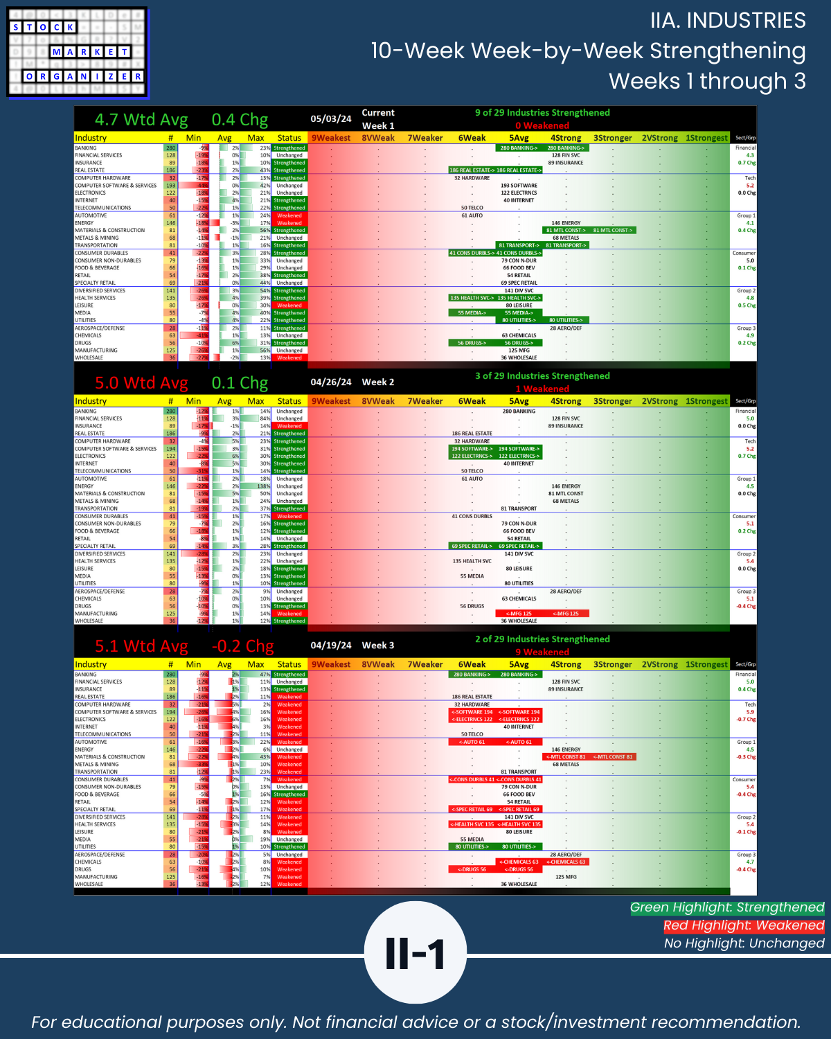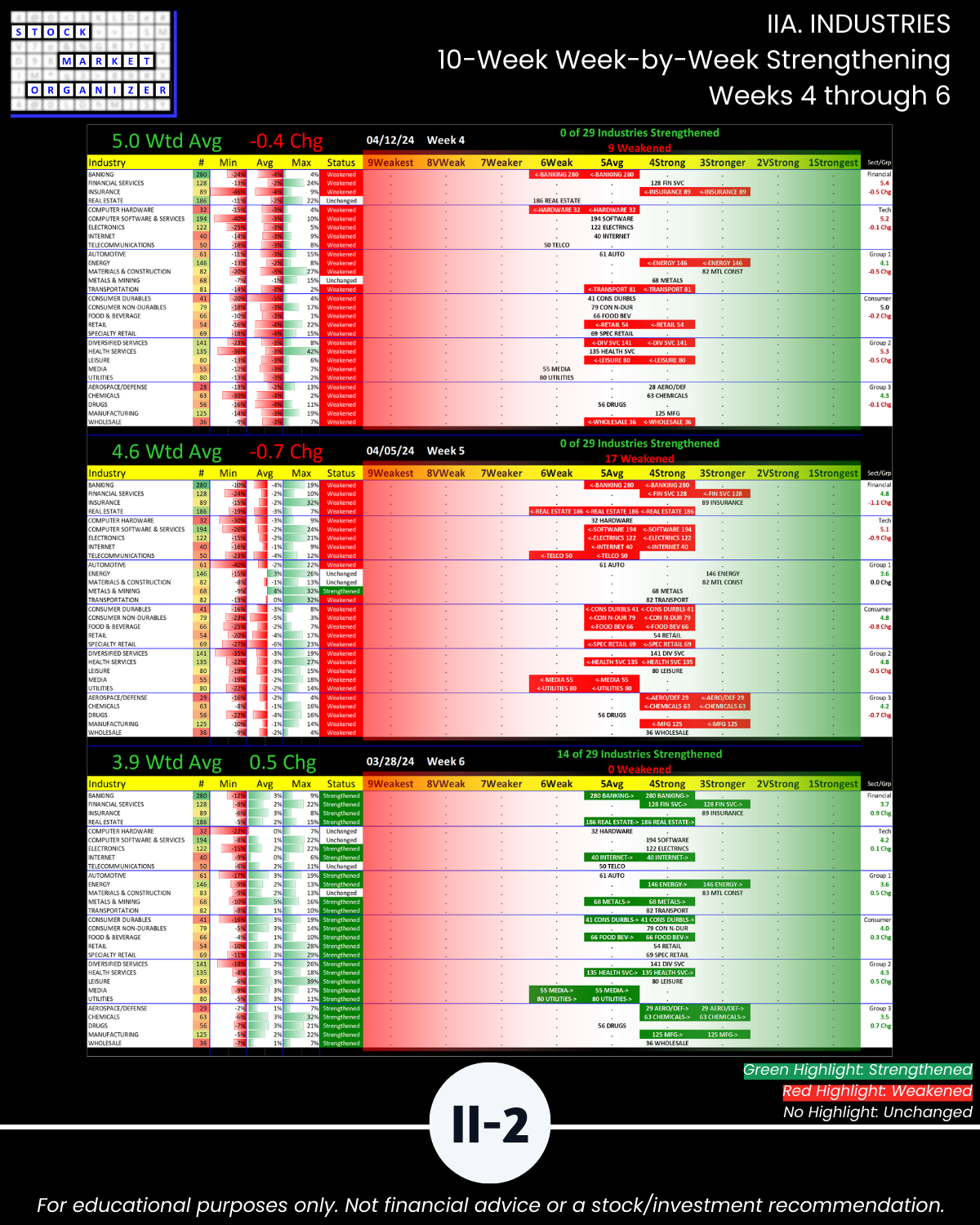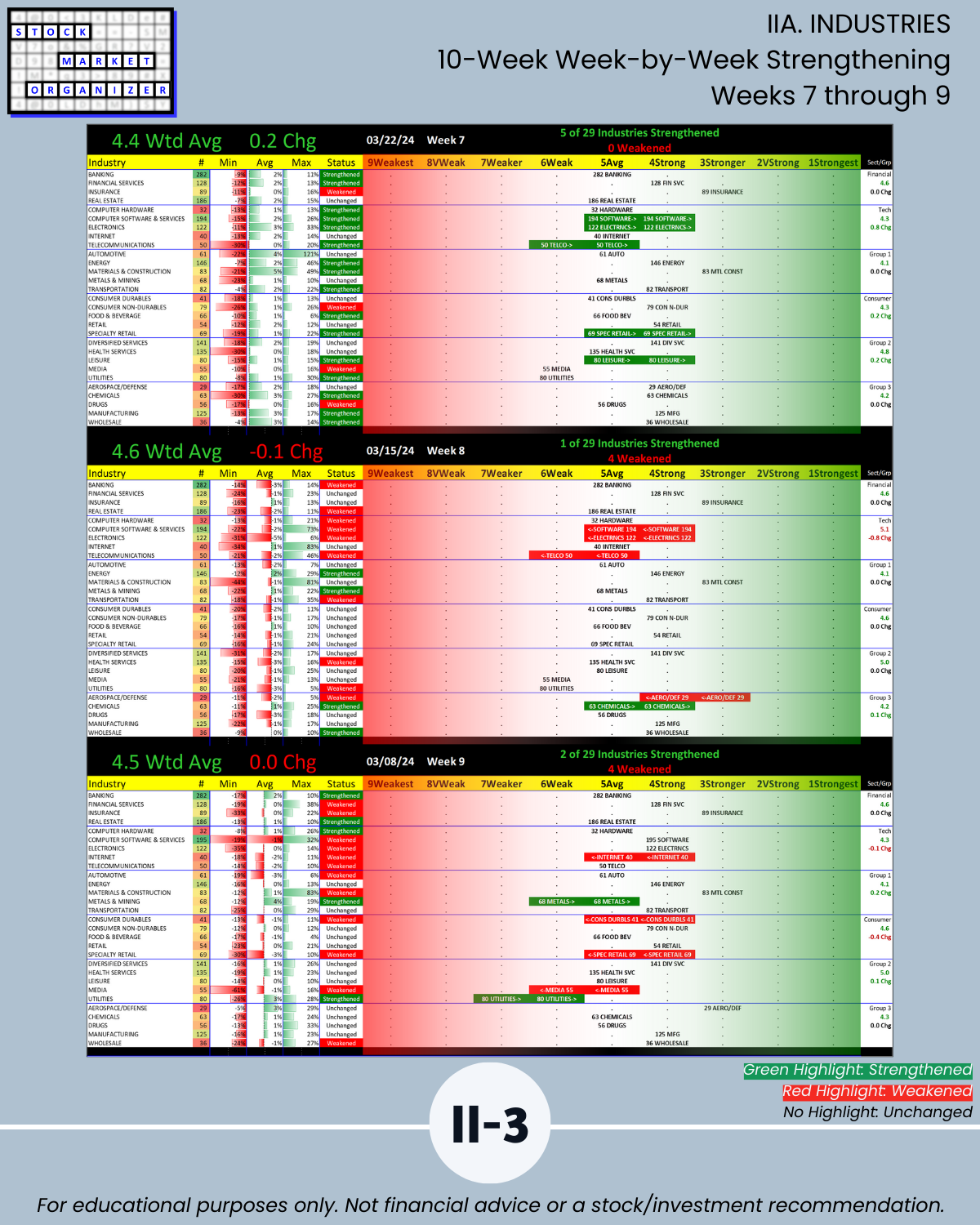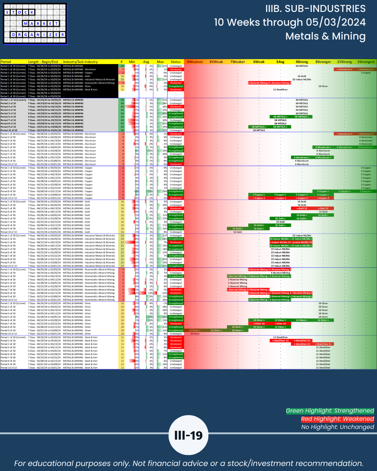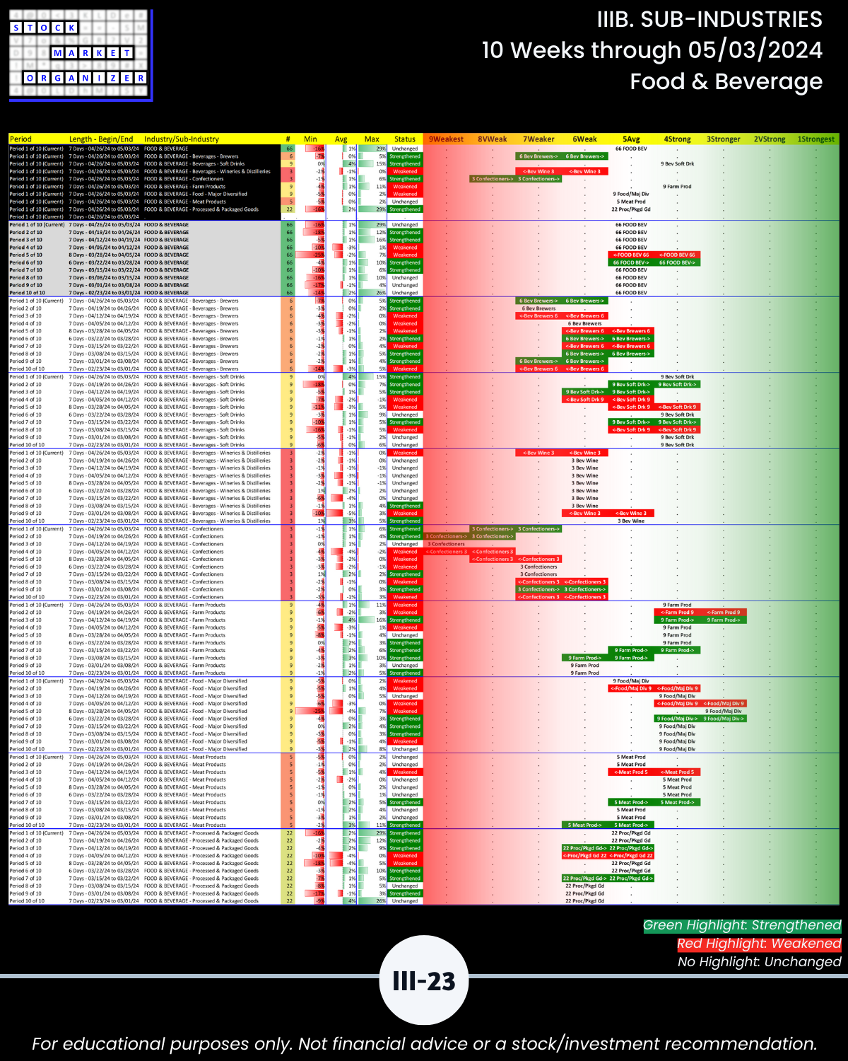 IIIB. SUB-INDUSTRIES 10-Week Strengthening/Weakening