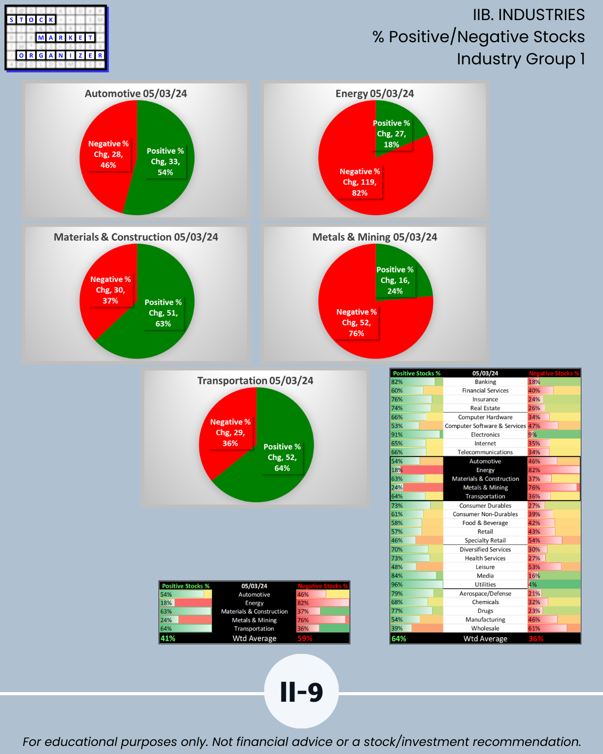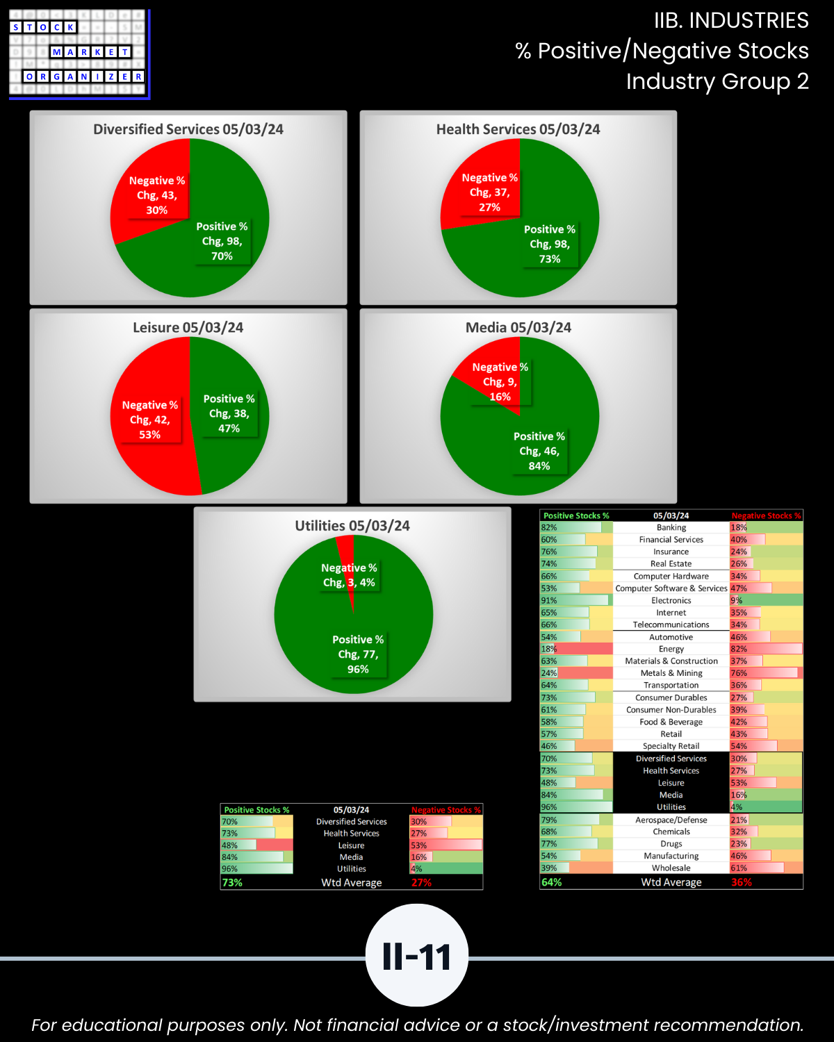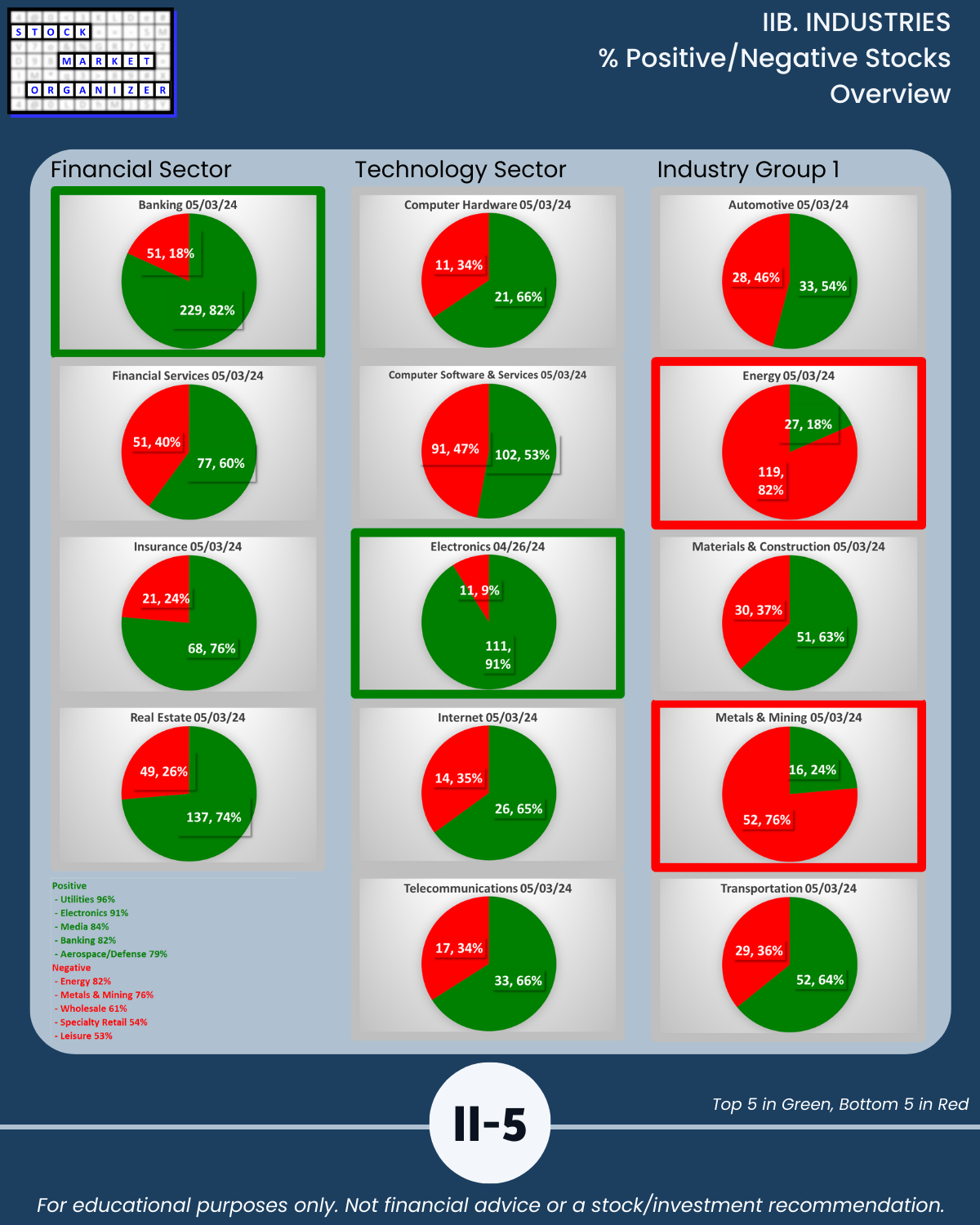 IIB. INDUSTRIES % Positive/Negative Stocks