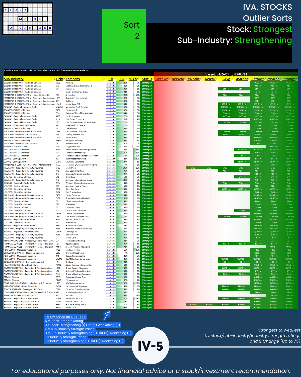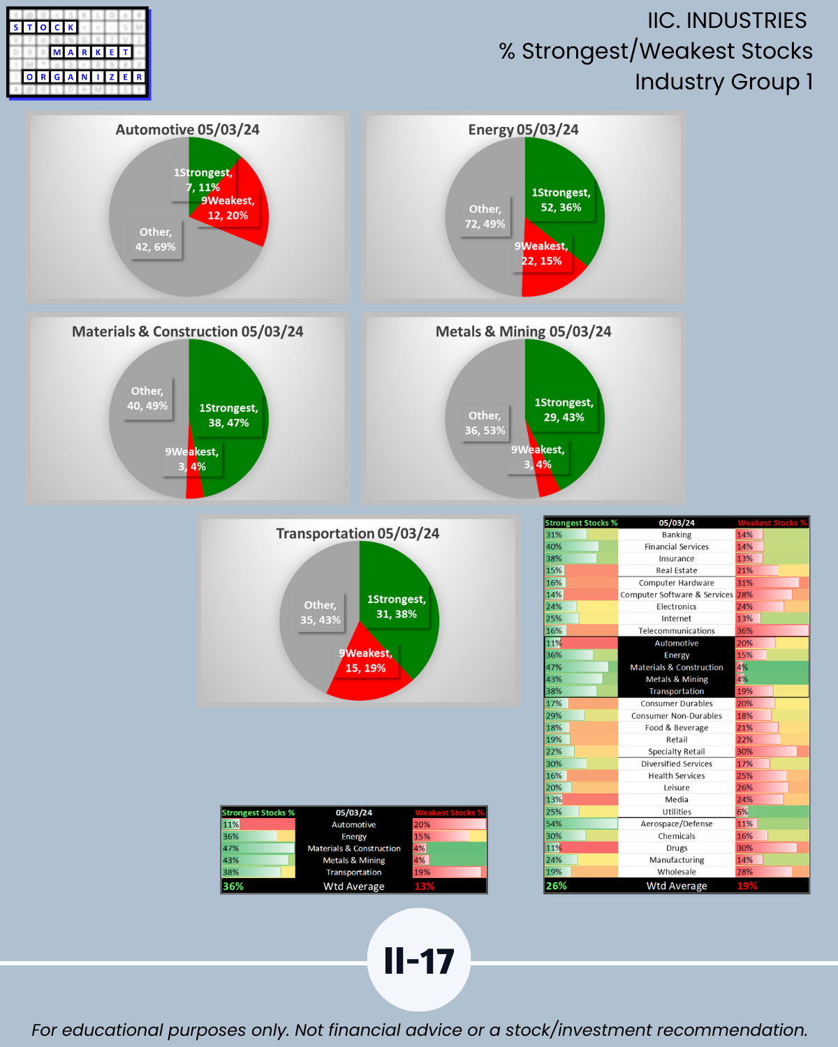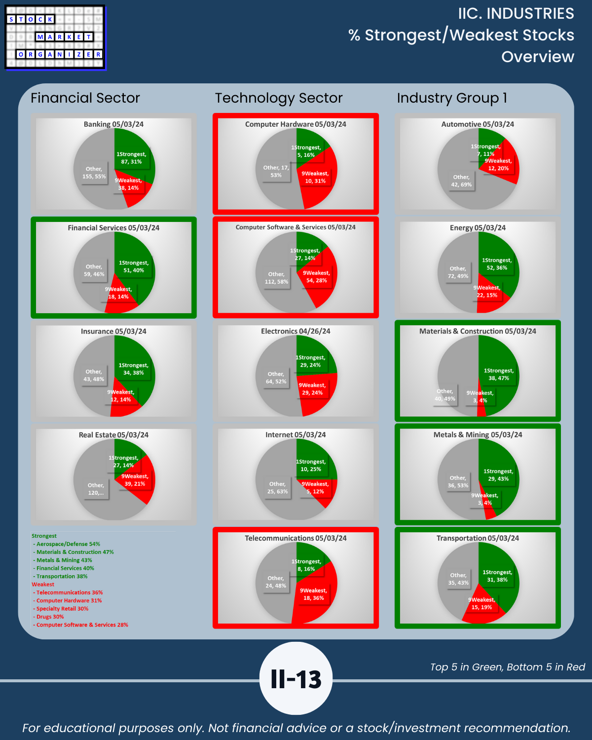 IIC. INDUSTRIES % Strongest/Weakest Stocks
