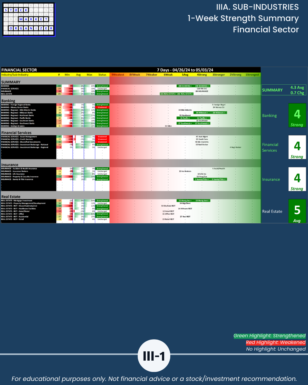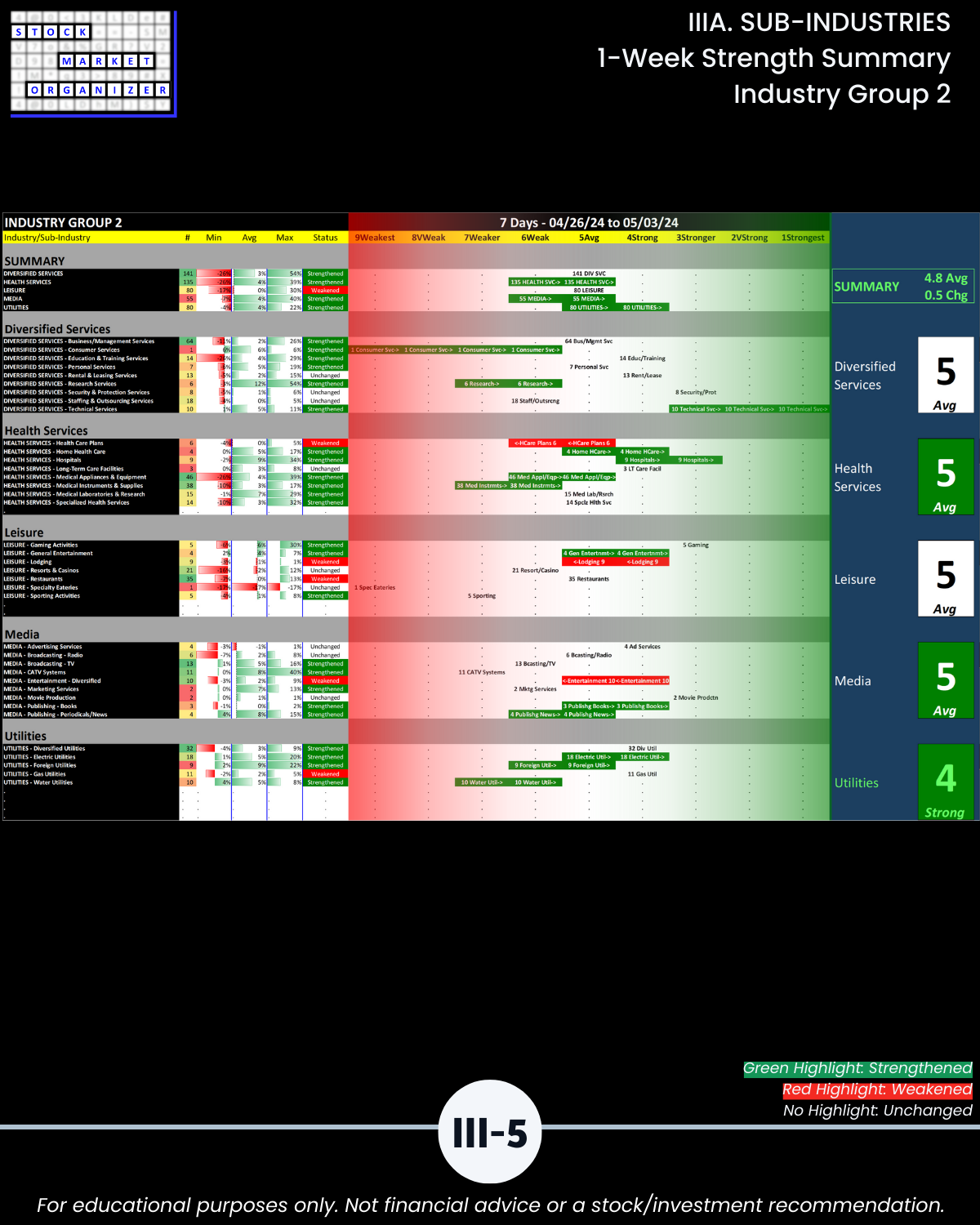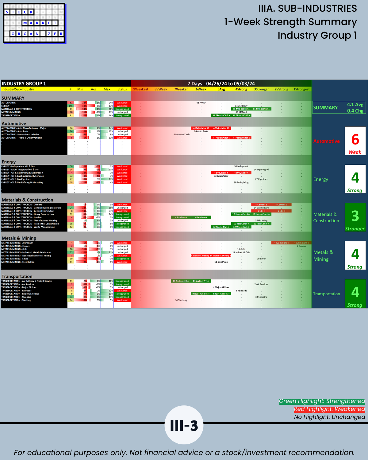 IIIA. SUB-INDUSTRIES 1-Week Strength Summary