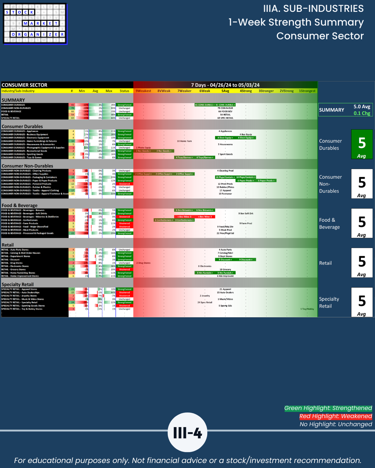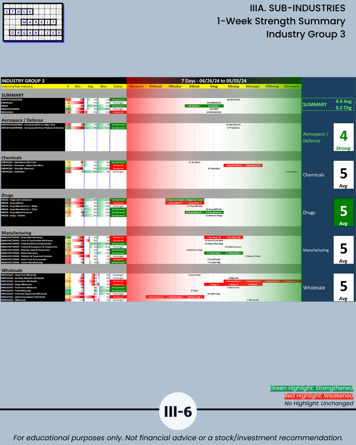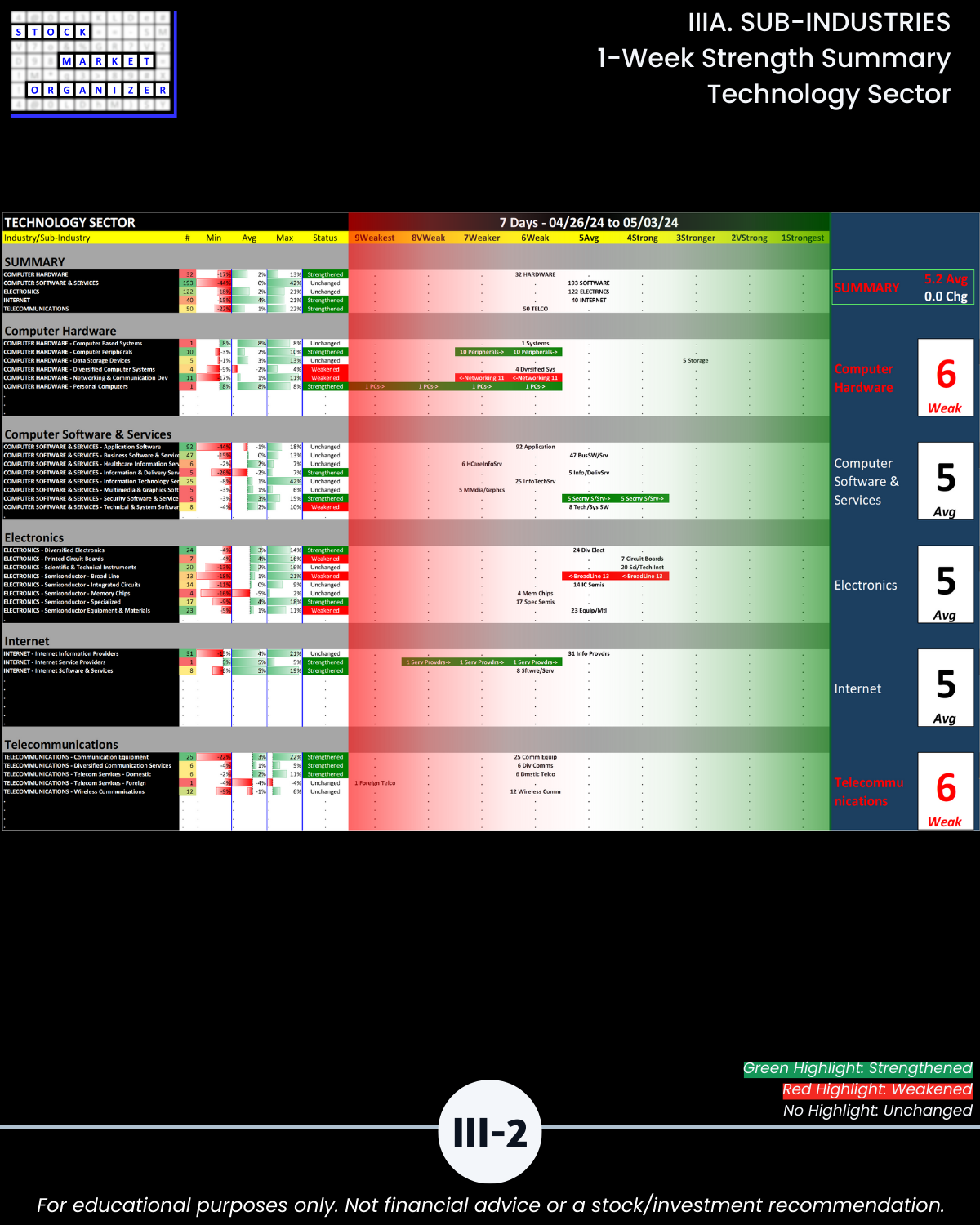 IIIA. SUB-INDUSTRIES 1-Week Strength Summary