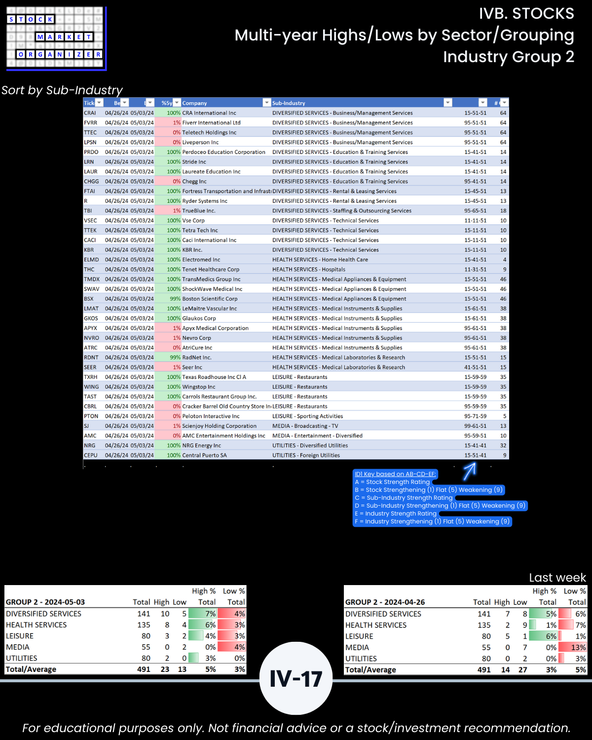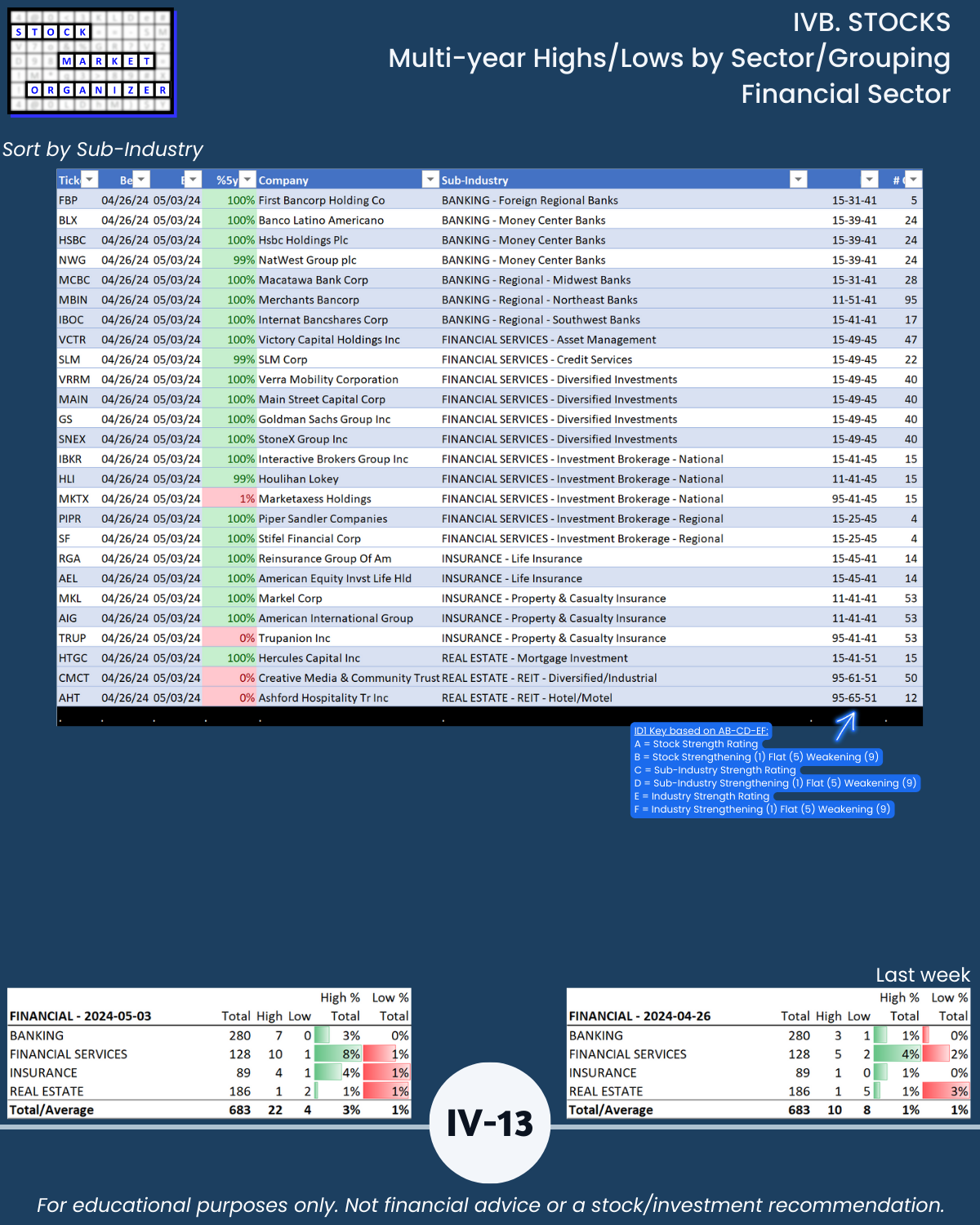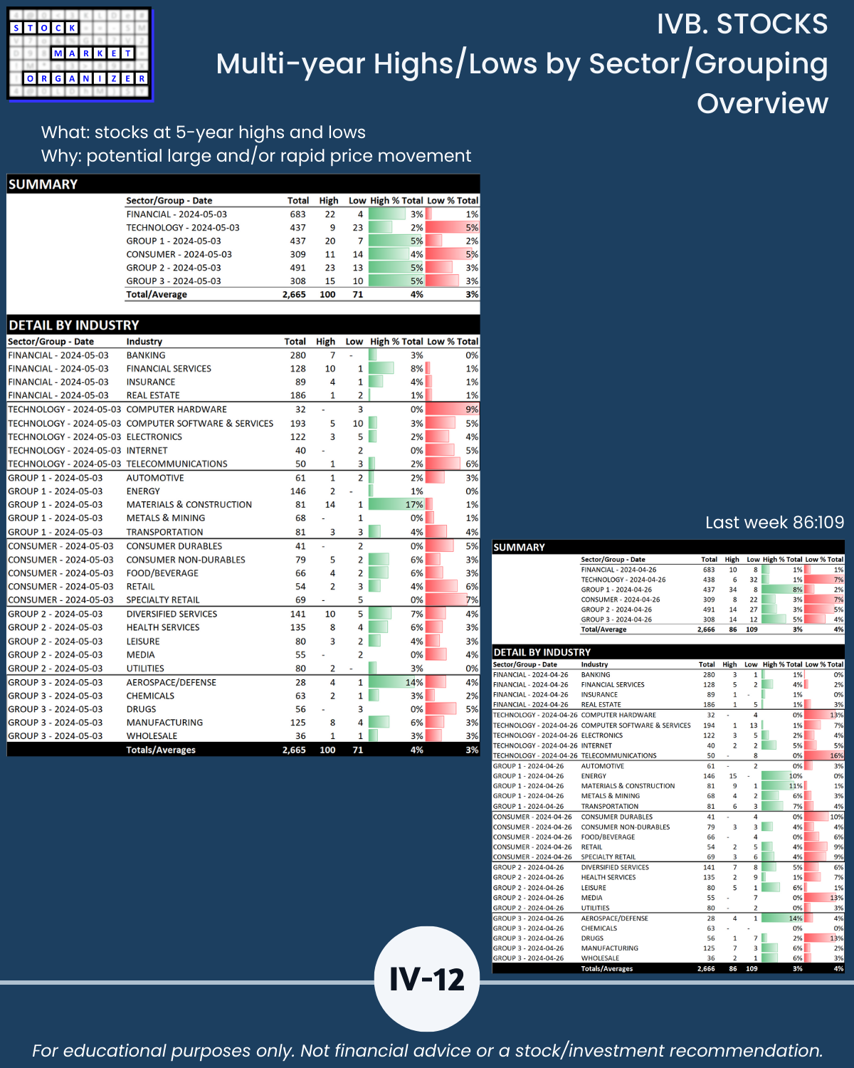 IVB. STOCKS Multi-Year Highs/Lows by Sector/Grouping