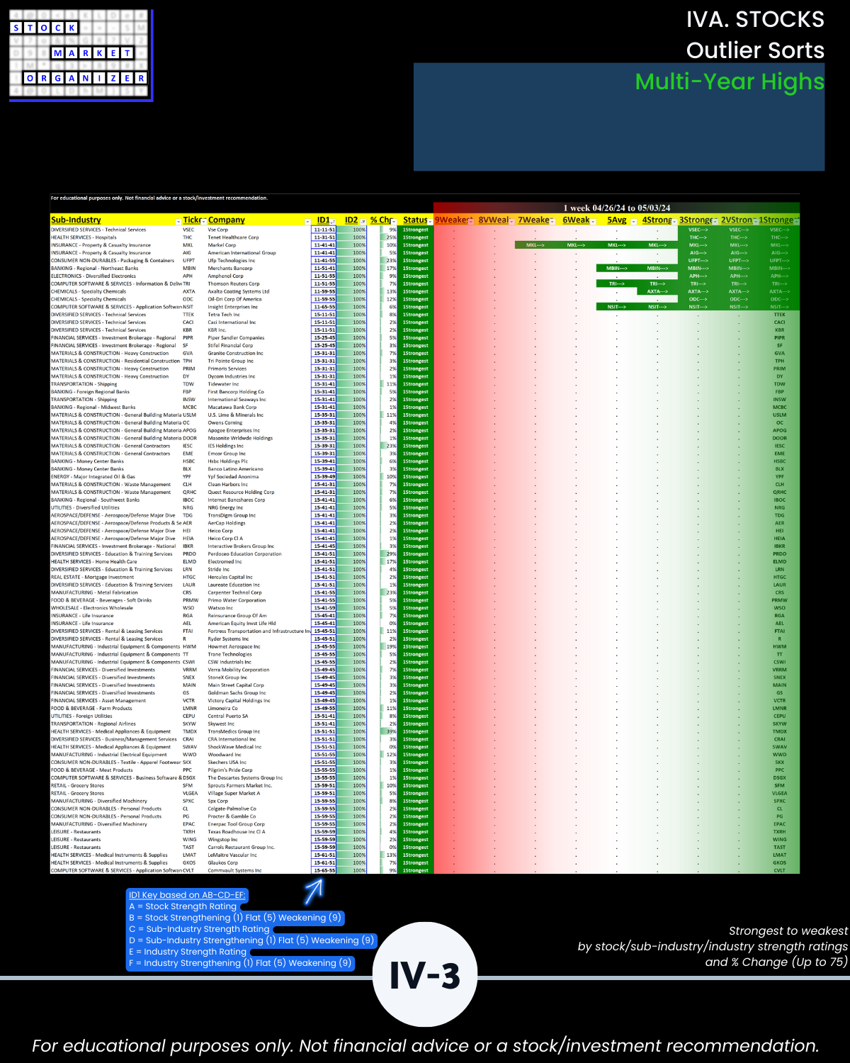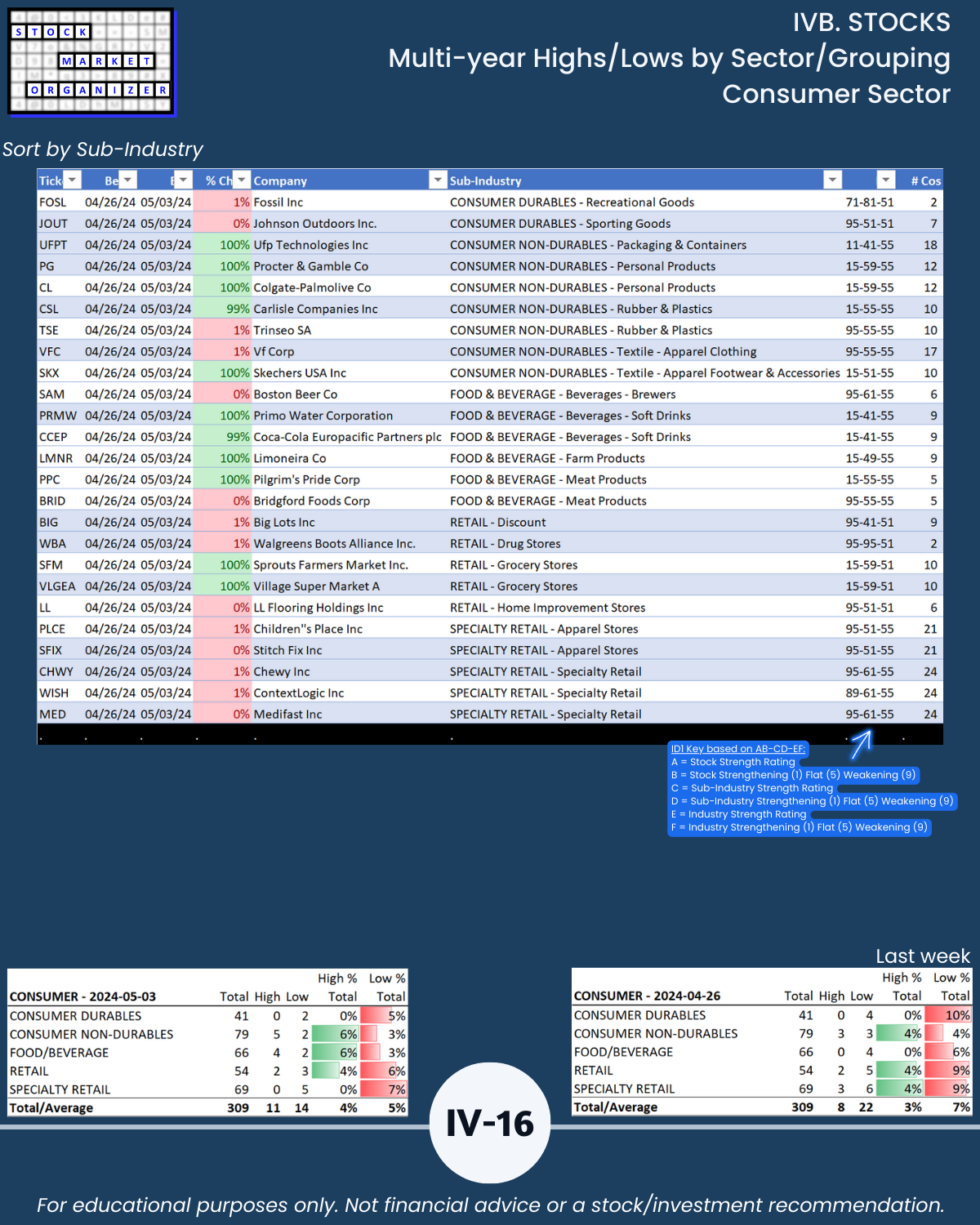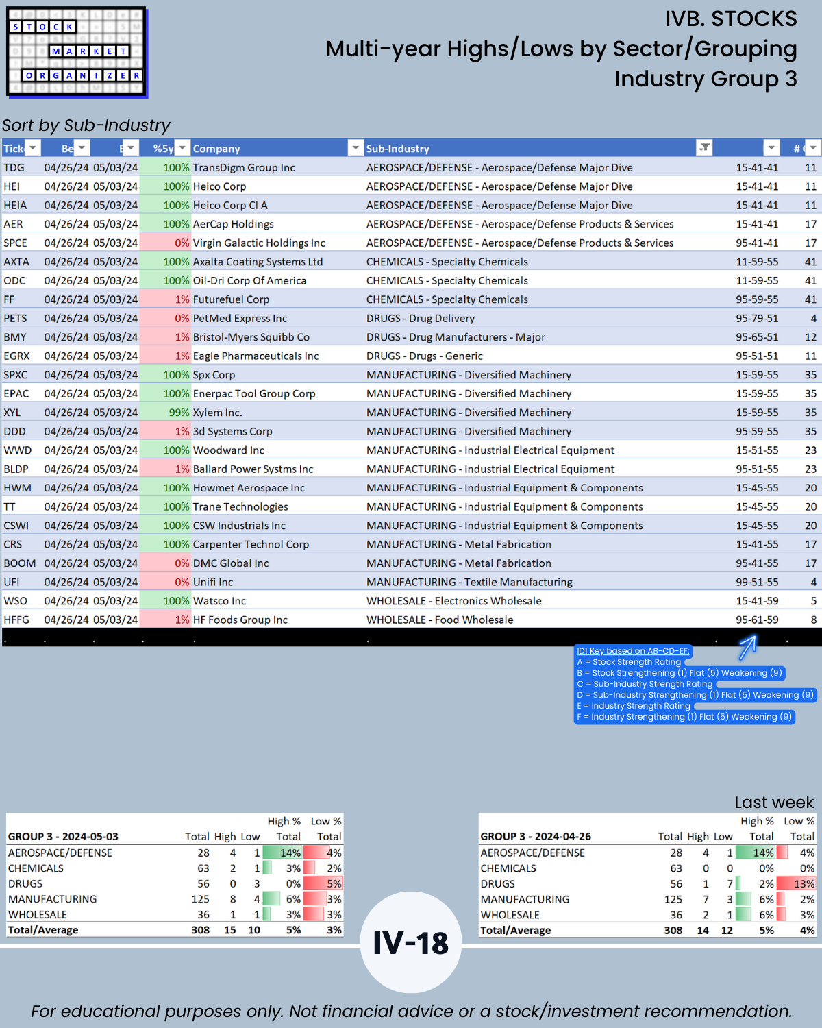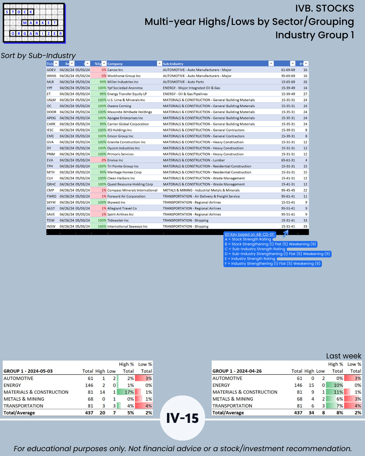 IVB. STOCKS Multi-Year Highs/Lows by Sector/Grouping