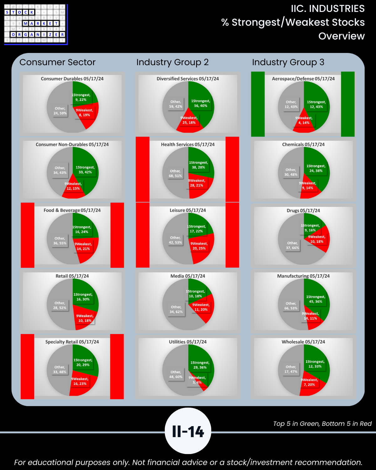 NOTE: This is the Free version of this post which excludes stock-level detail in section IV. For the full Premium version, which includes the Section IV stocks detail that takes full advantage of the market, sector, industry, and sub-industry strength and weakness insights available in this free report, please sign up here then read this premium report. For an example of the detail in this section, please see Section IV of the May 3, 2024 full market report.