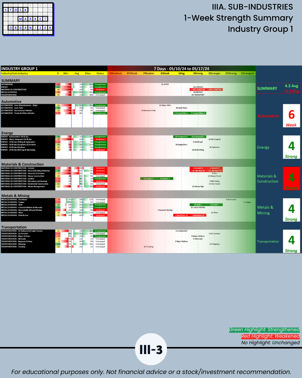 IIIA. SUB-INDUSTRIES 1-Week Strength Summary