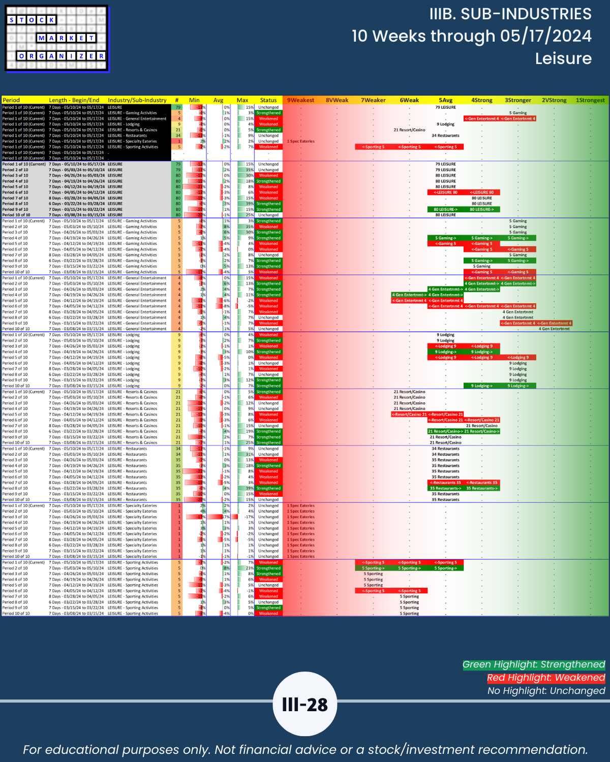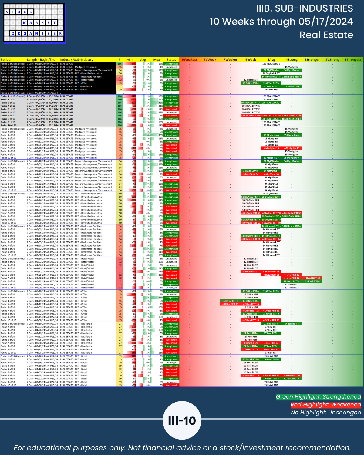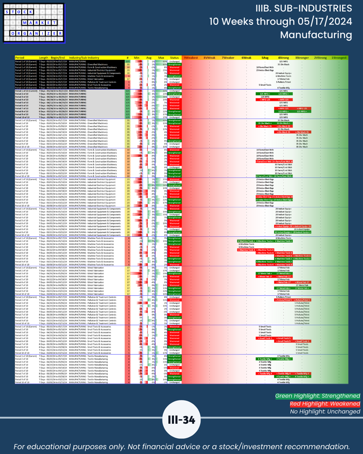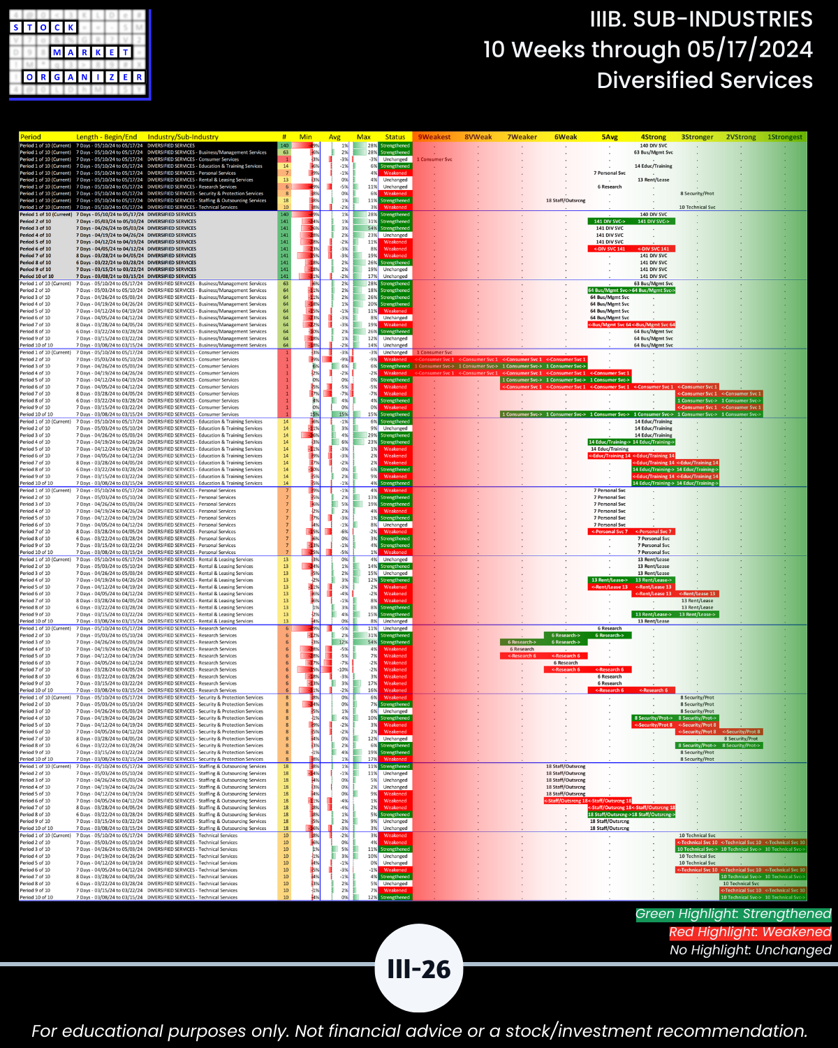 IIIB. SUB-INDUSTRIES 10-Week Strengthening/Weakening