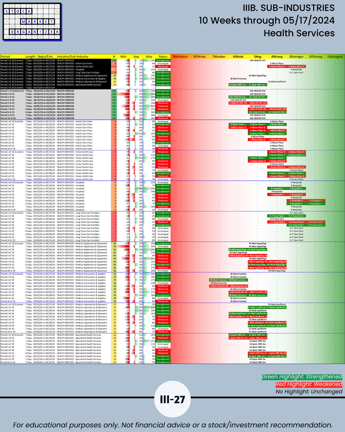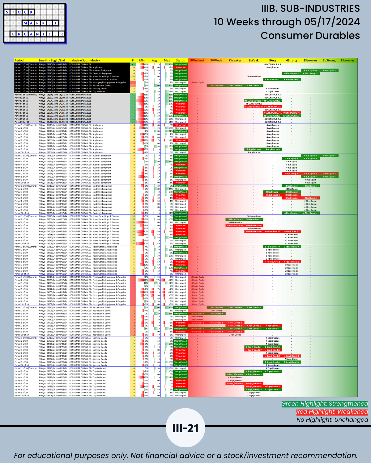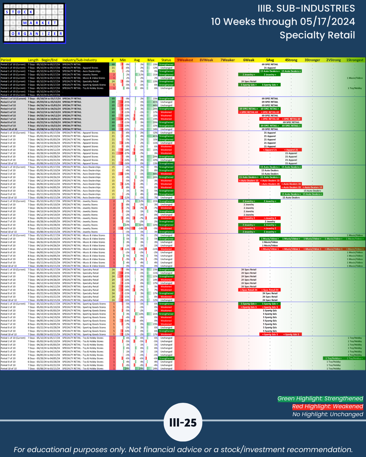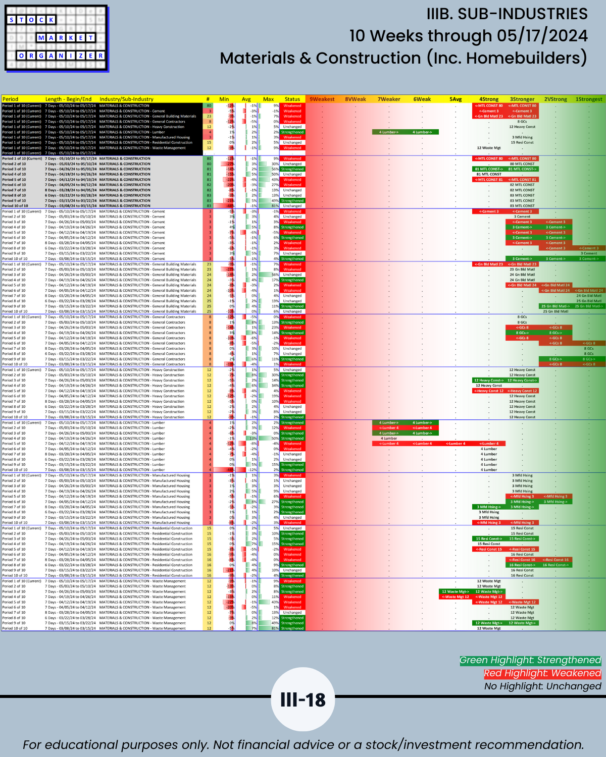 IIIB. SUB-INDUSTRIES 10-Week Strengthening/Weakening