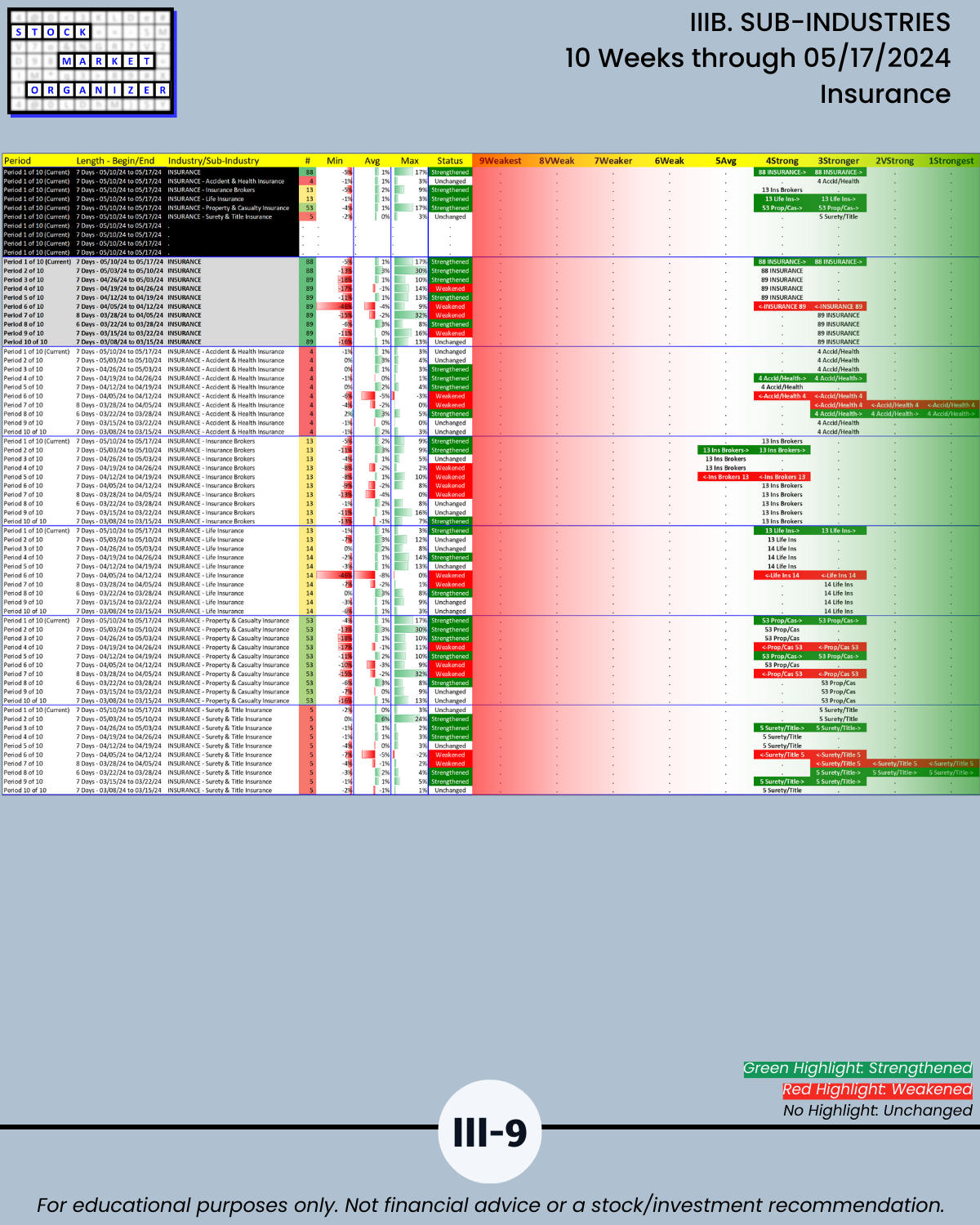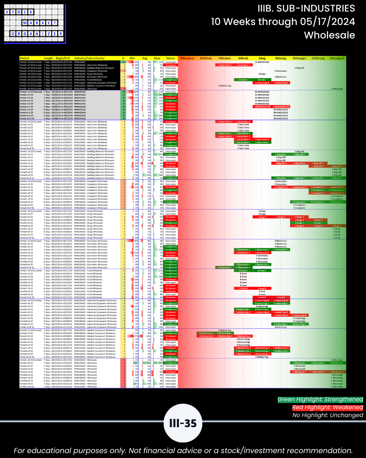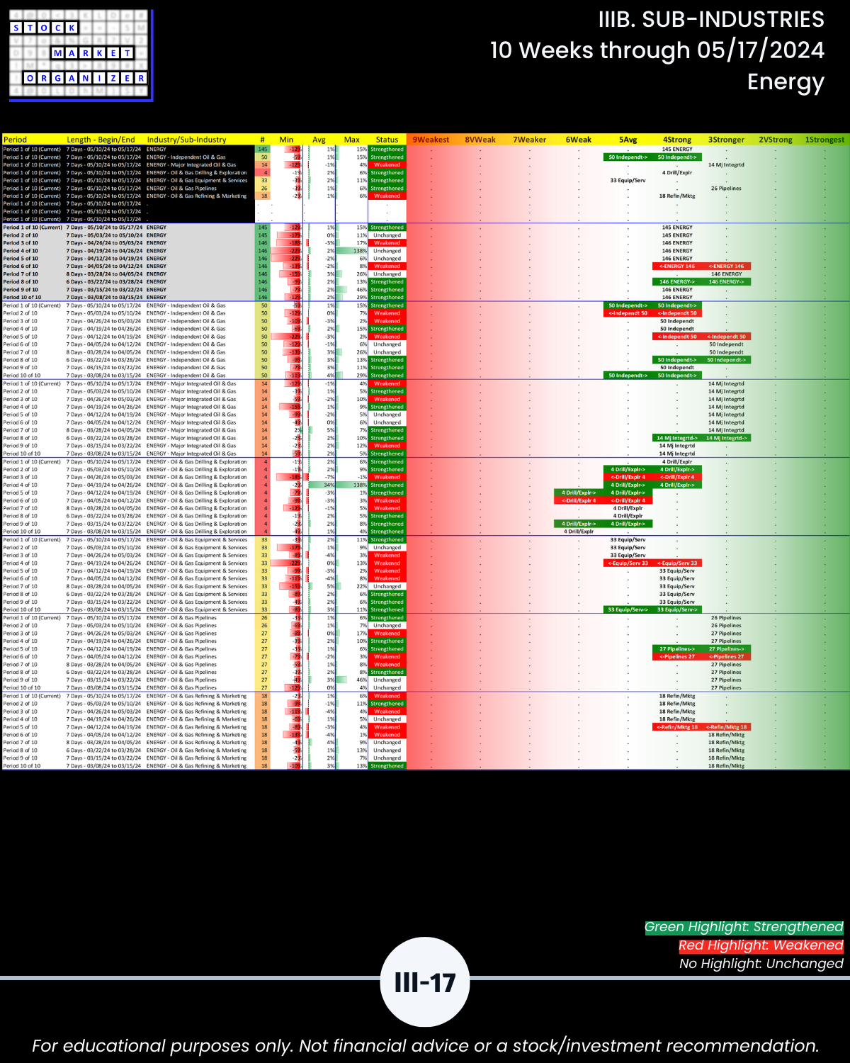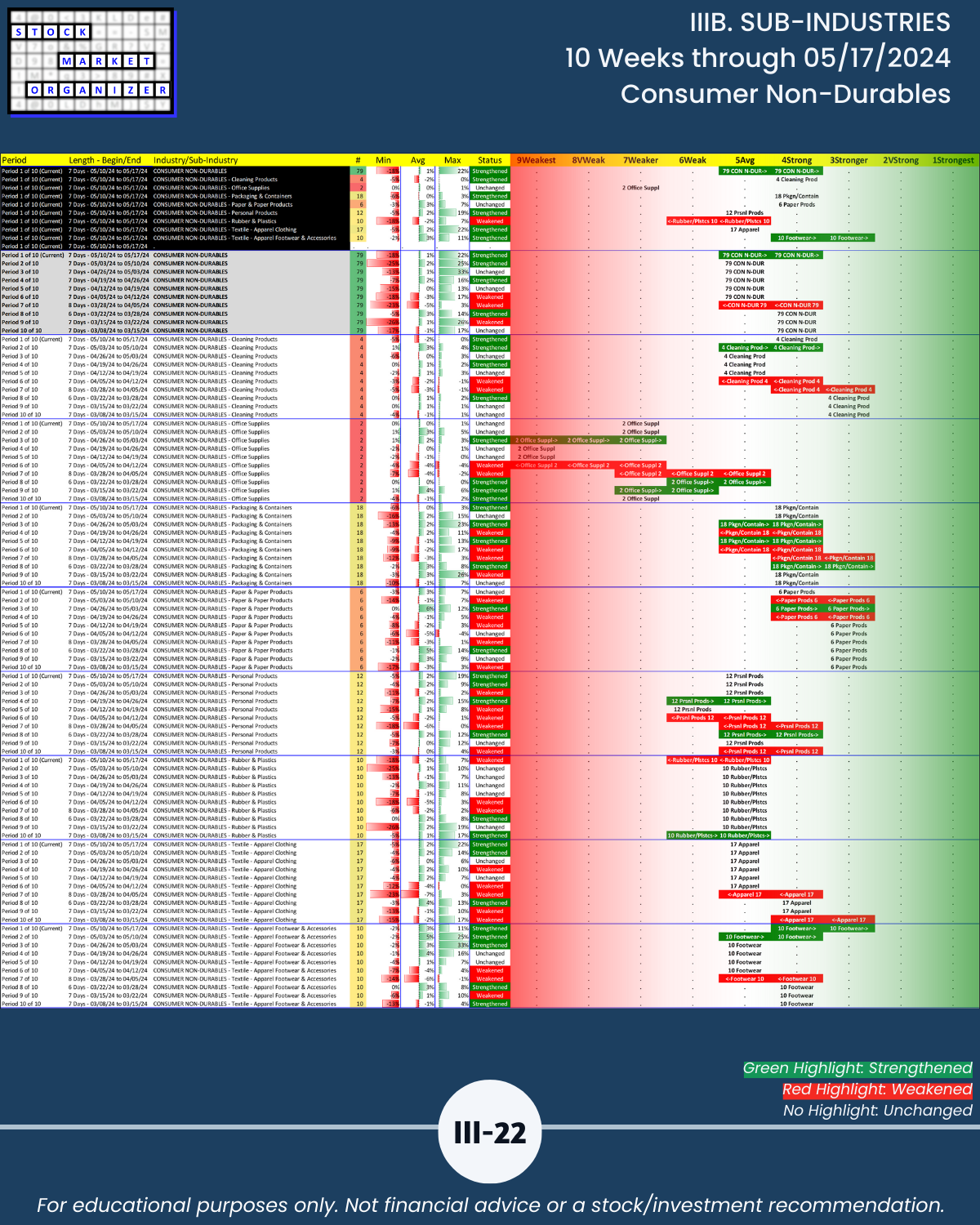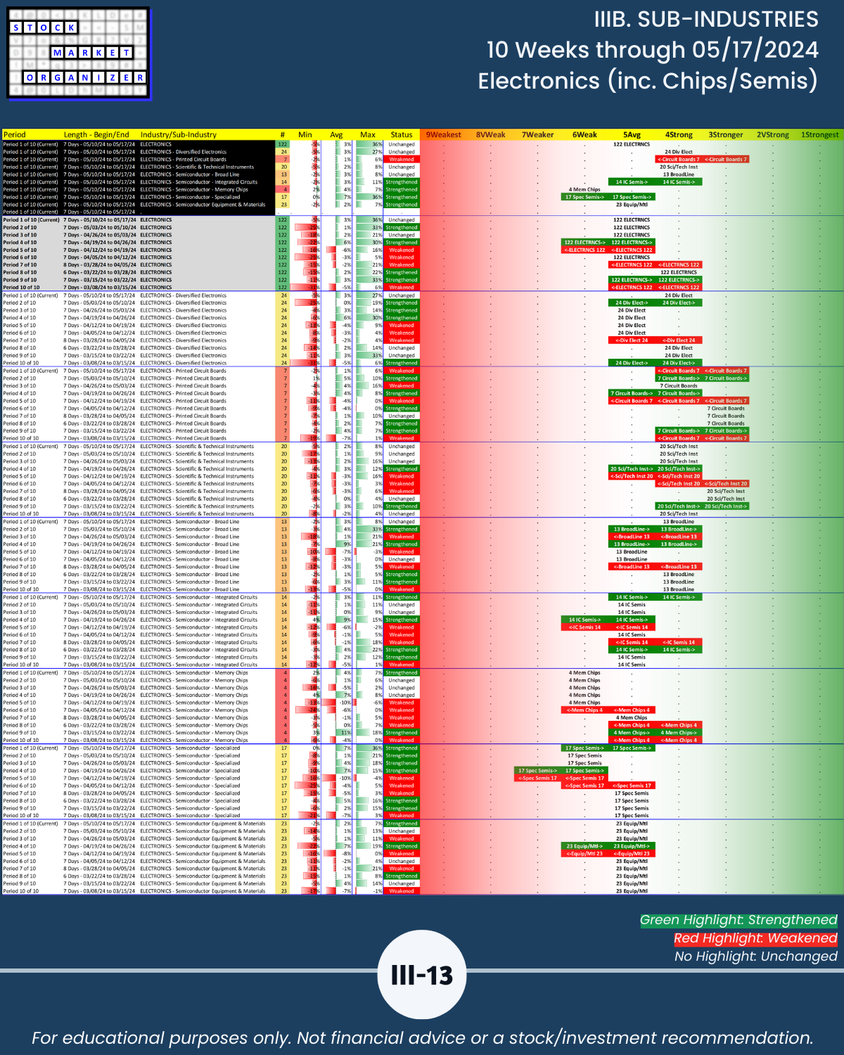 IIIB. SUB-INDUSTRIES 10-Week Strengthening/Weakening