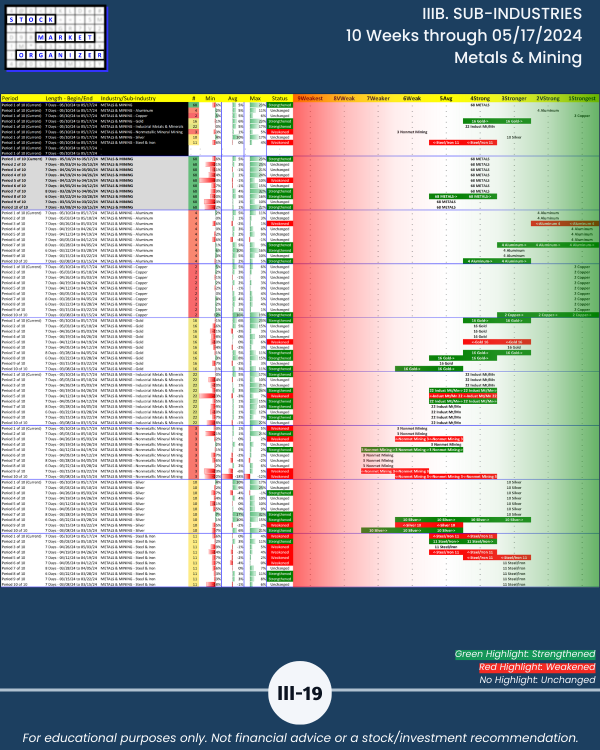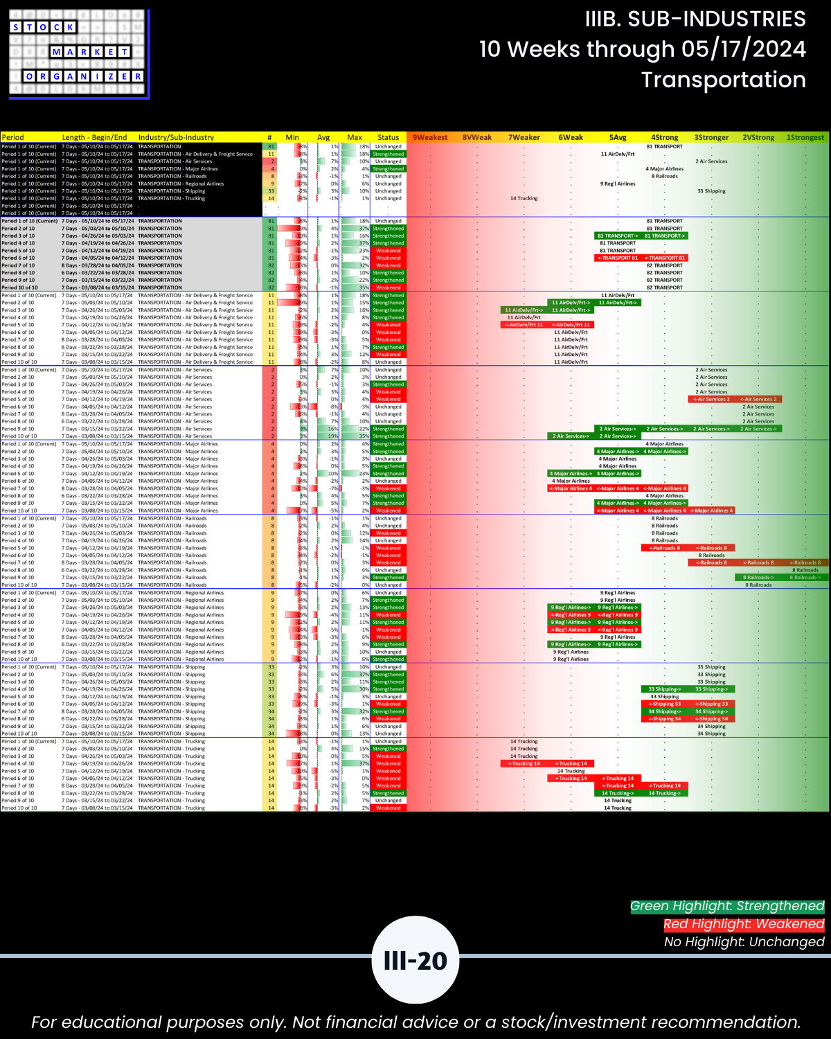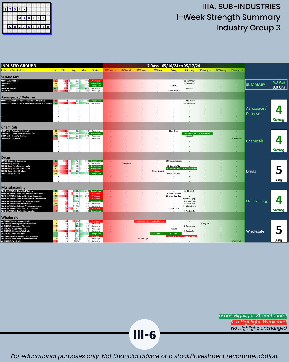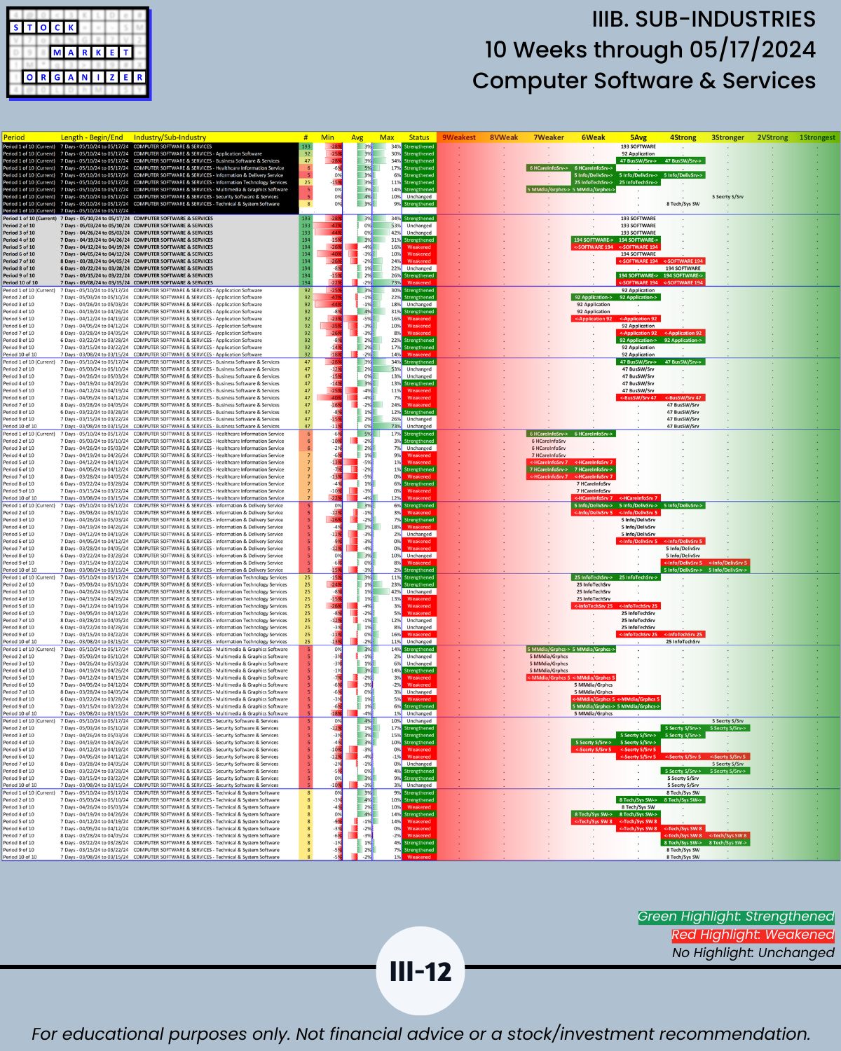 IIIB. SUB-INDUSTRIES 10-Week Strengthening/Weakening