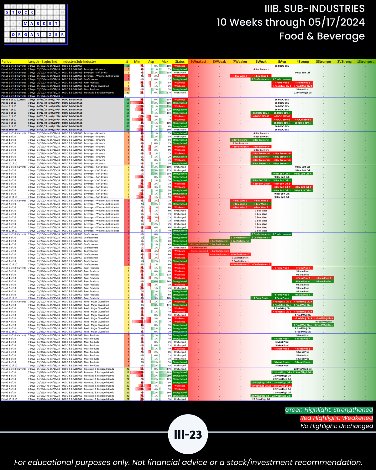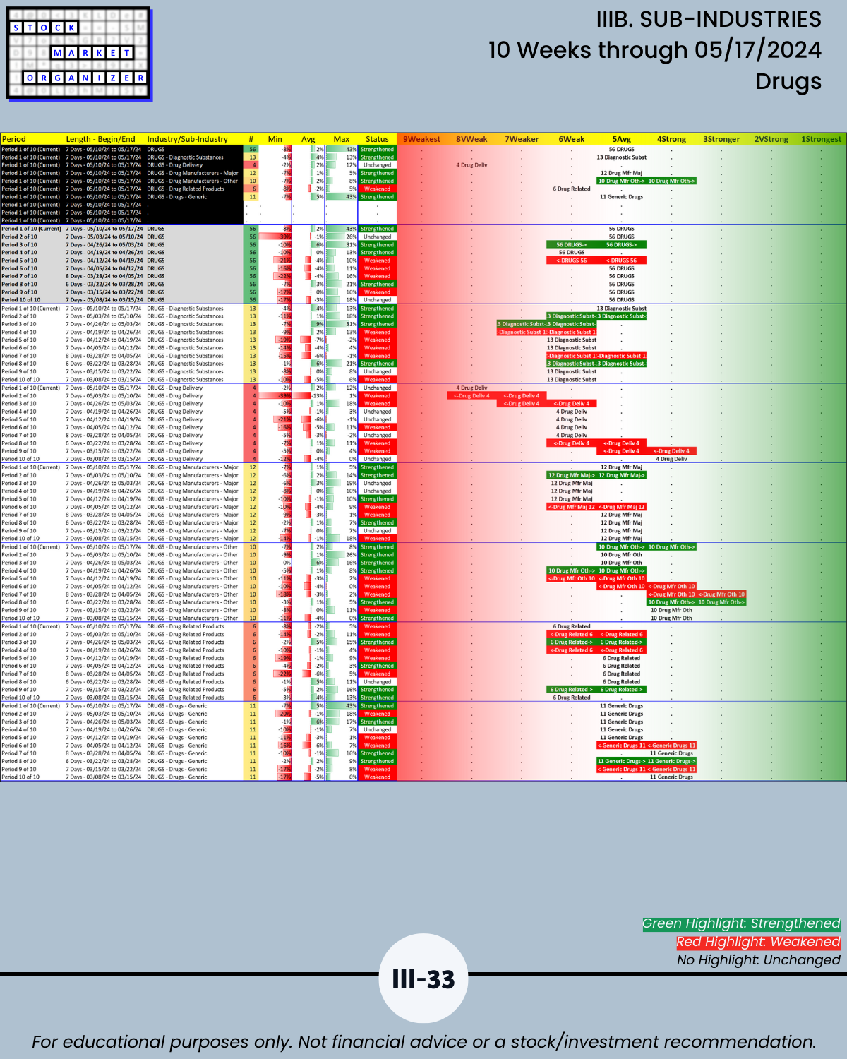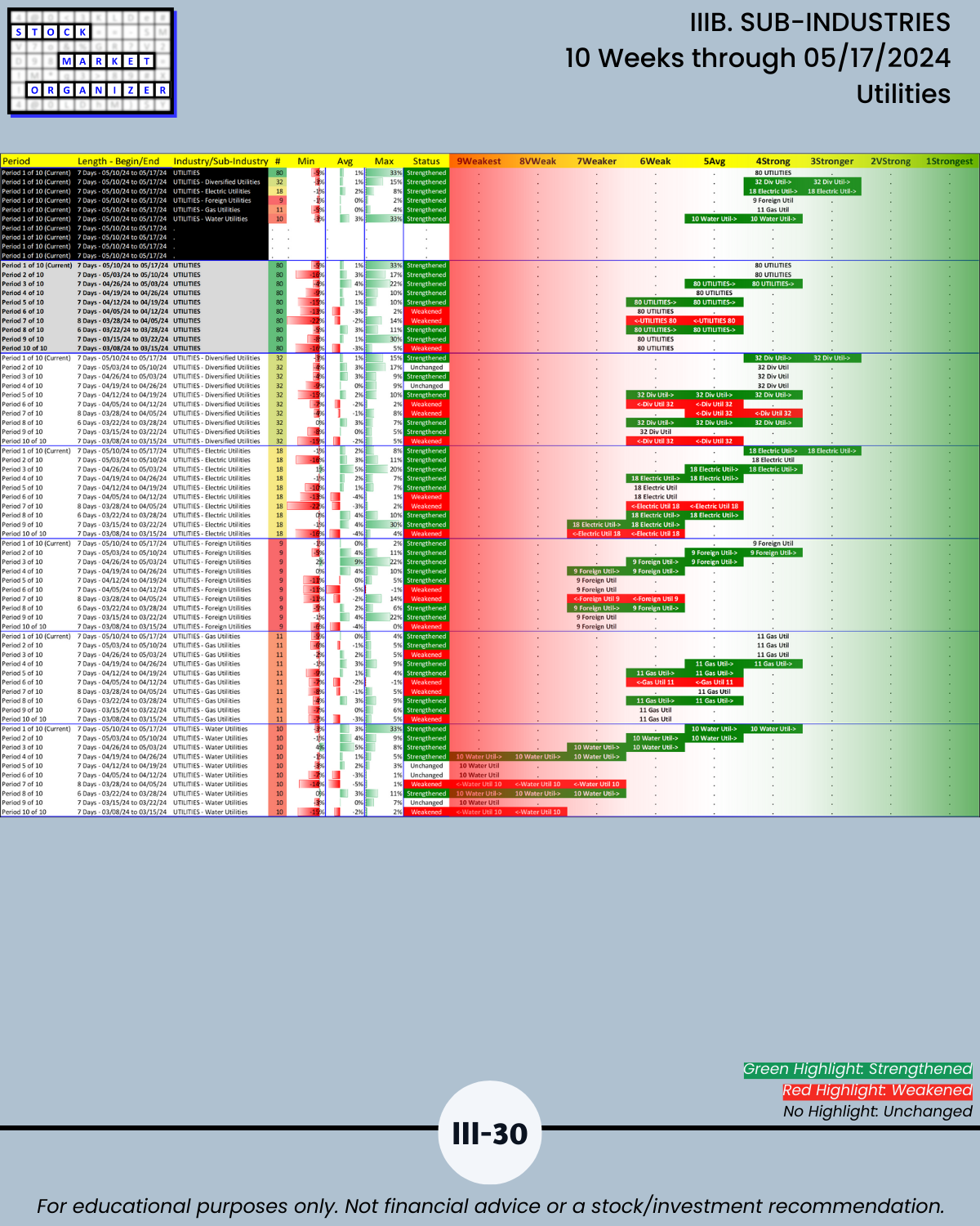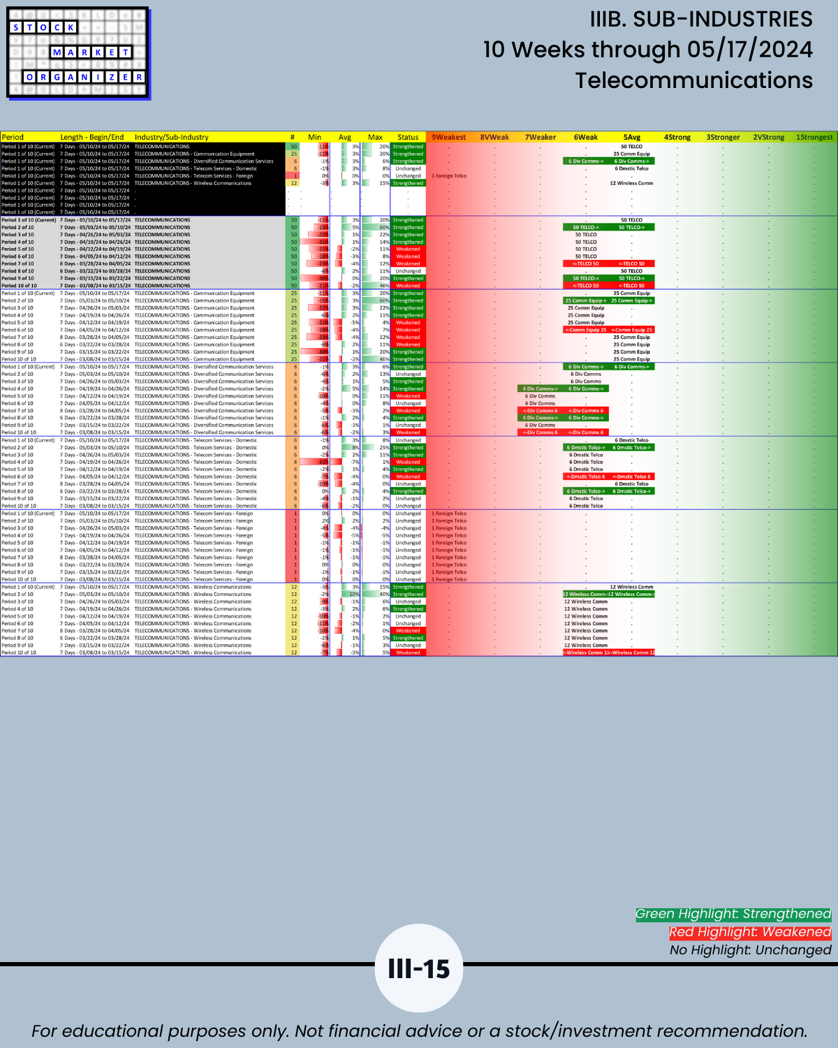 IIIB. SUB-INDUSTRIES 10-Week Strengthening/Weakening