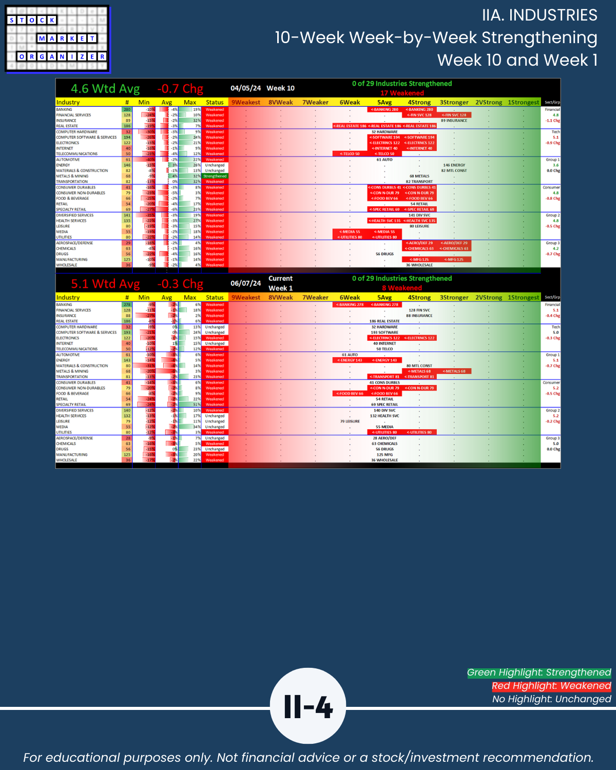- 0 of 29 industry rankings strengthened, 8 weakened (0/4 last week)/ Section II