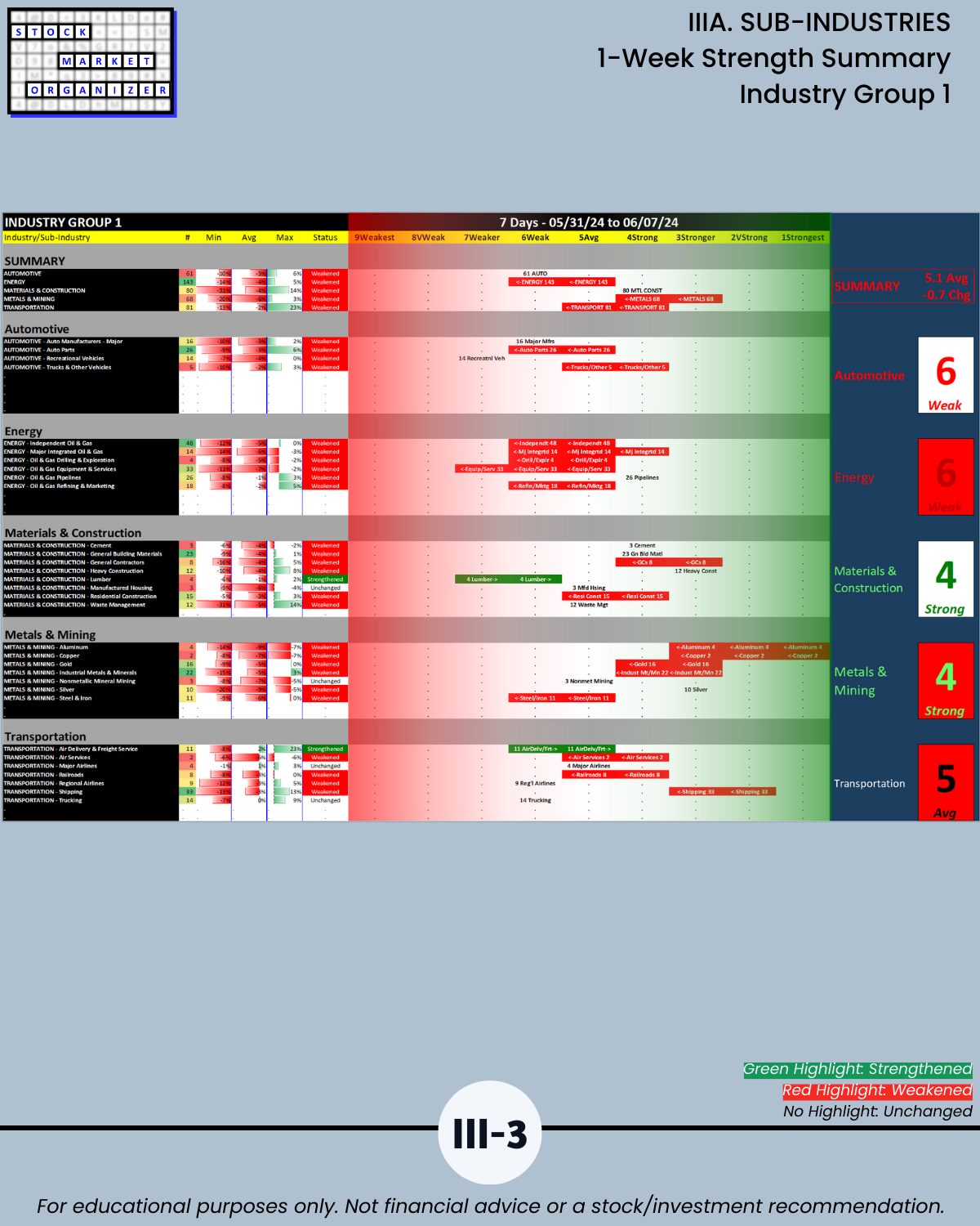 IIIA. SUB-INDUSTRIES 1-Week Strength Summary