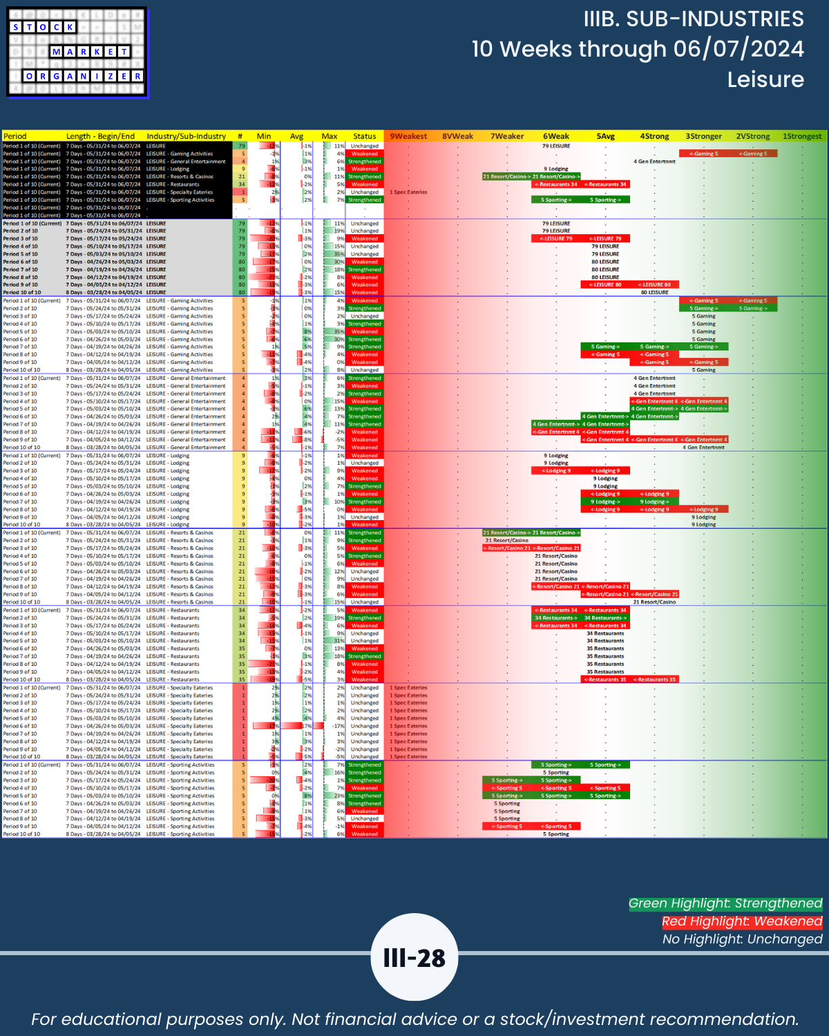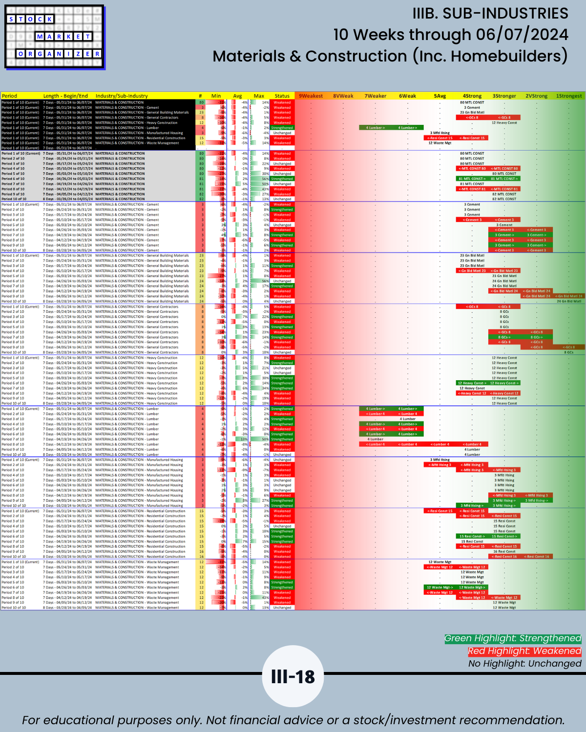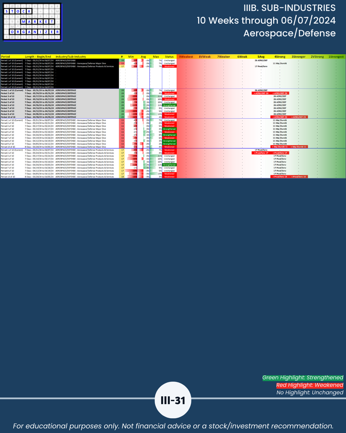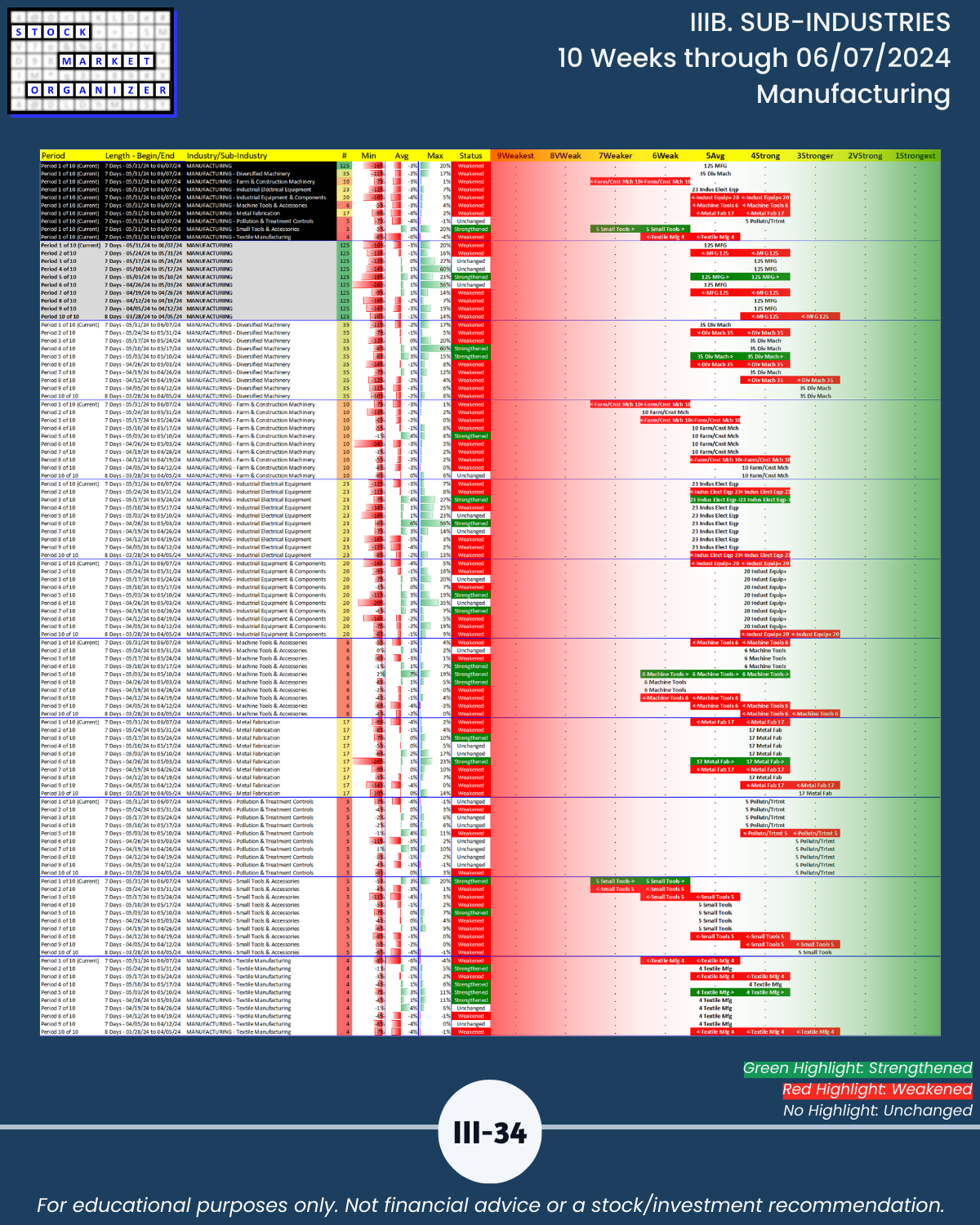 IIIB. SUB-INDUSTRIES 10-Week Strengthening/Weakening