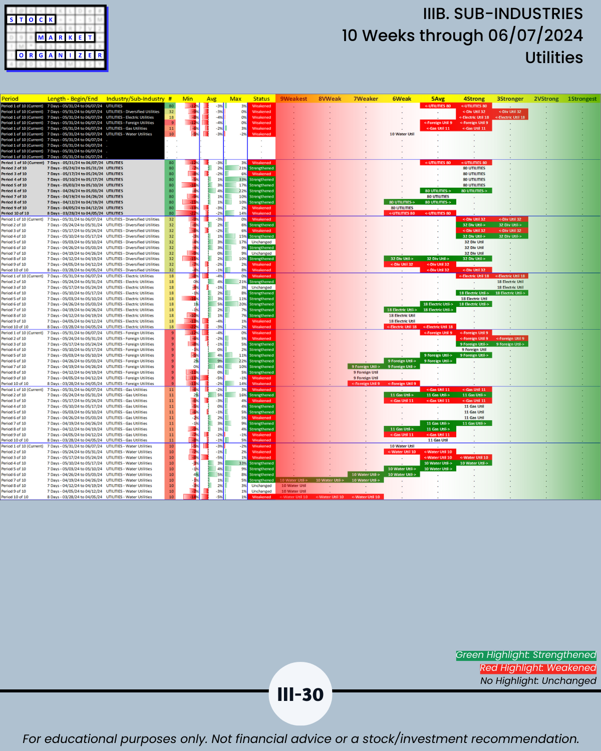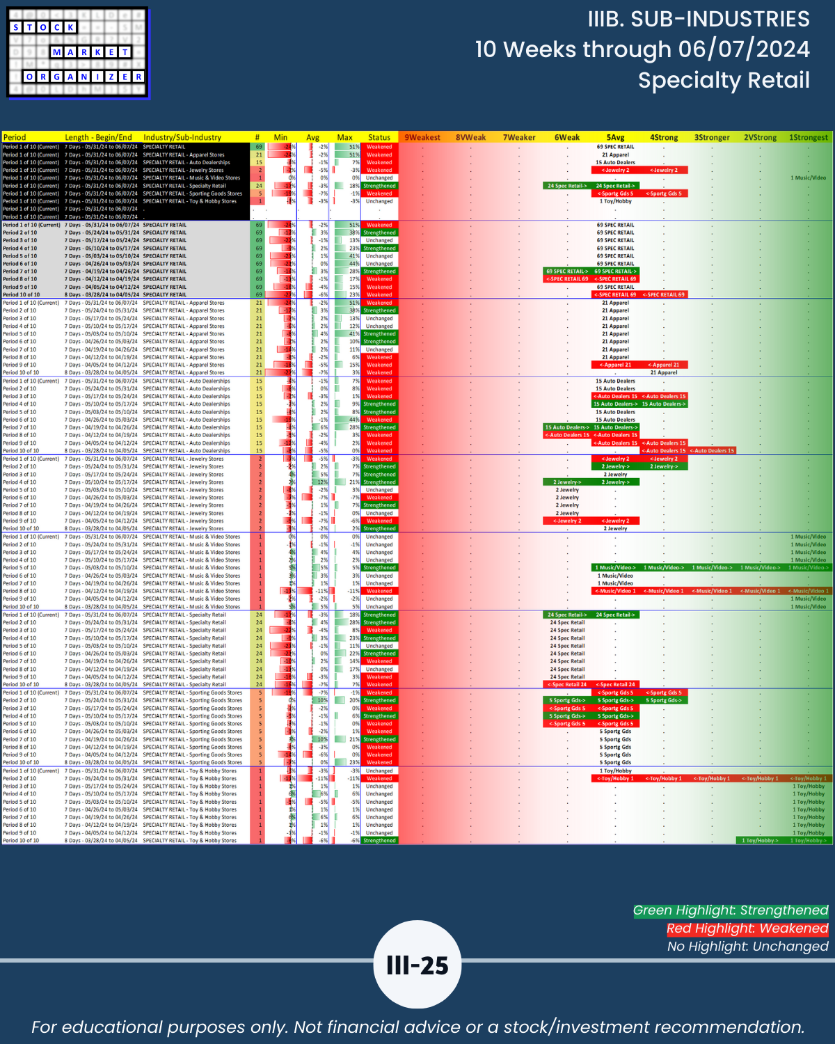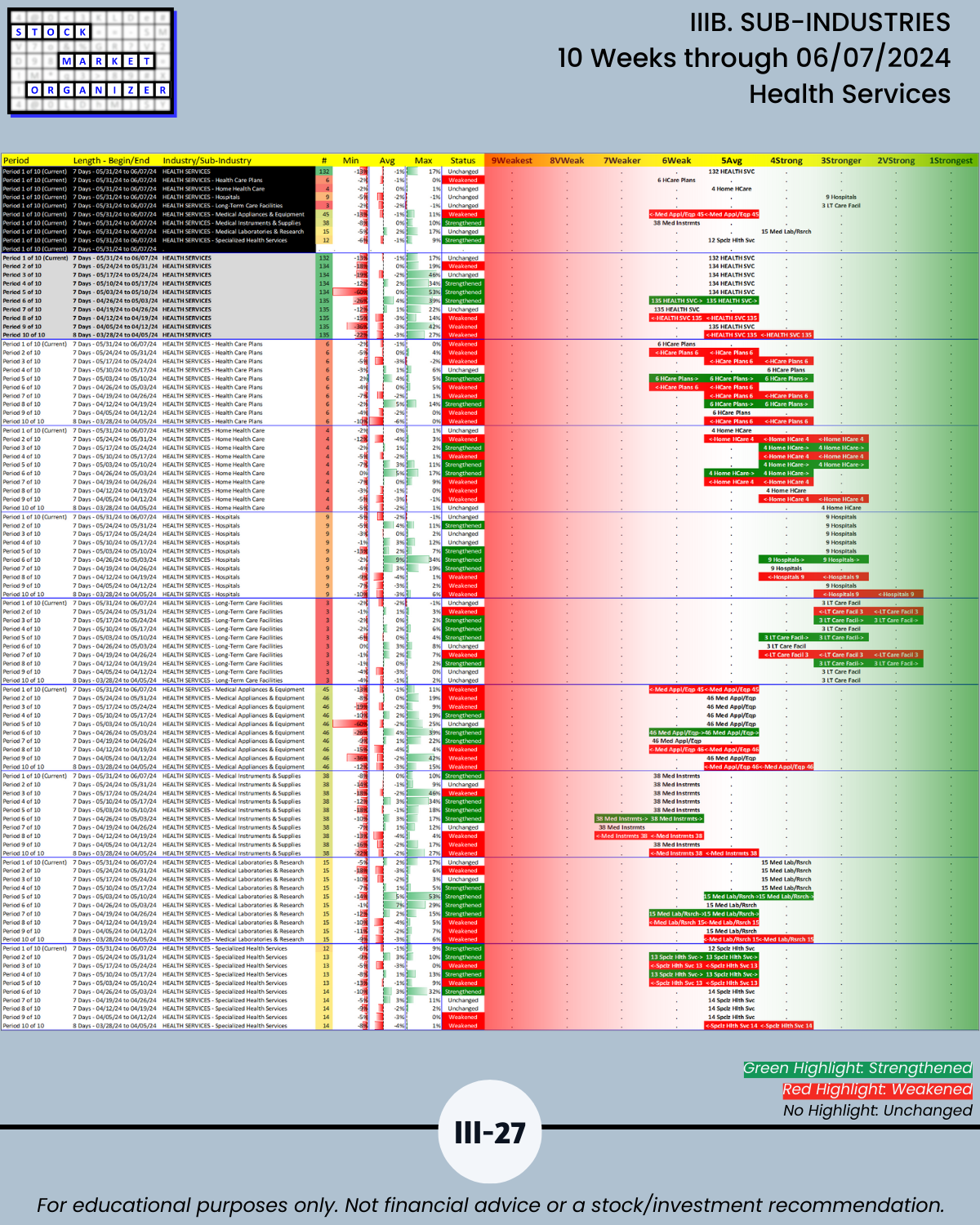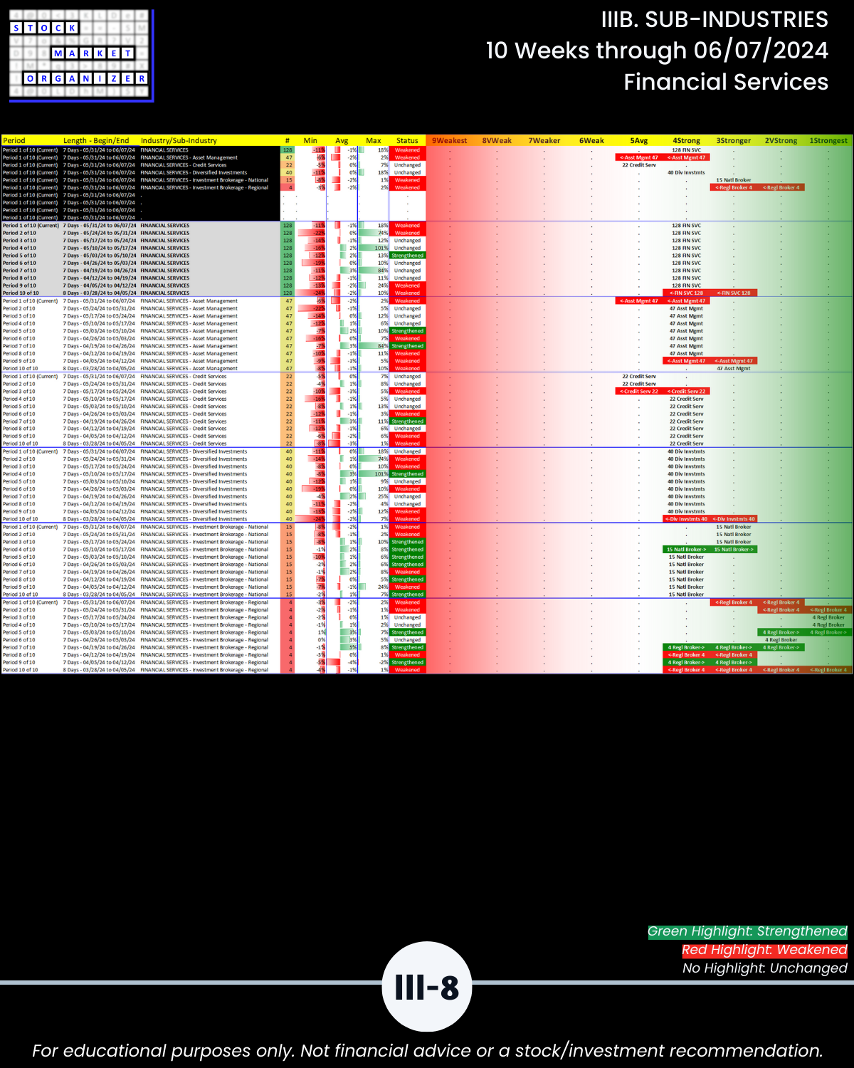 IIIB. SUB-INDUSTRIES 10-Week Strengthening/Weakening