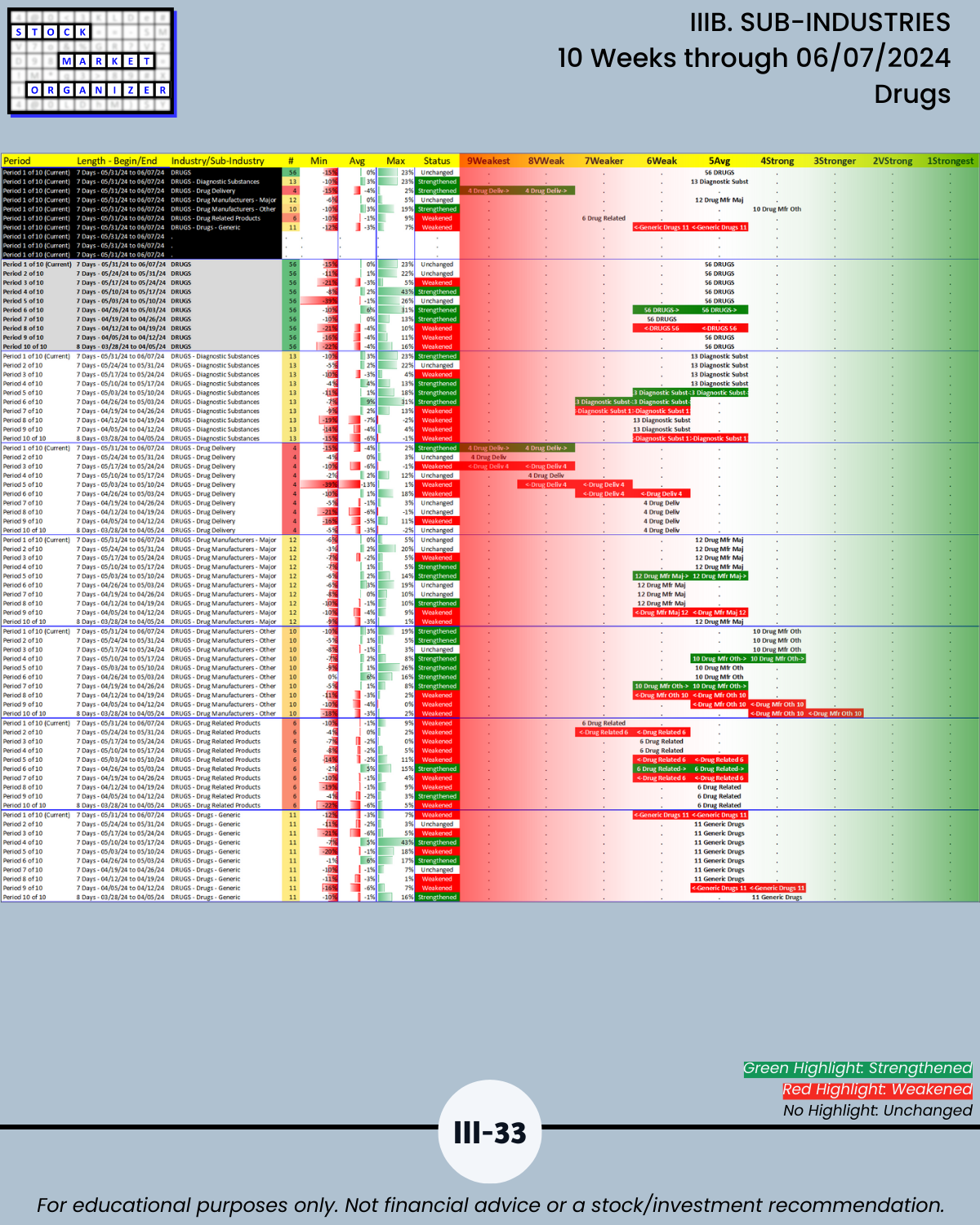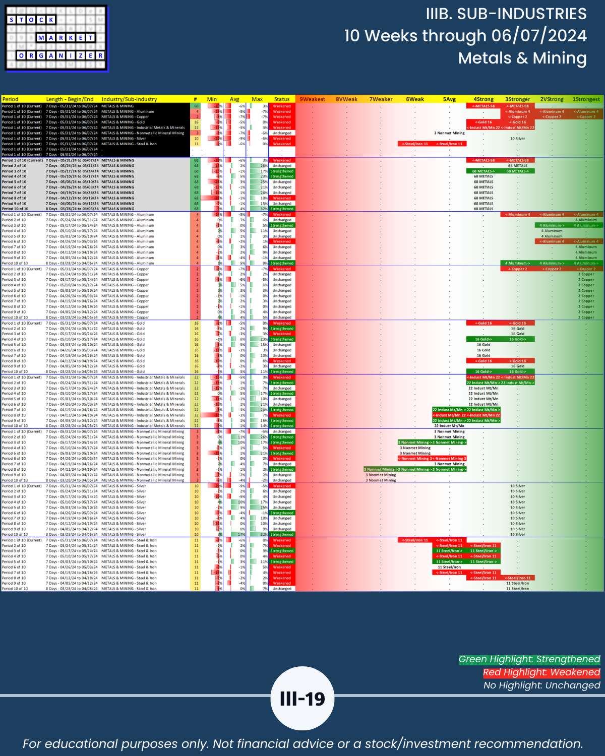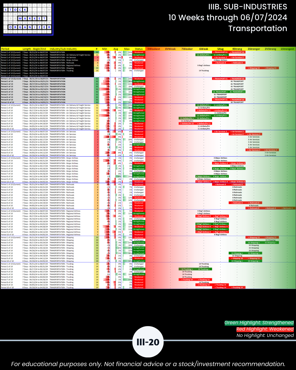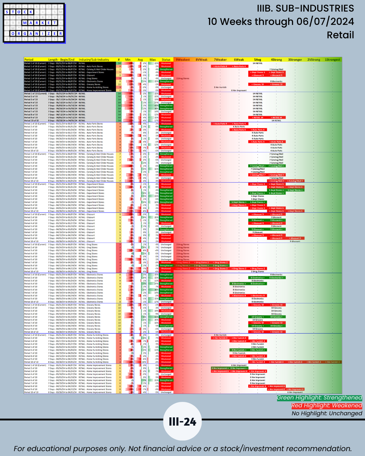 IIIB. SUB-INDUSTRIES 10-Week Strengthening/Weakening