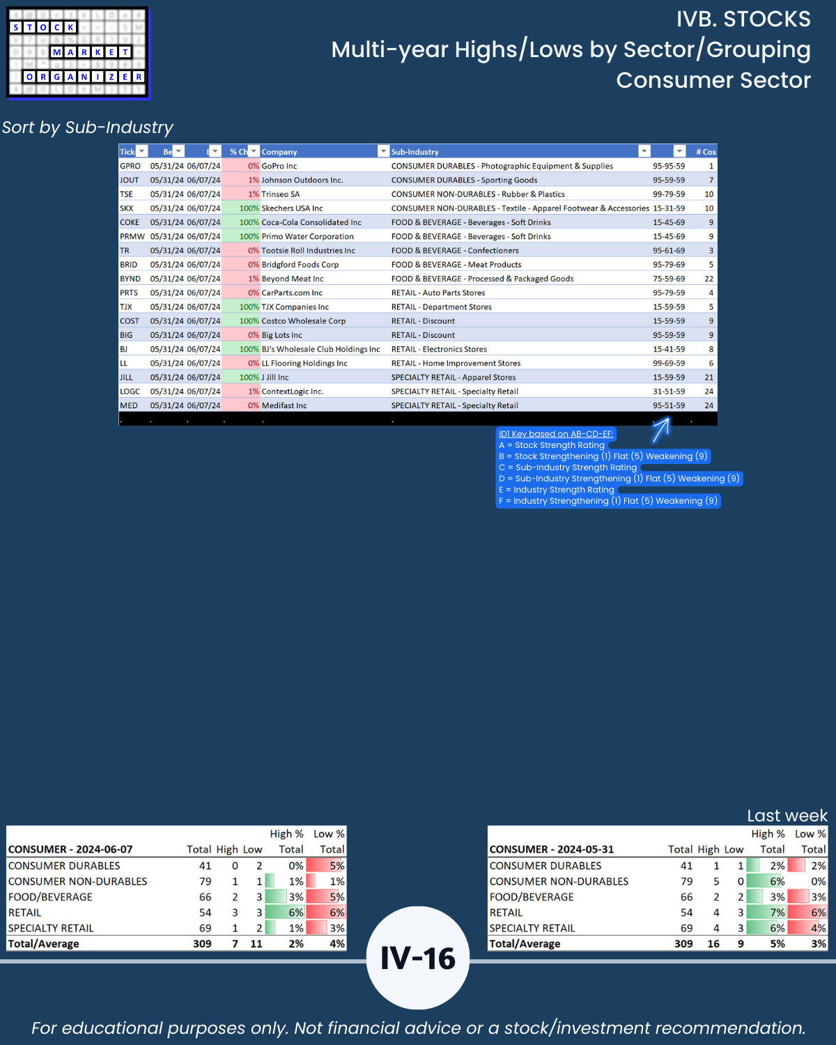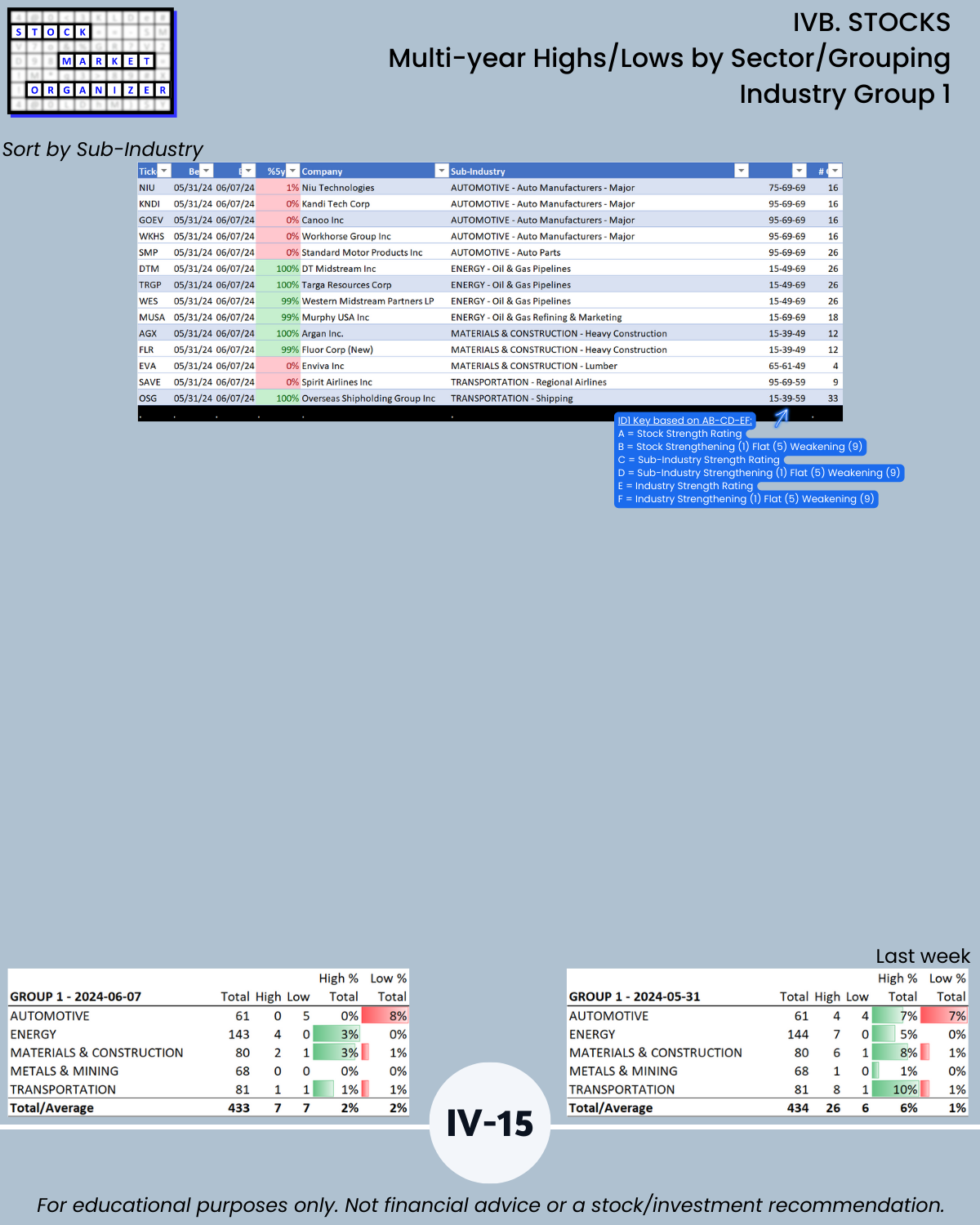 IVB. STOCKS Multi-Year Highs/Lows by Sector/Grouping