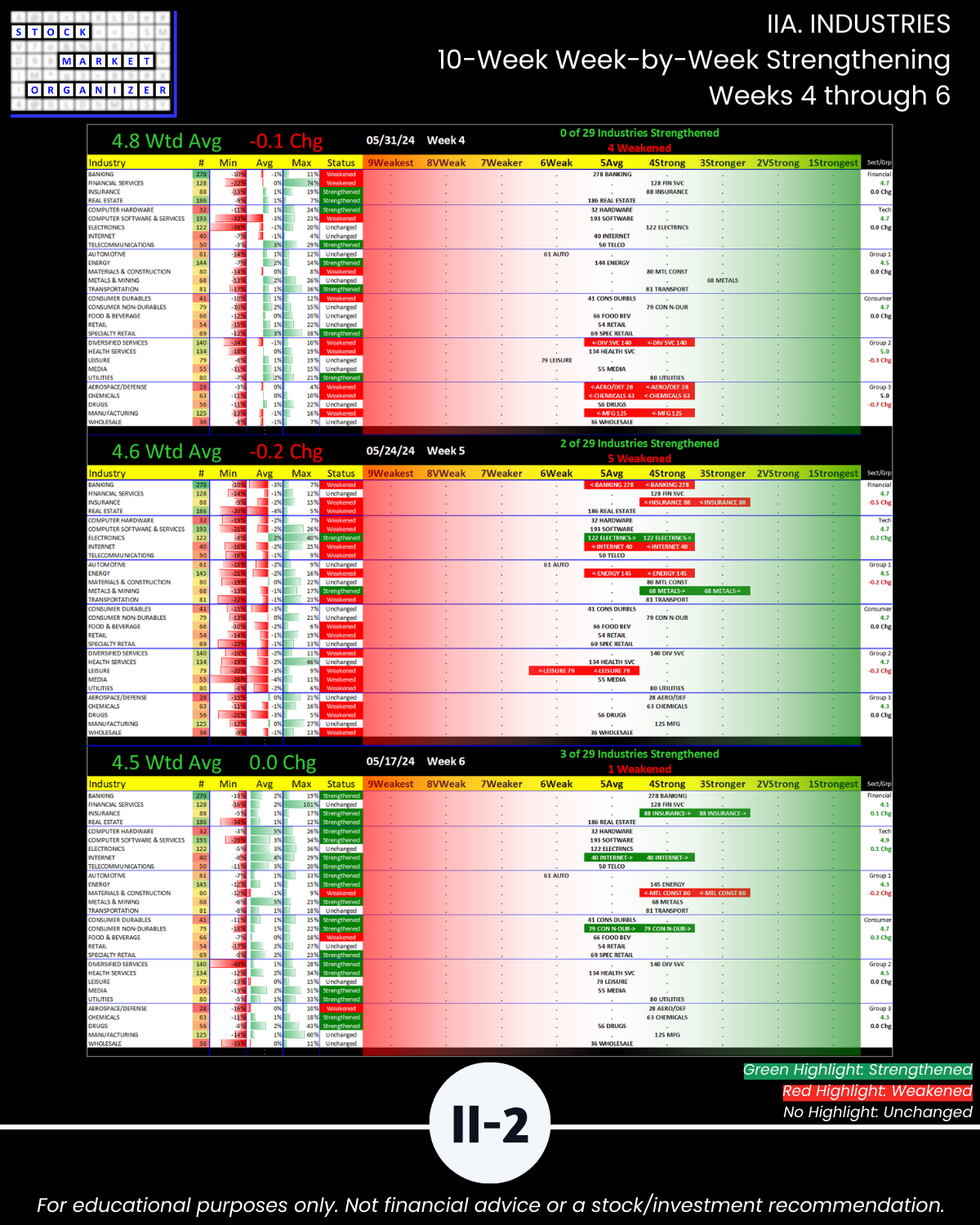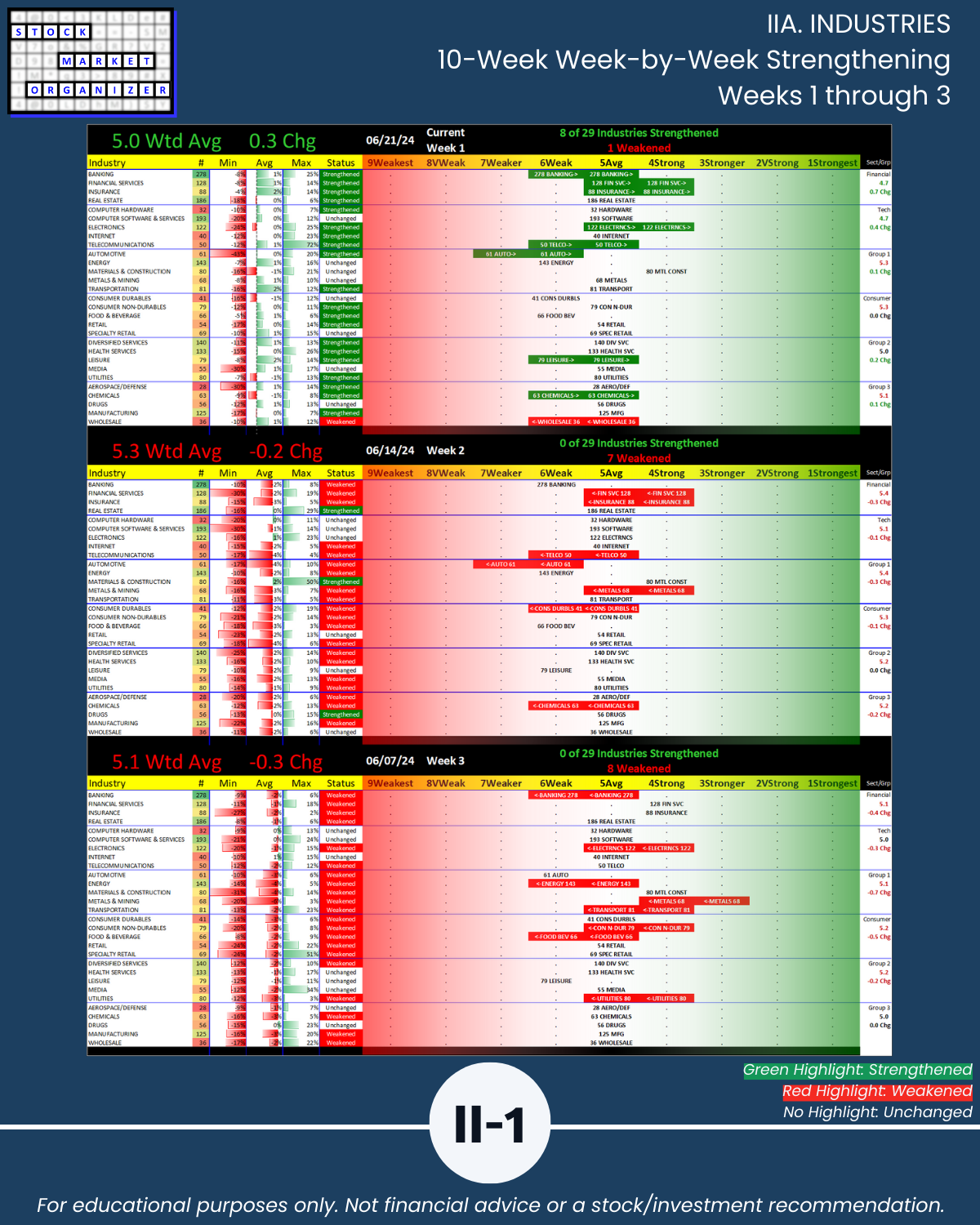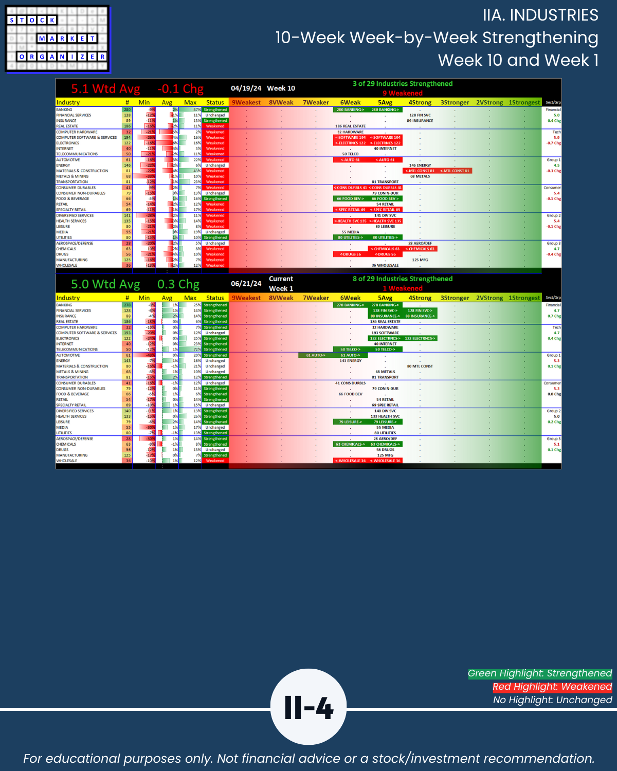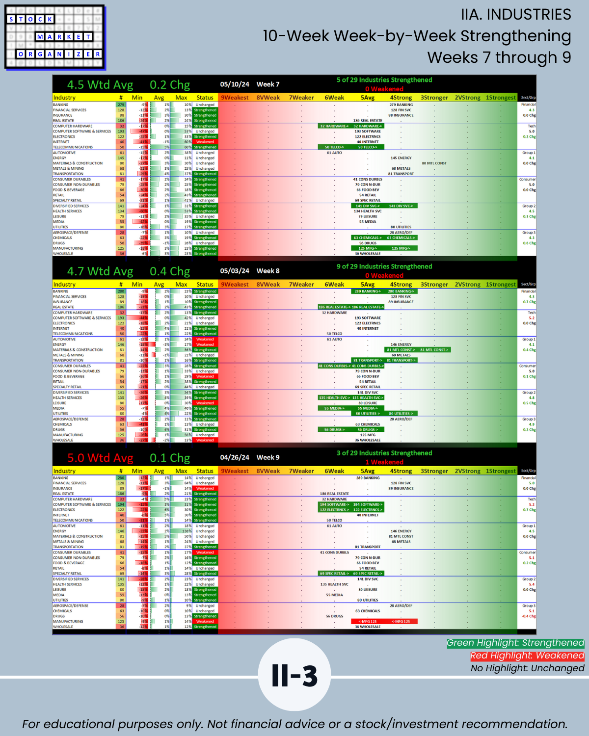 - 53% of 198 sub-industries strengthened, 13% weakened/Section III