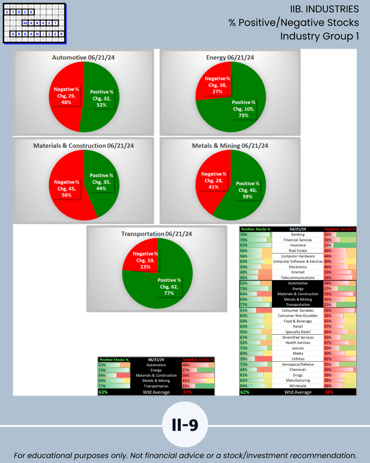 IIB. INDUSTRIES % Positive/Negative Stocks