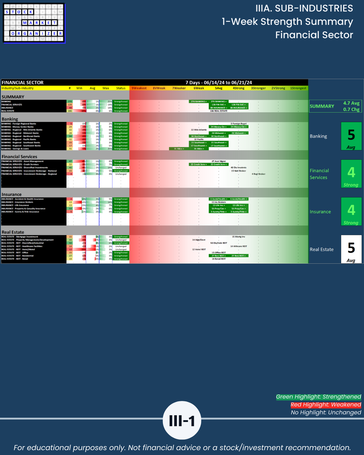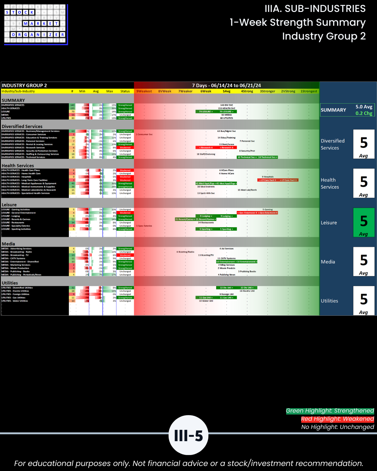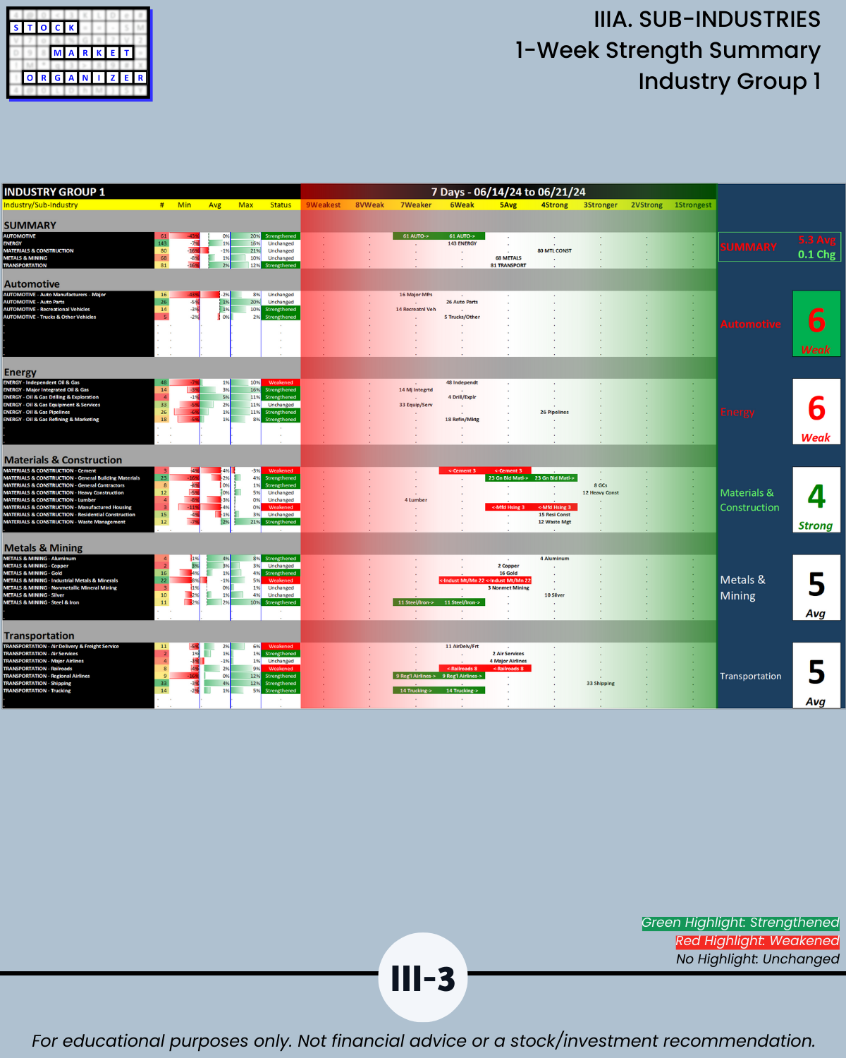 IIIA. SUB-INDUSTRIES 1-Week Strength Summary