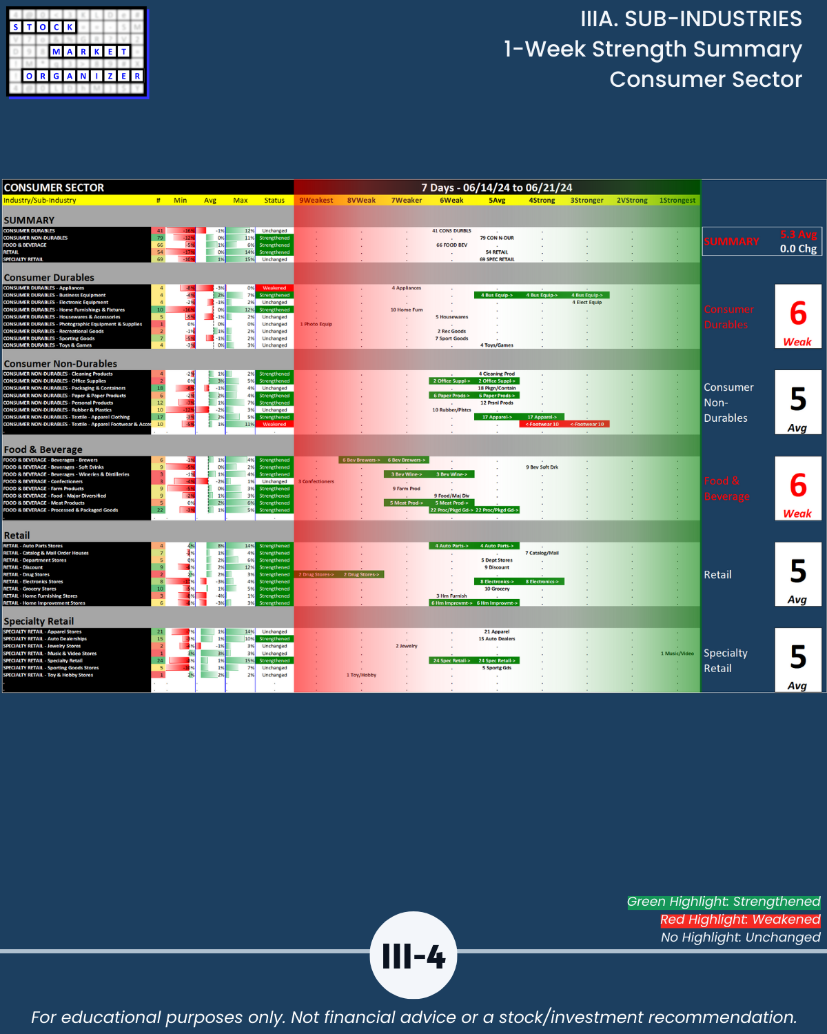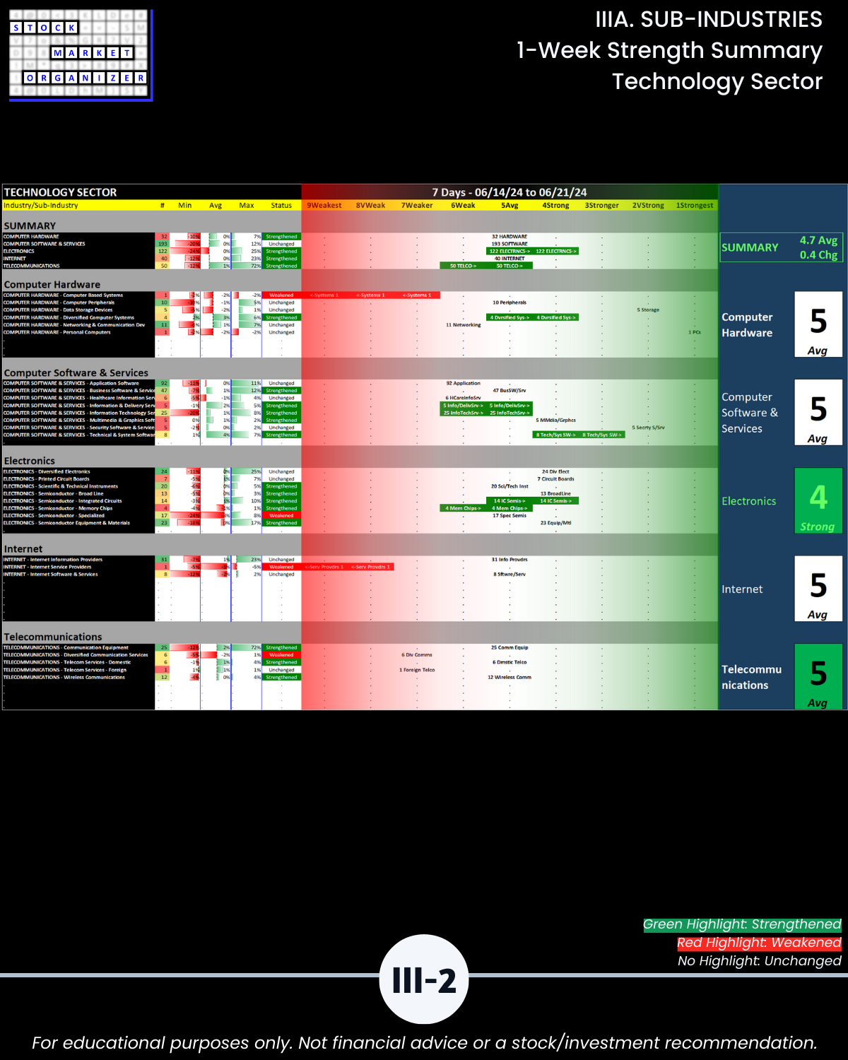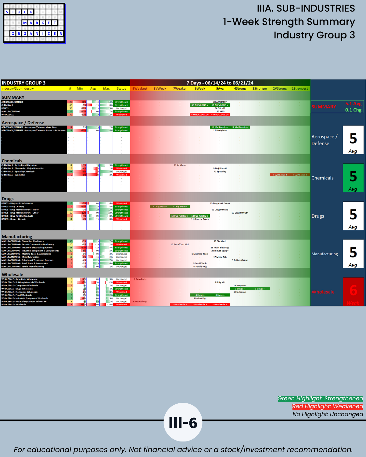 IIIA. SUB-INDUSTRIES 1-Week Strength Summary