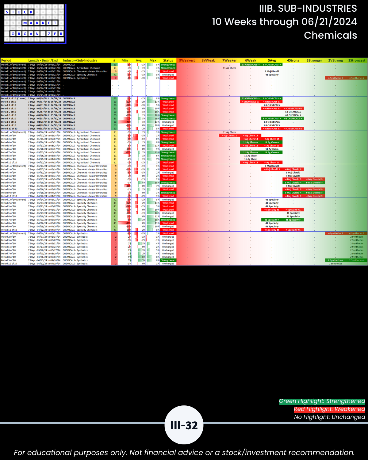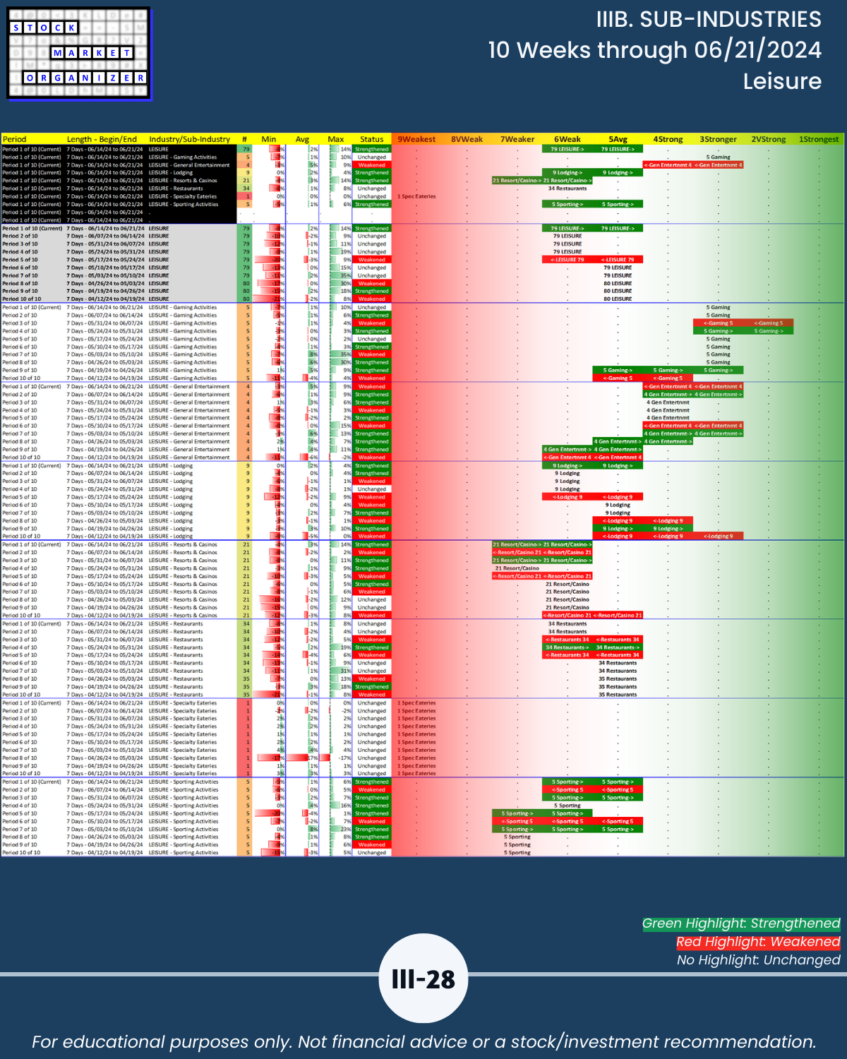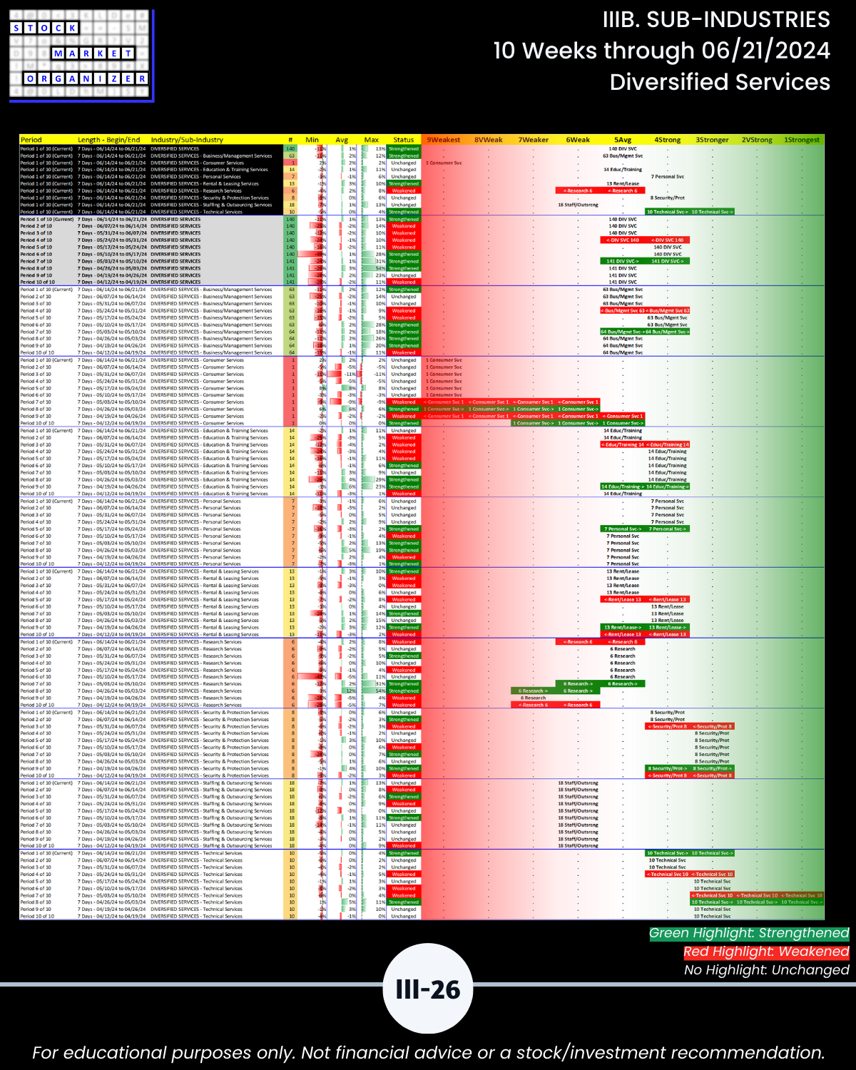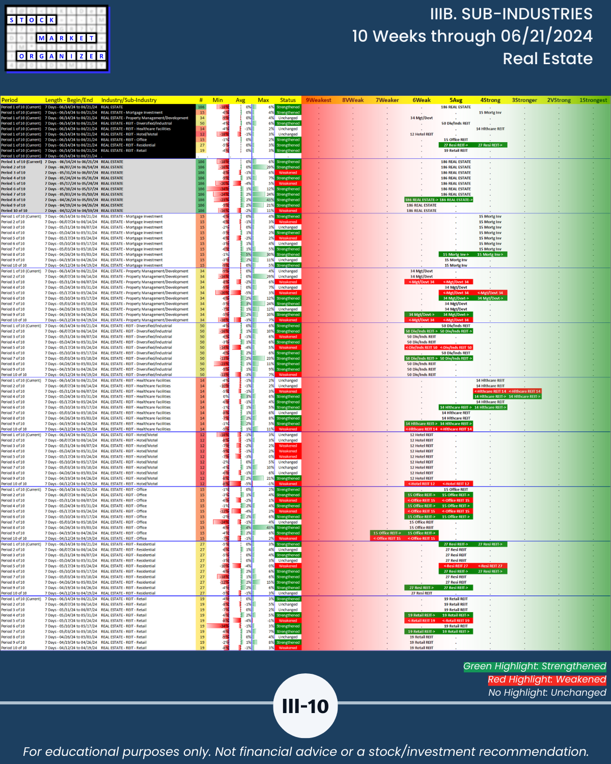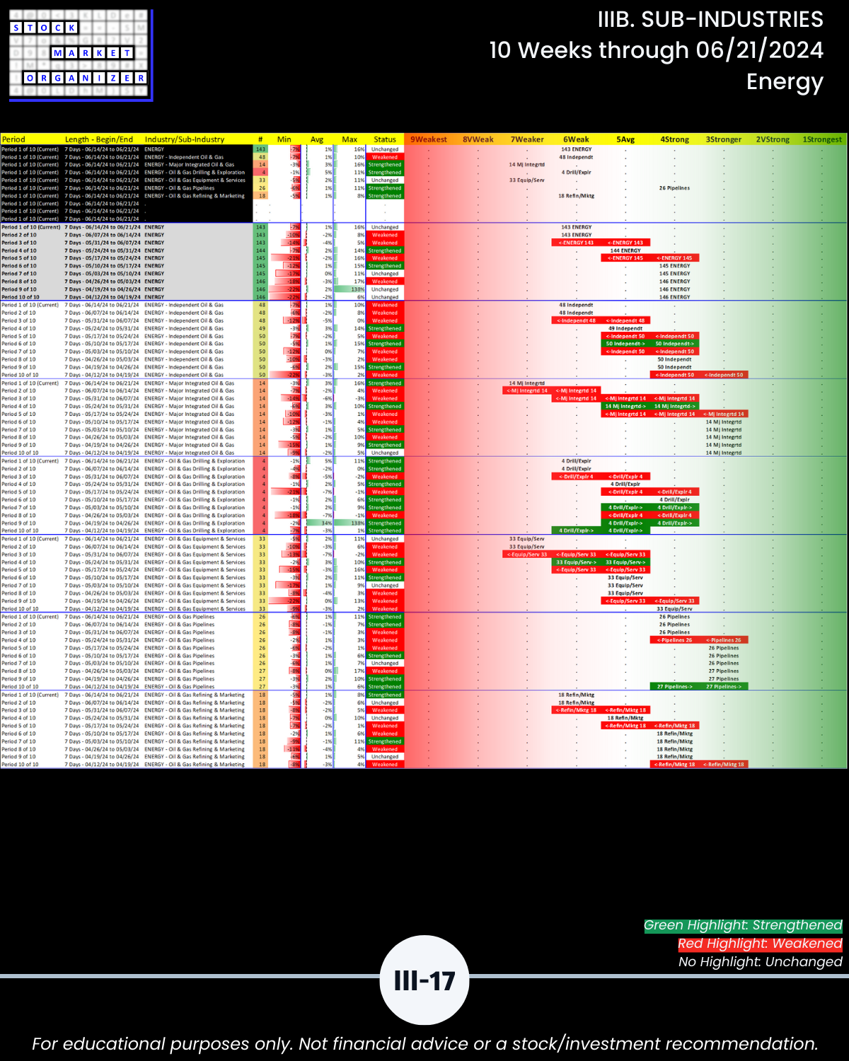 IIIB. SUB-INDUSTRIES 10-Week Strengthening/Weakening