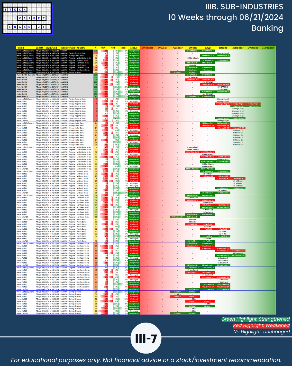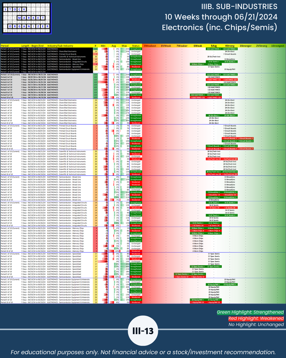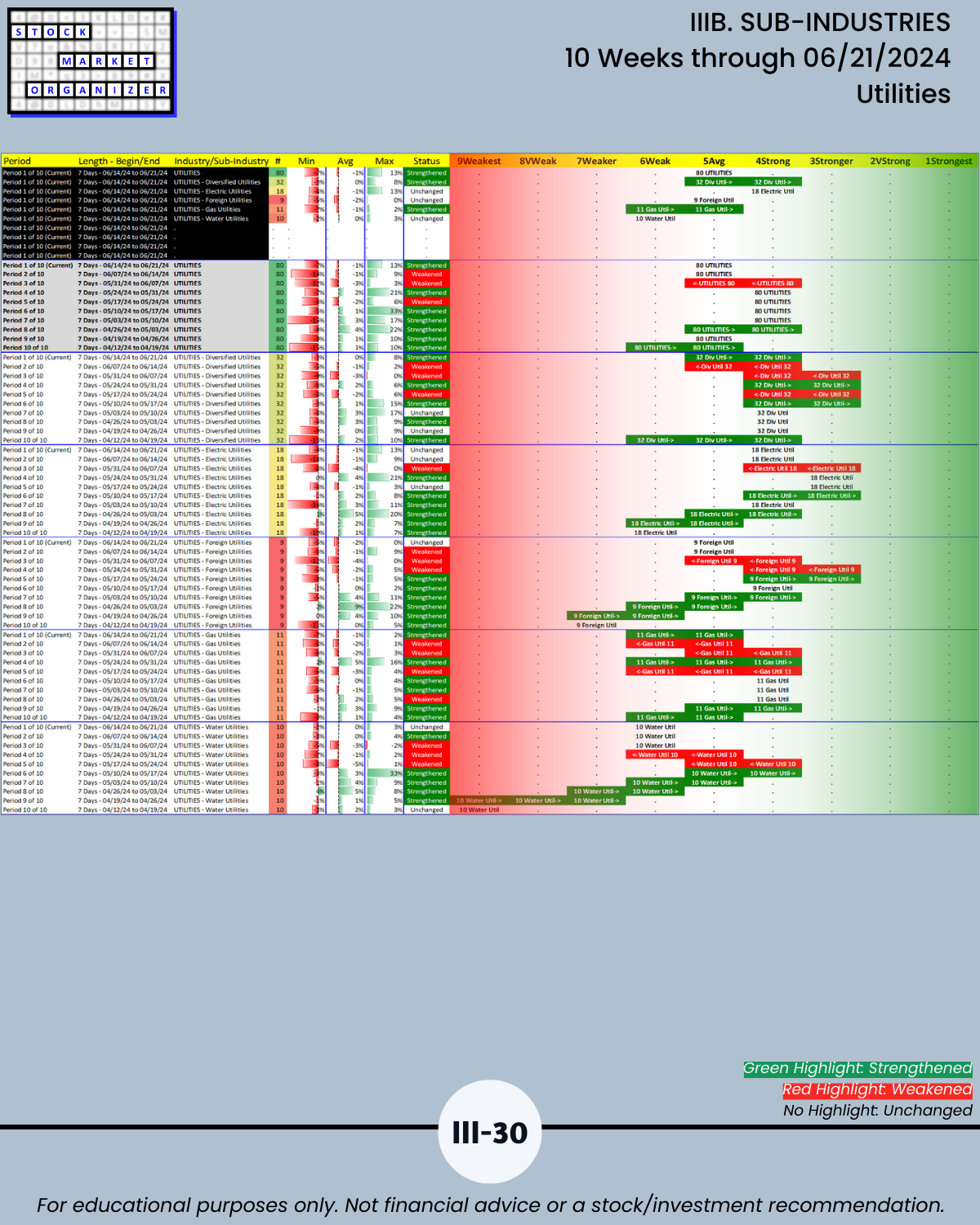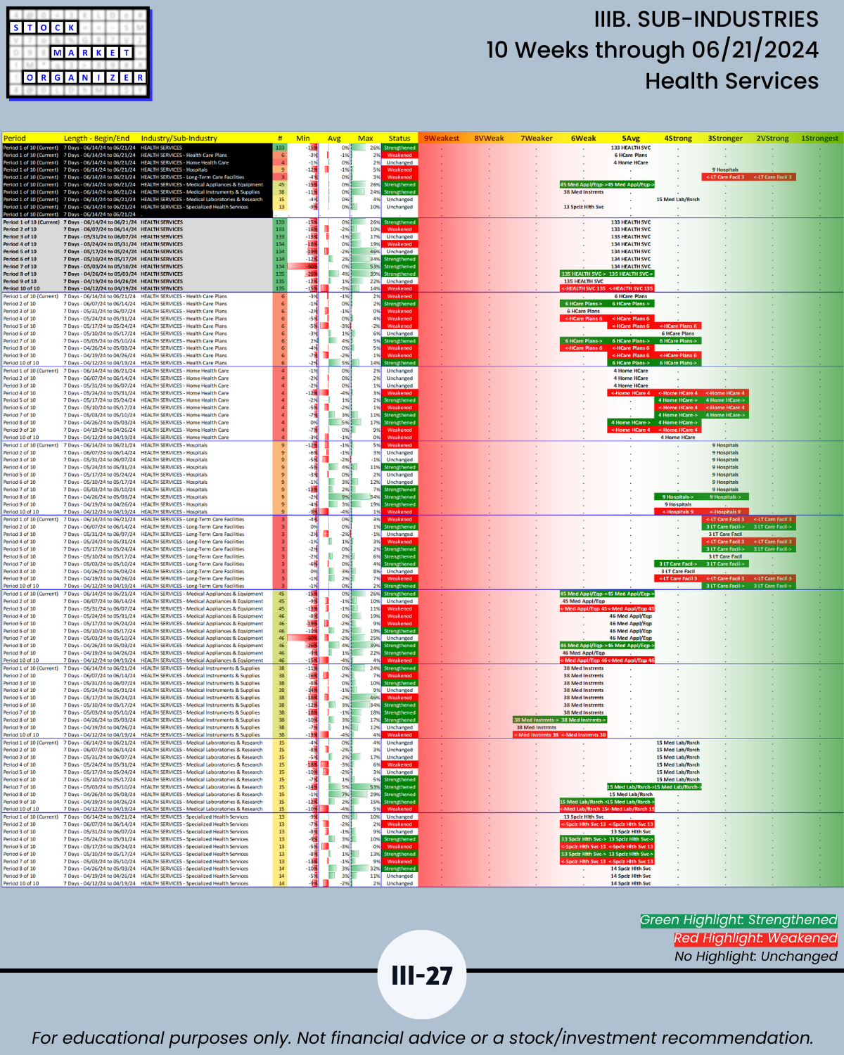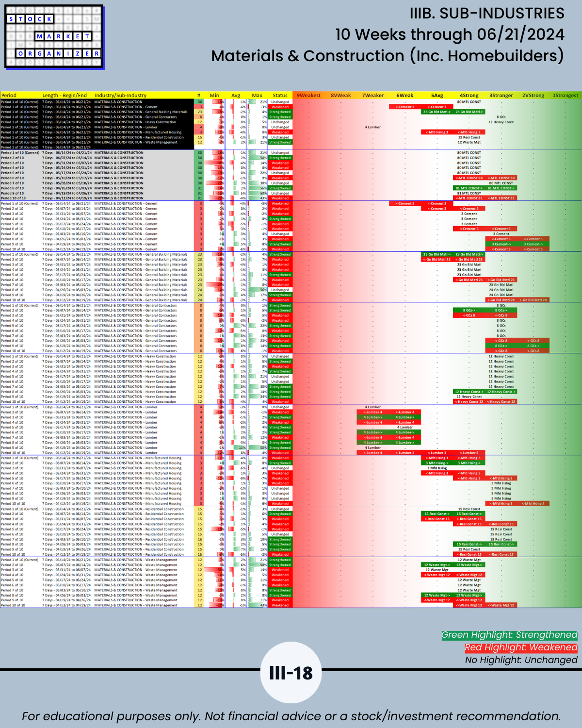 IIIB. SUB-INDUSTRIES 10-Week Strengthening/Weakening