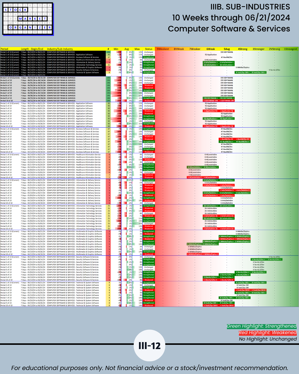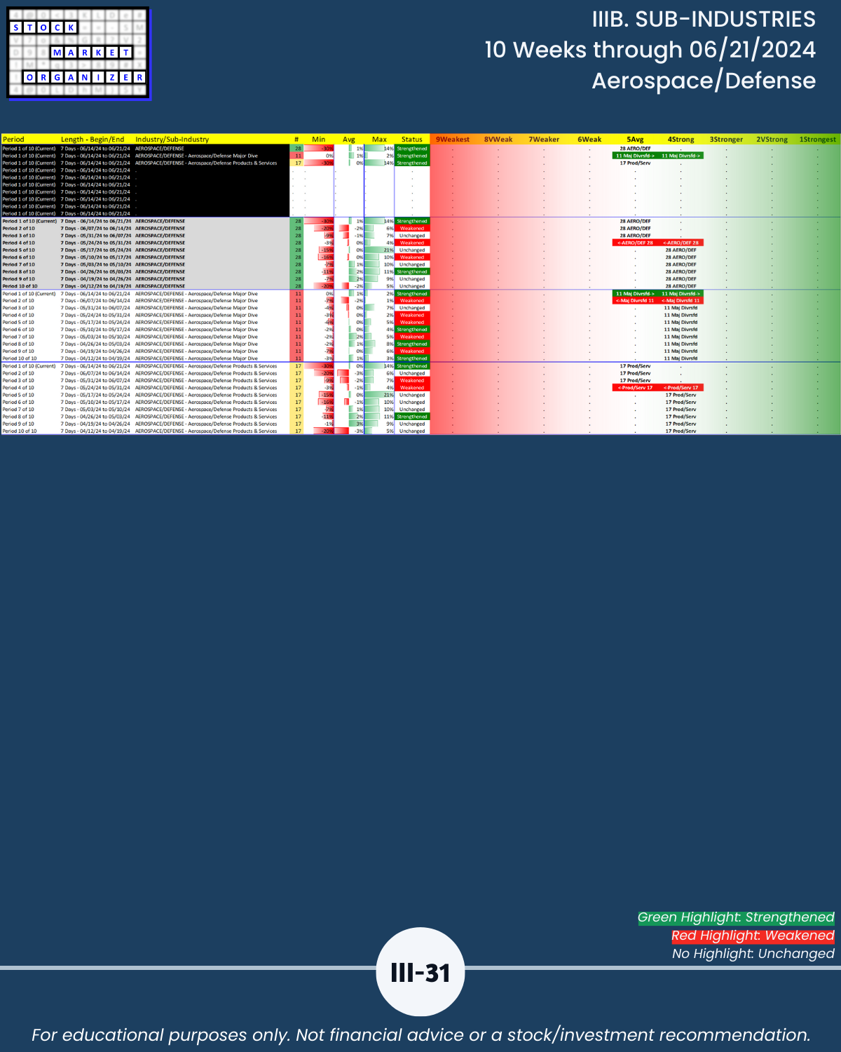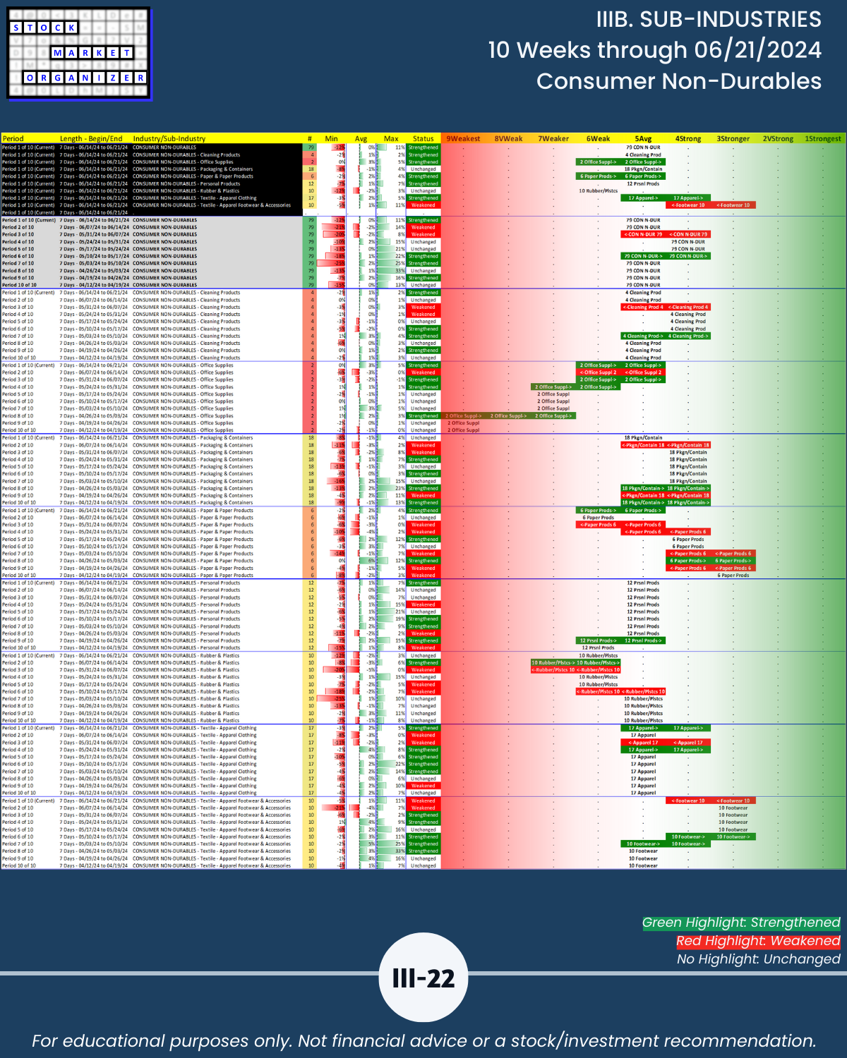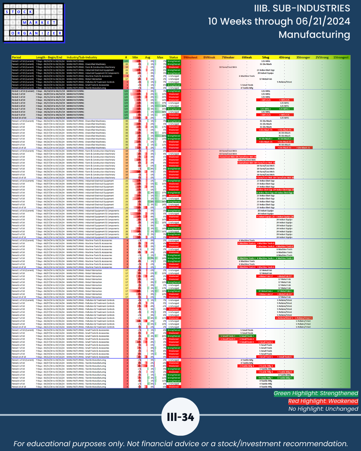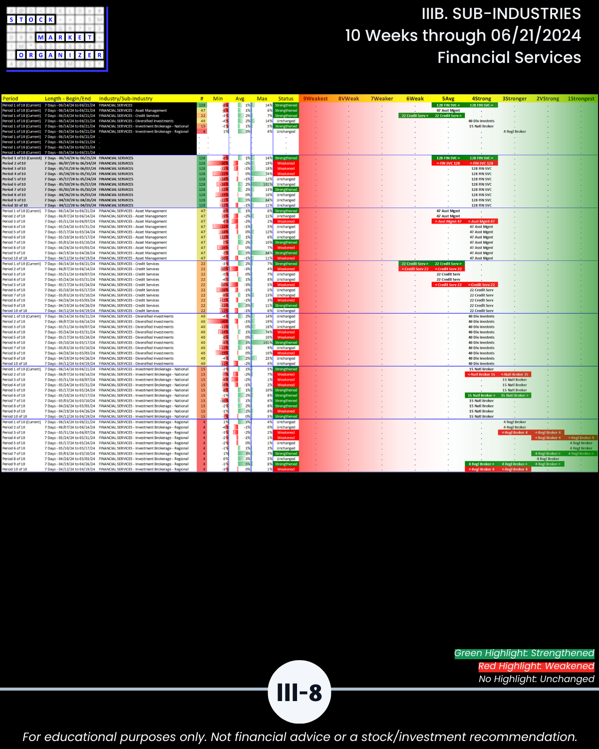 IIIB. SUB-INDUSTRIES 10-Week Strengthening/Weakening