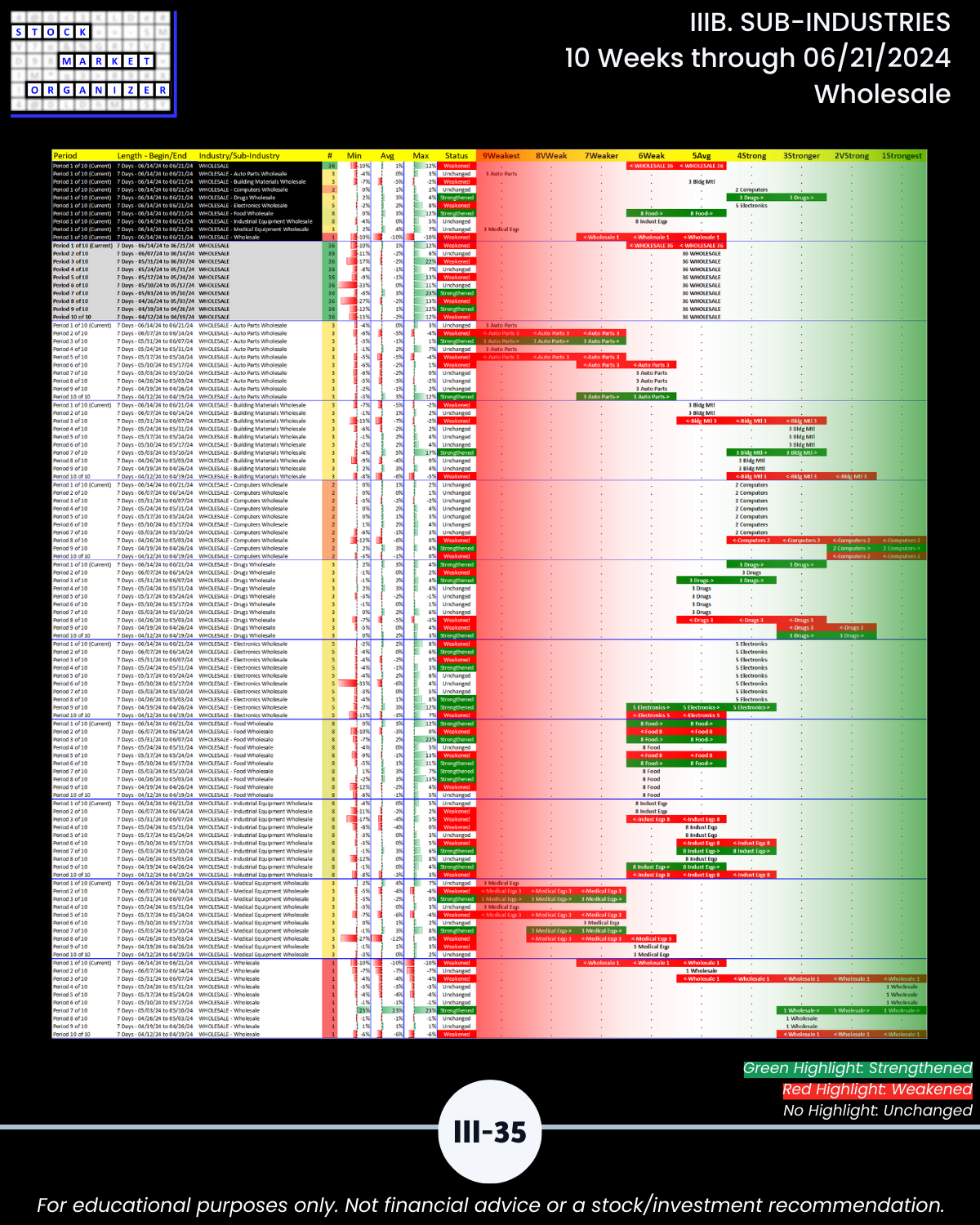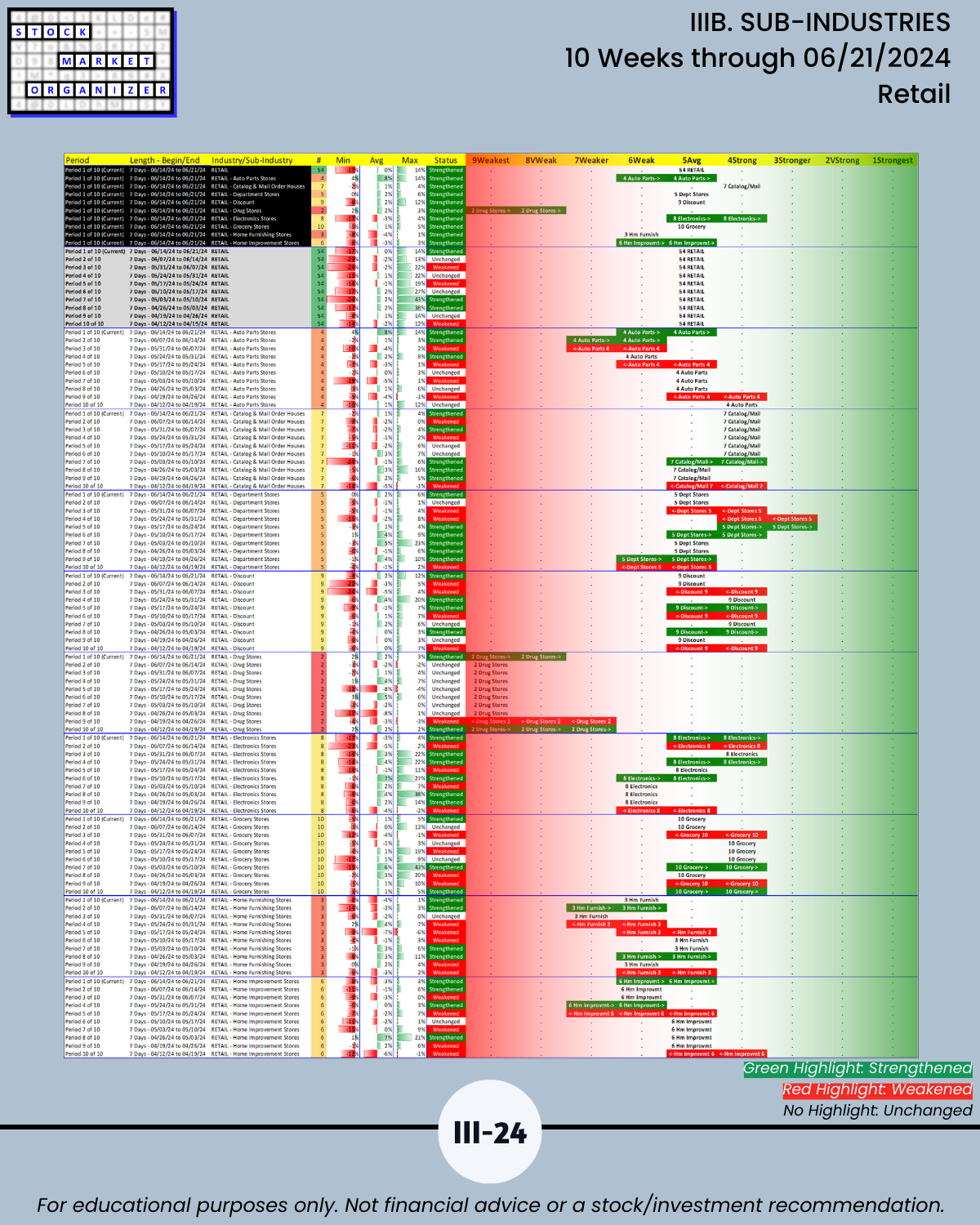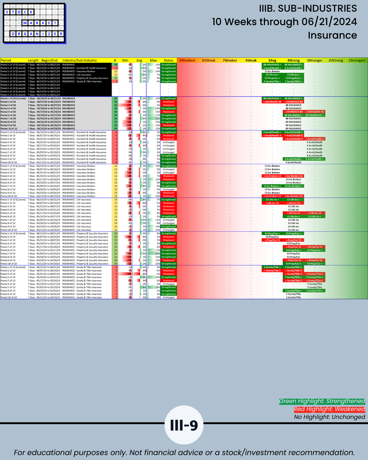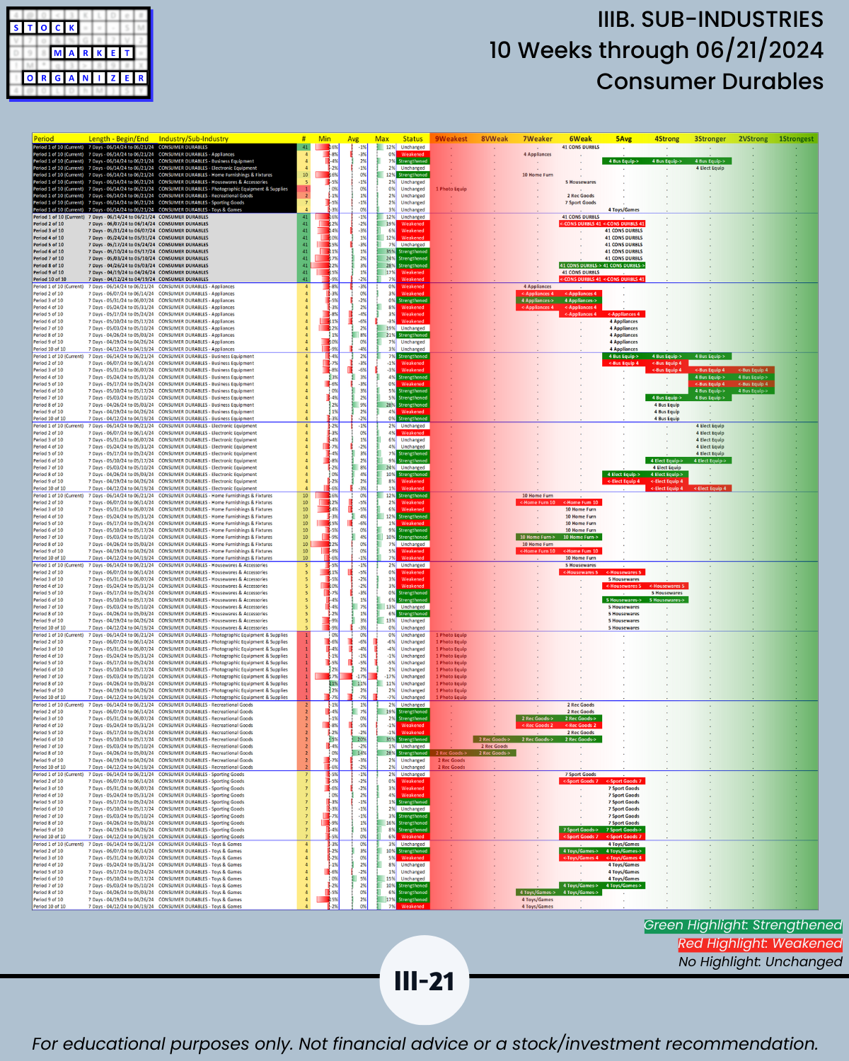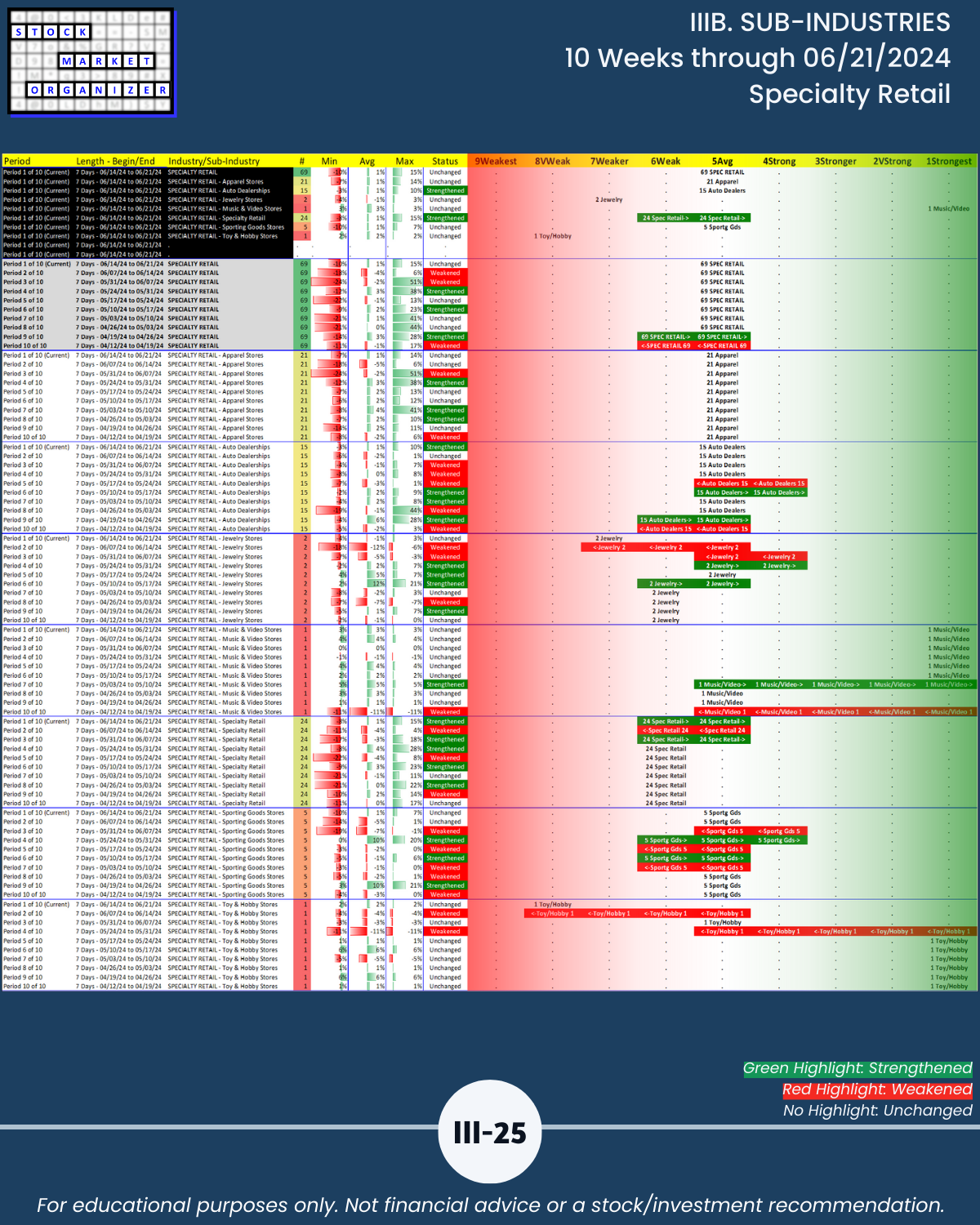 IIIB. SUB-INDUSTRIES 10-Week Strengthening/Weakening