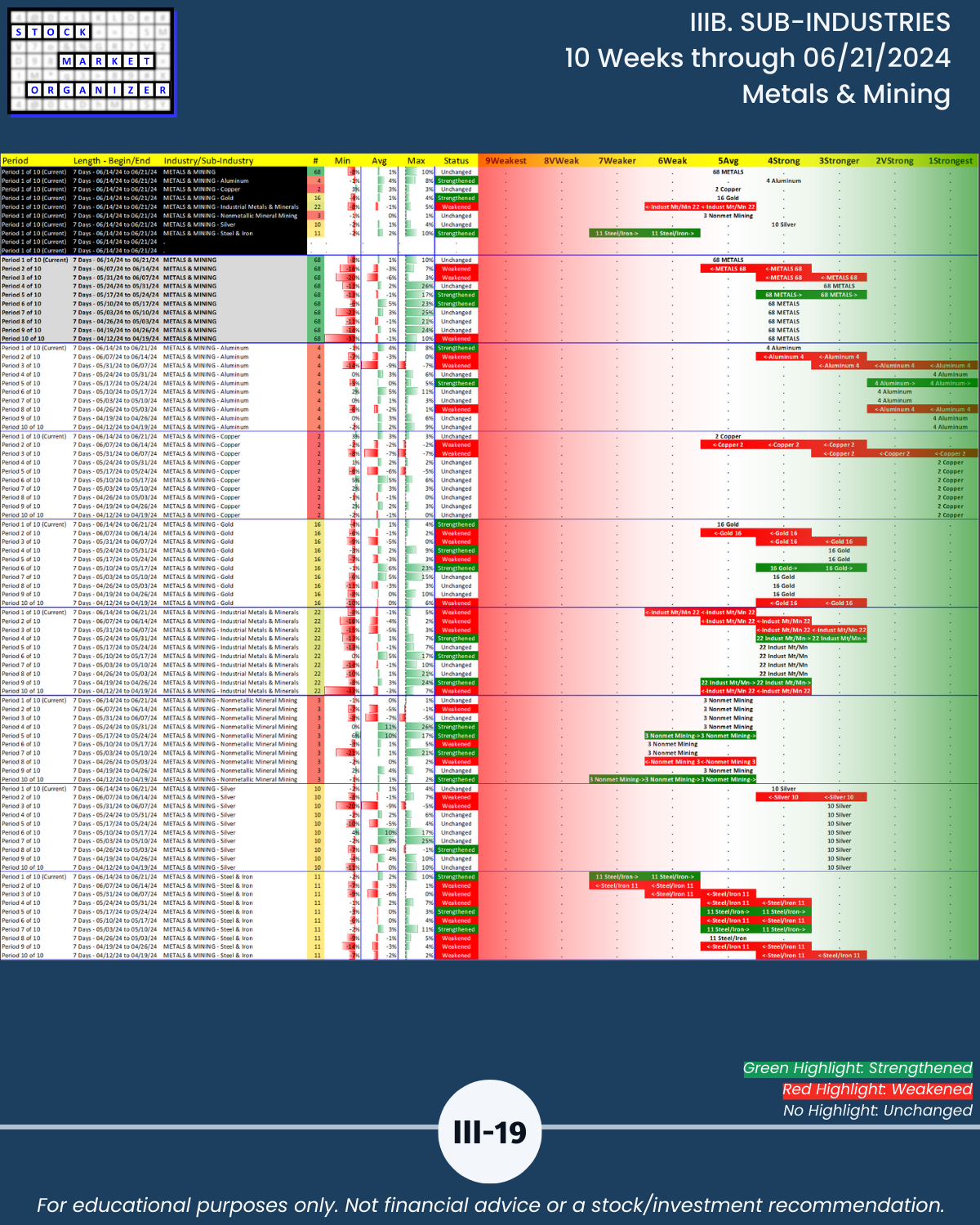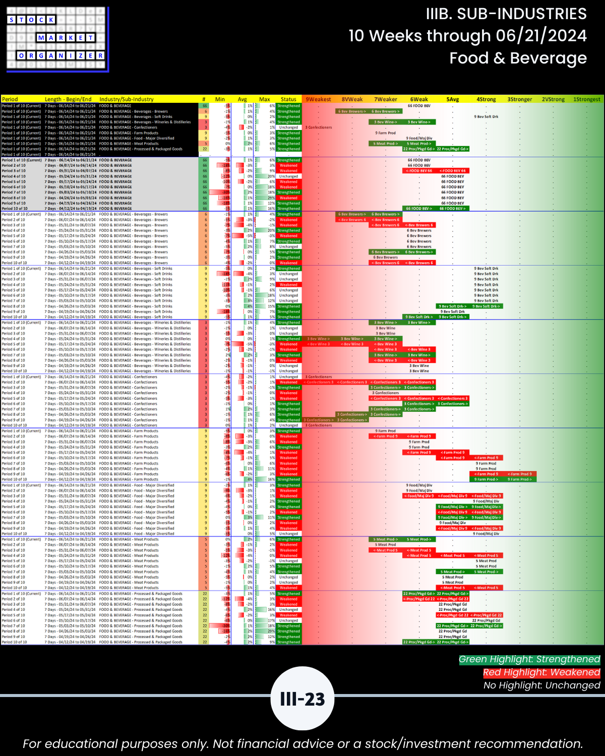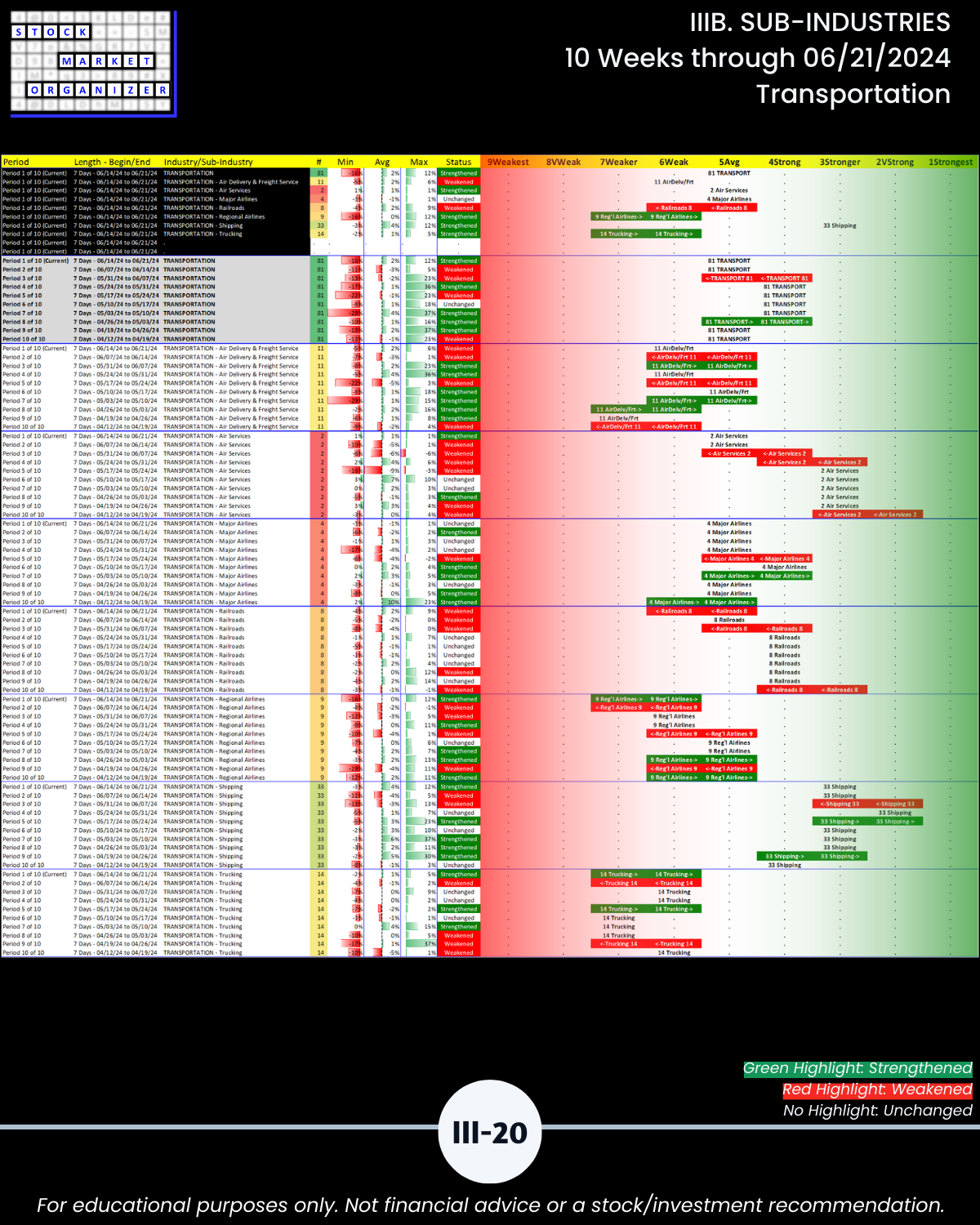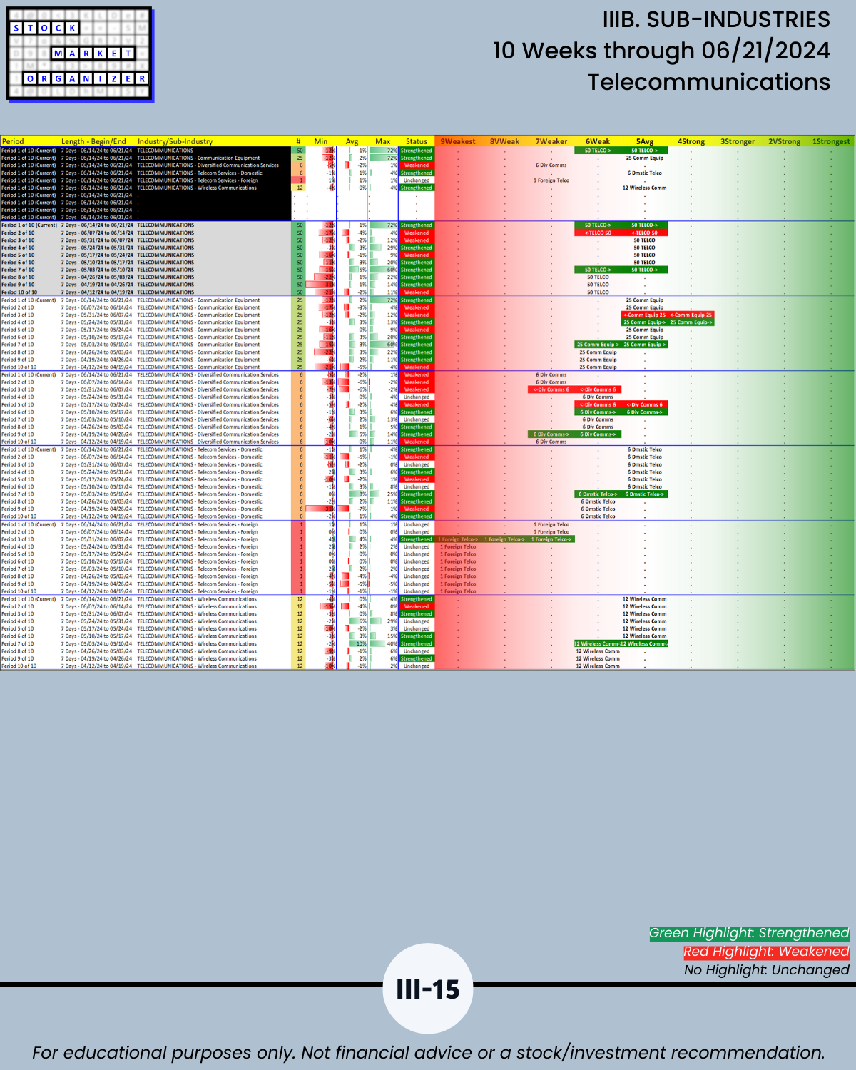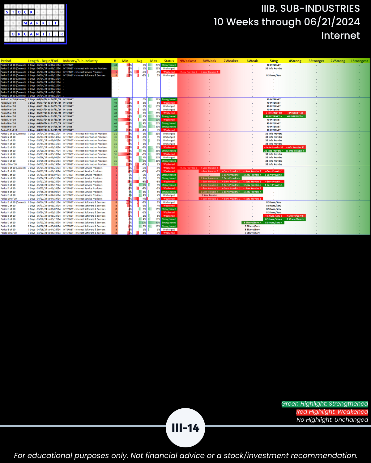 IIIB. SUB-INDUSTRIES 10-Week Strengthening/Weakening