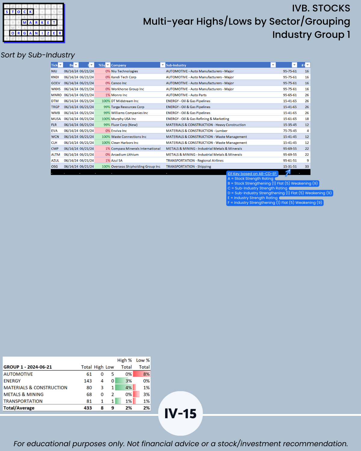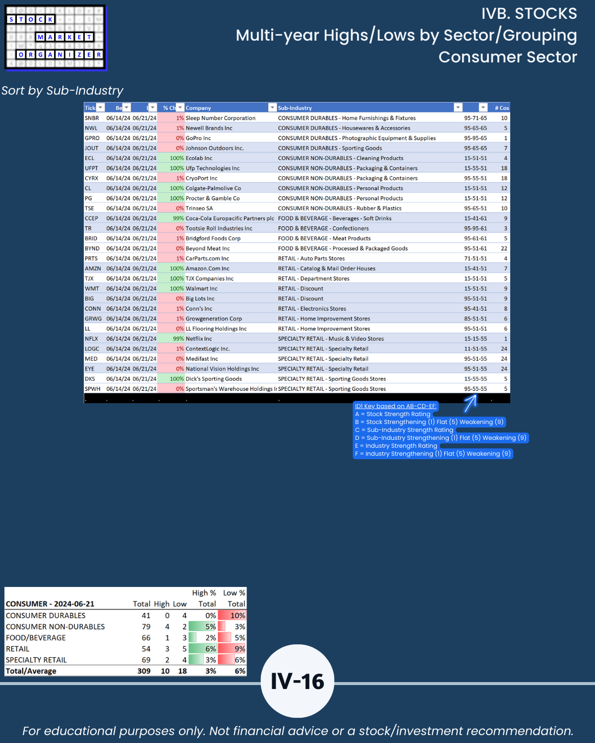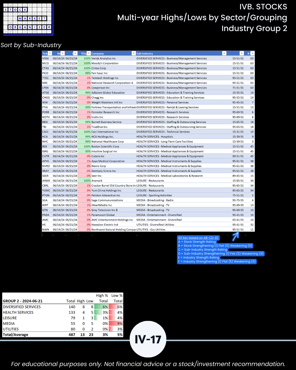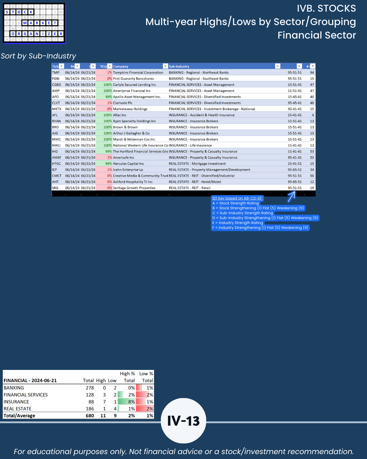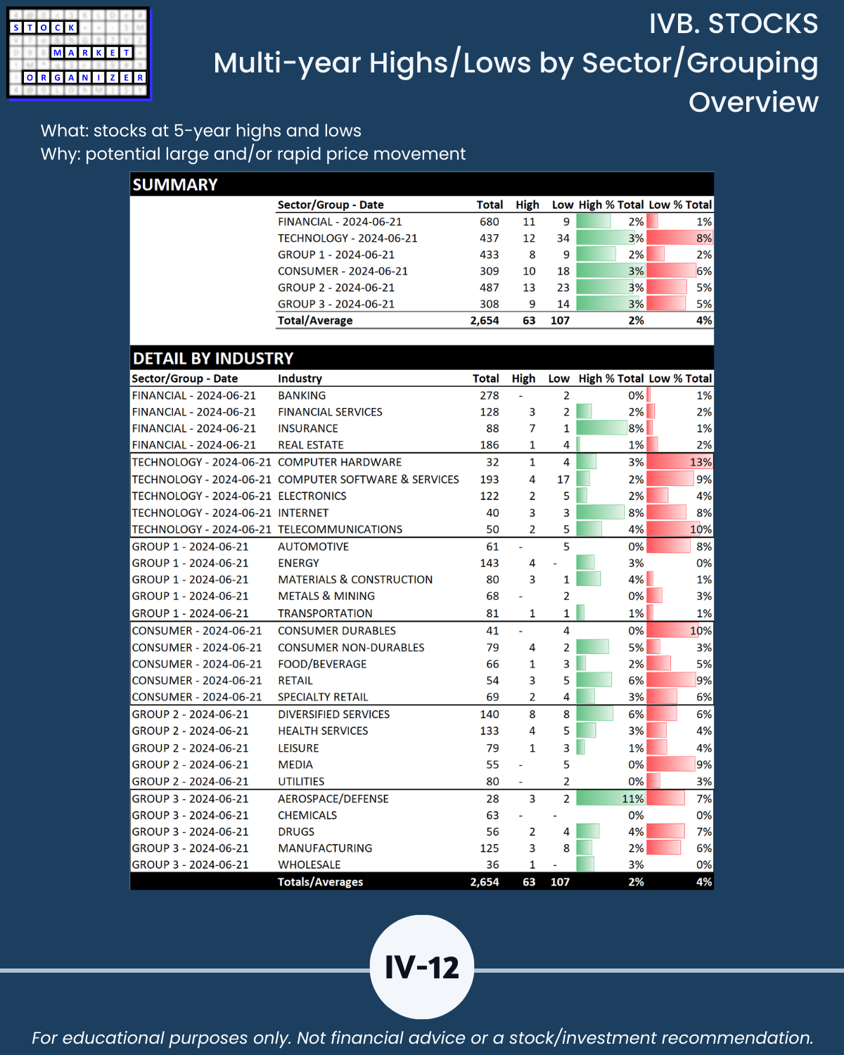 IVB. STOCKS Multi-Year Highs/Lows by Sector/Grouping