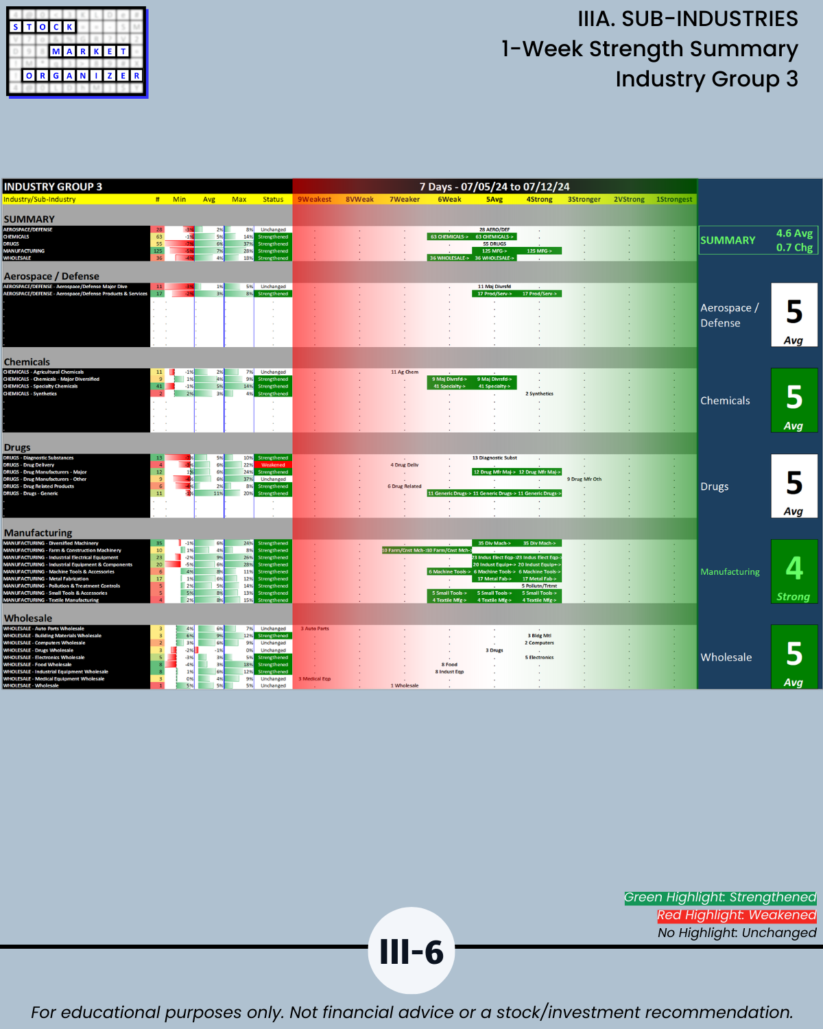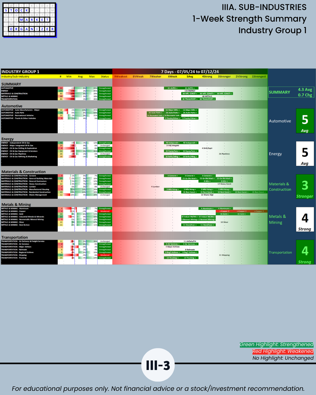 IIIA. SUB-INDUSTRIES 1-Week Strength Summary
