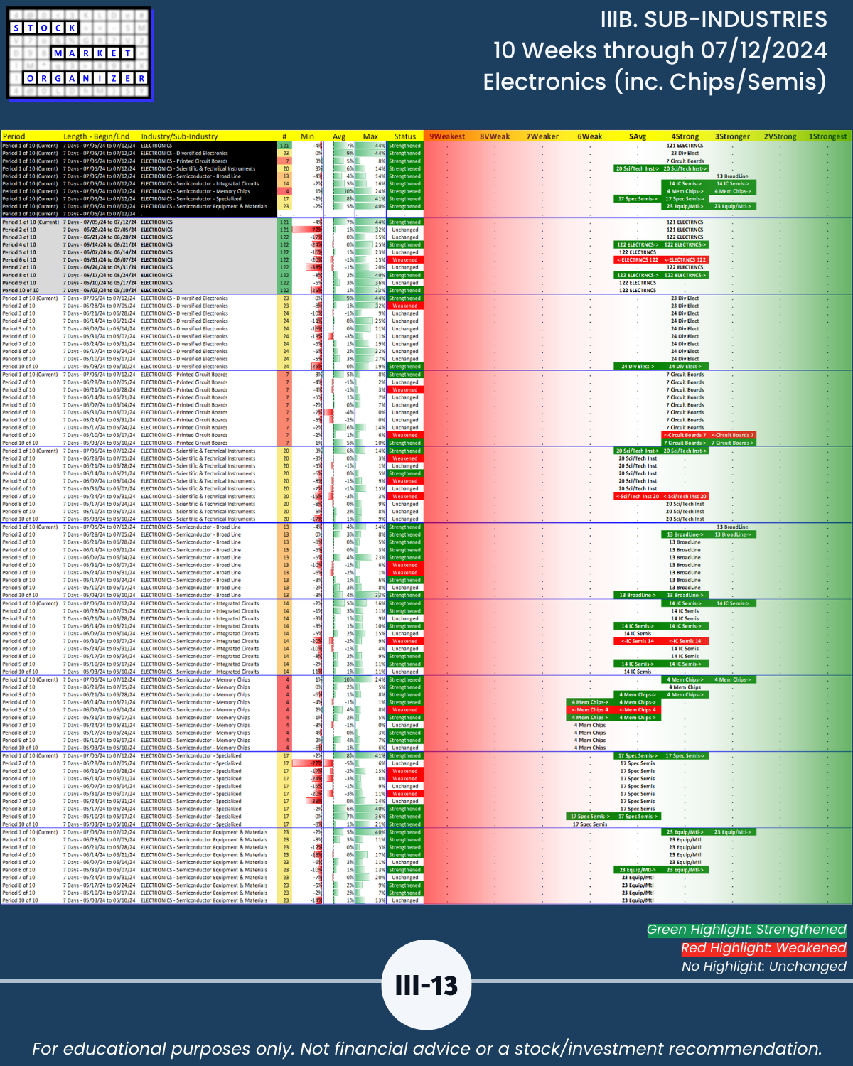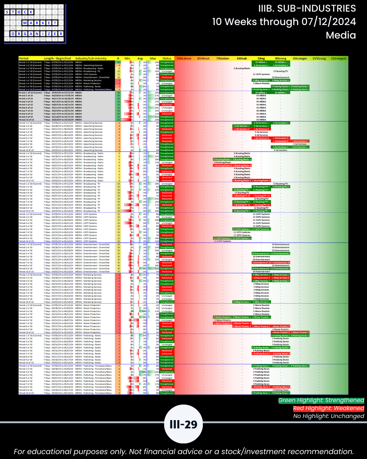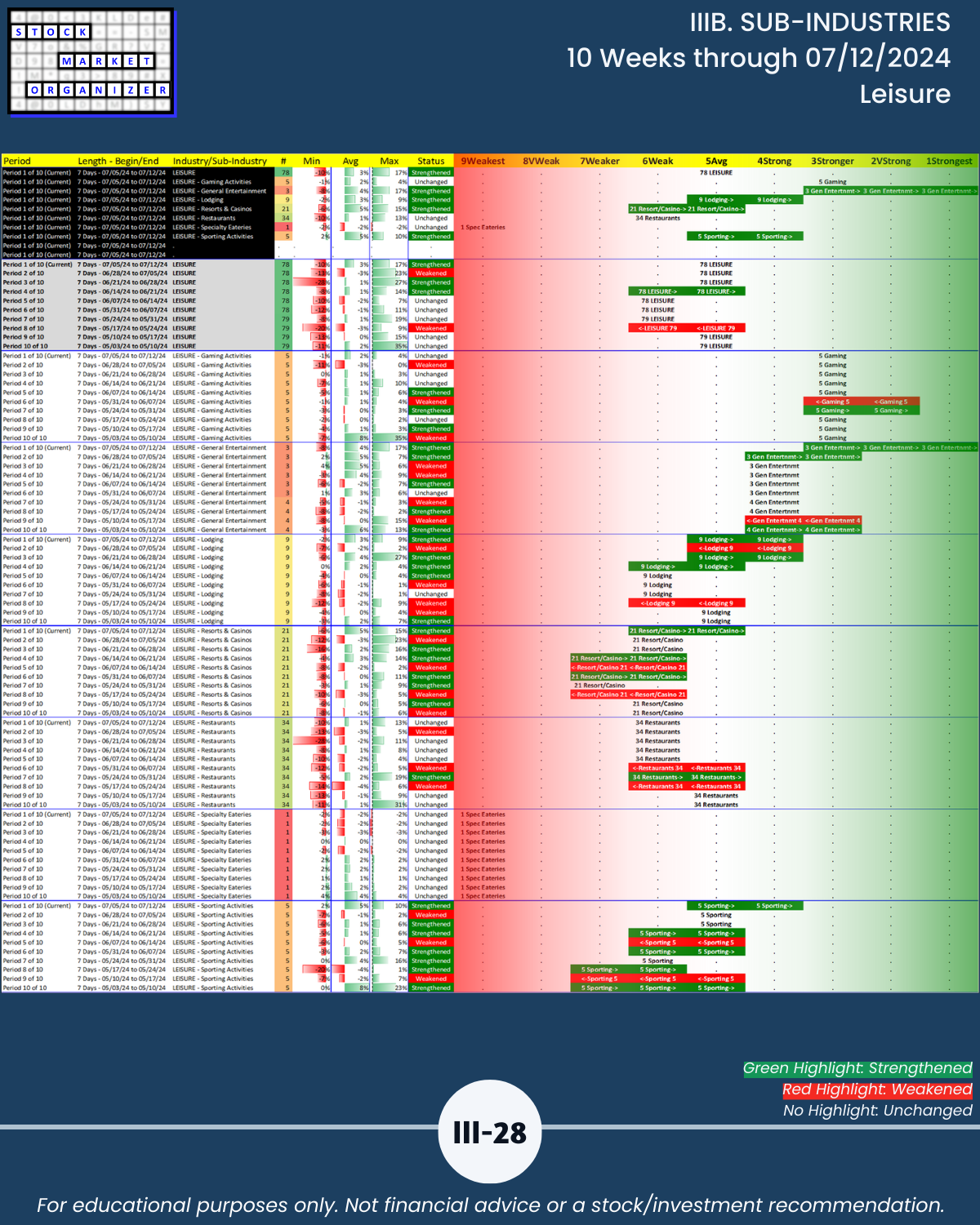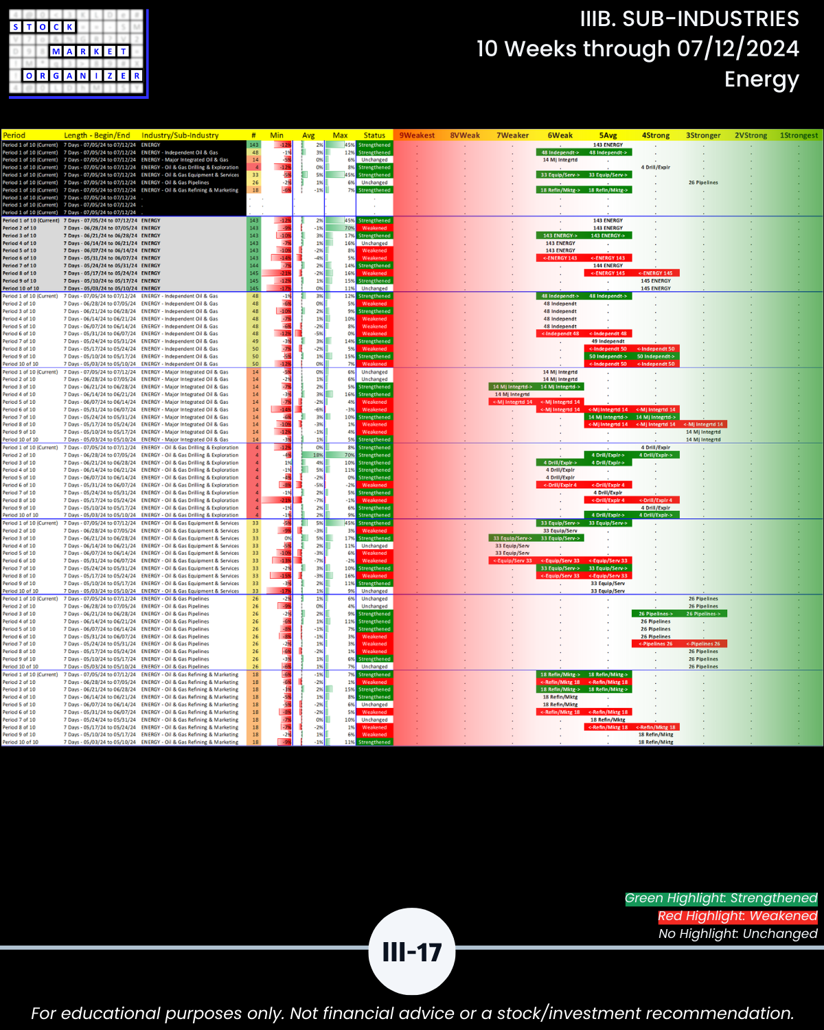 IIIB. SUB-INDUSTRIES 10-Week Strengthening/Weakening