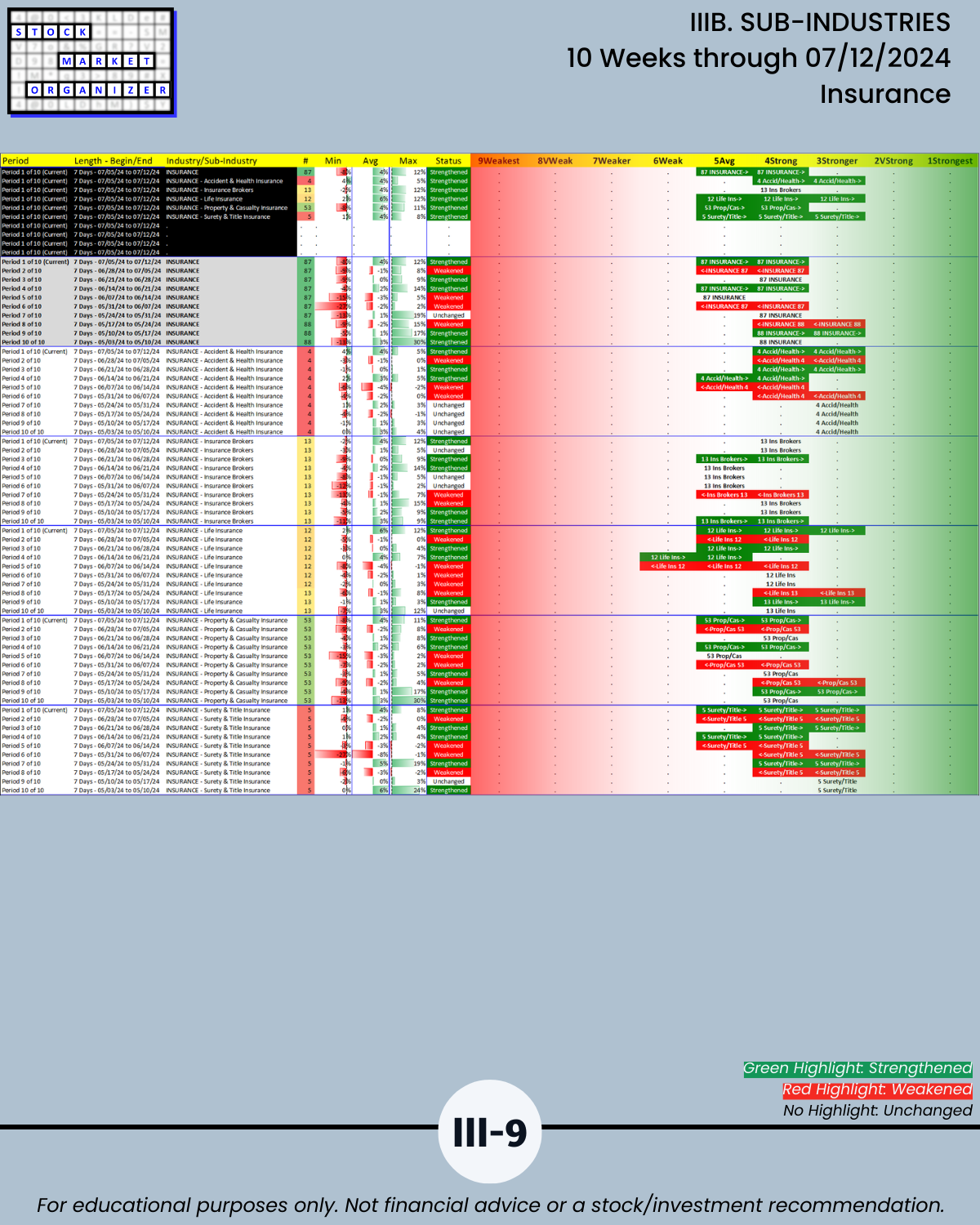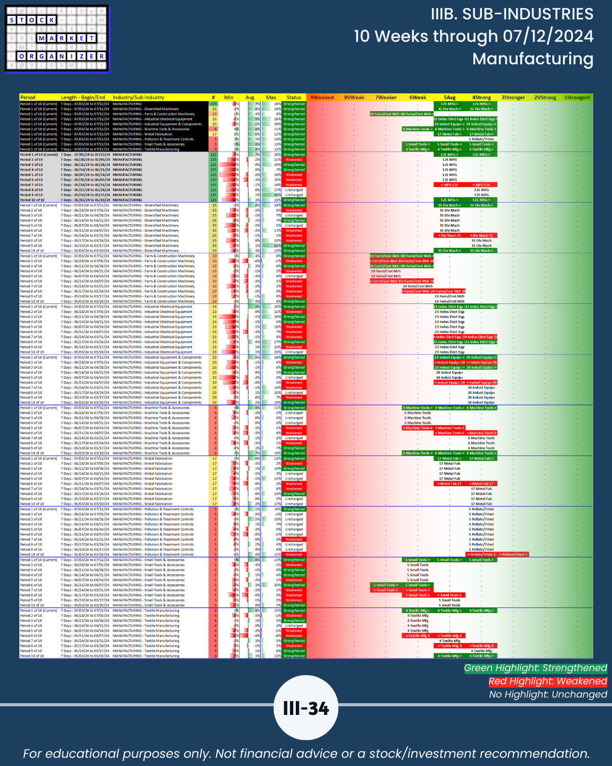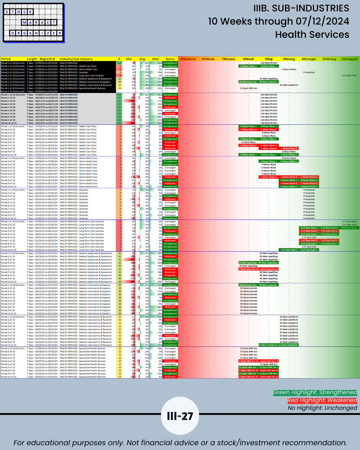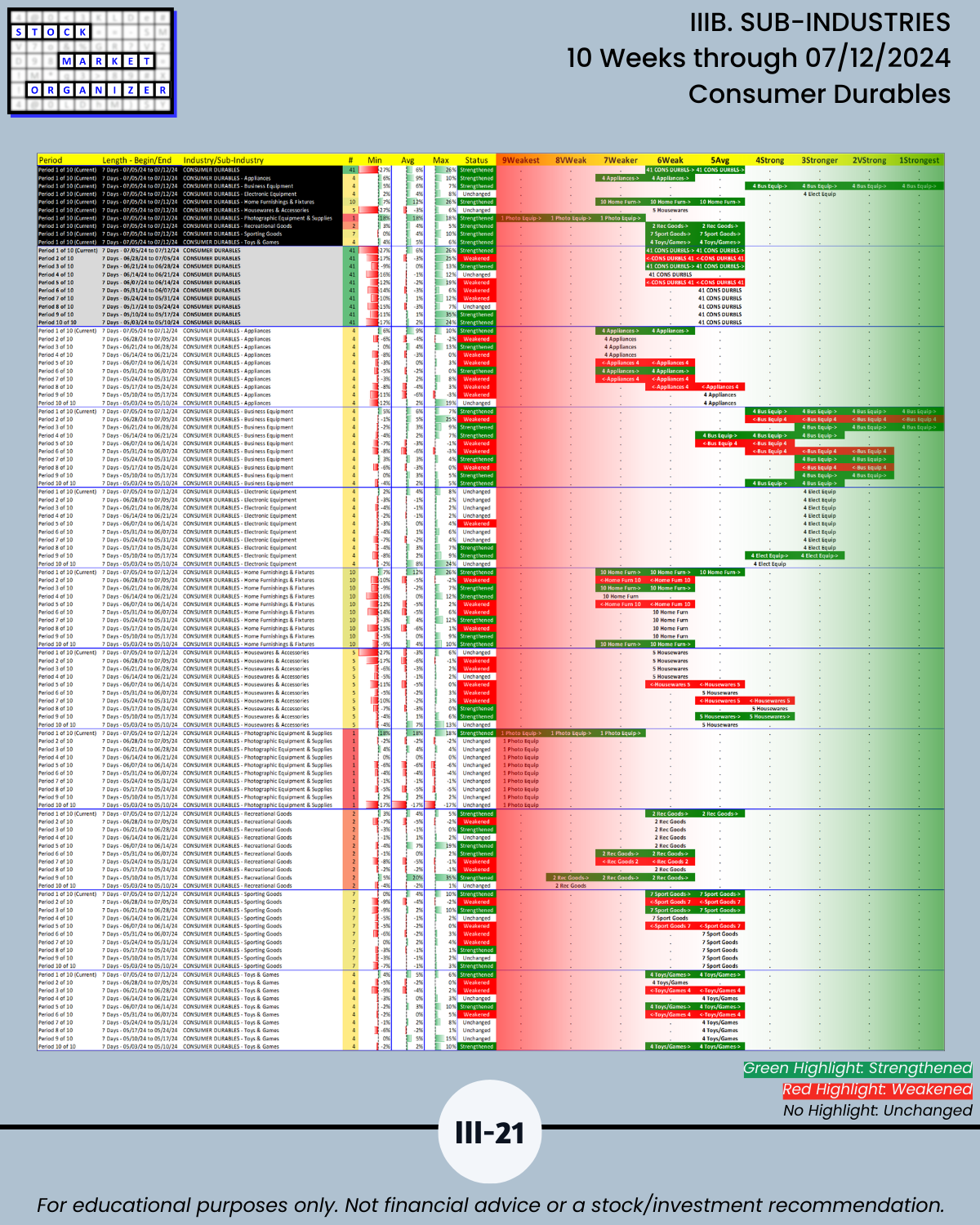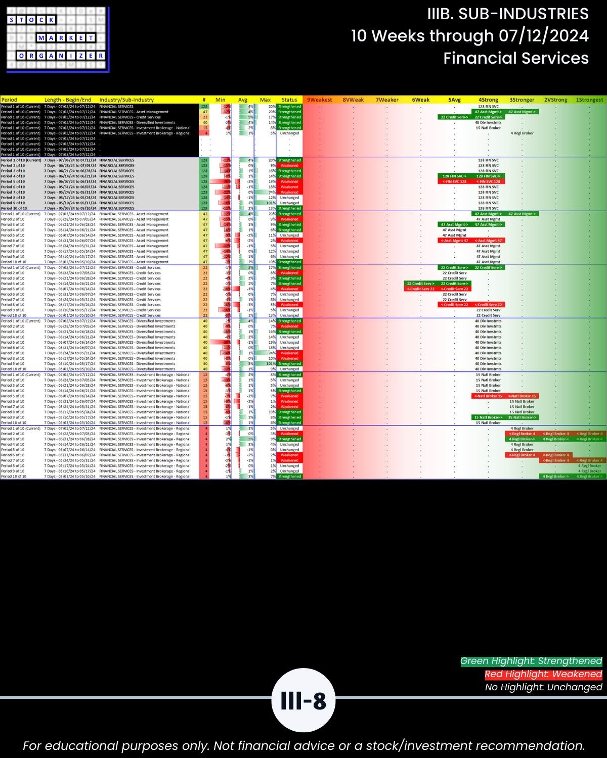 IIIB. SUB-INDUSTRIES 10-Week Strengthening/Weakening