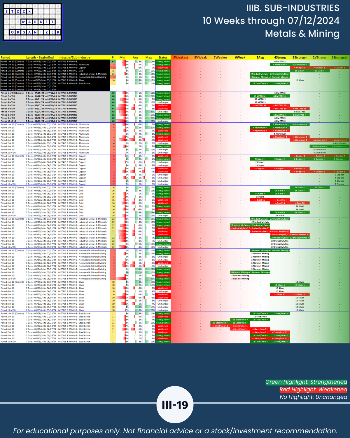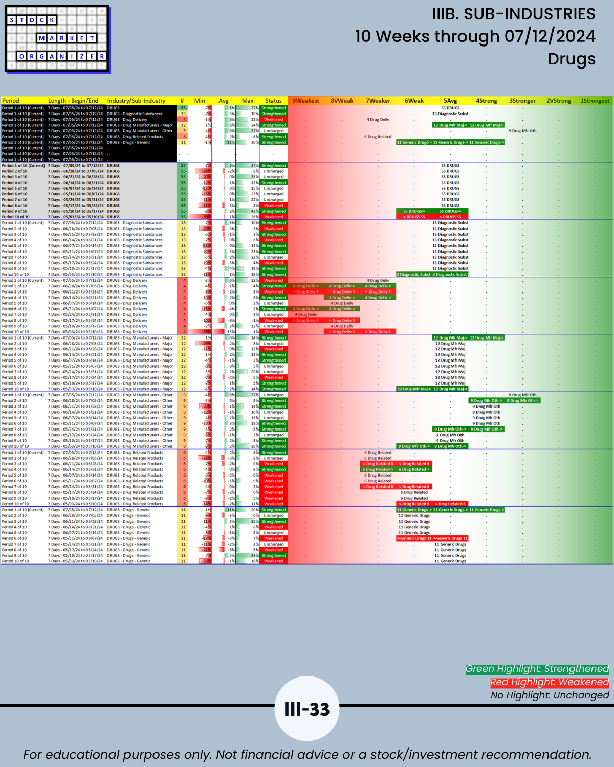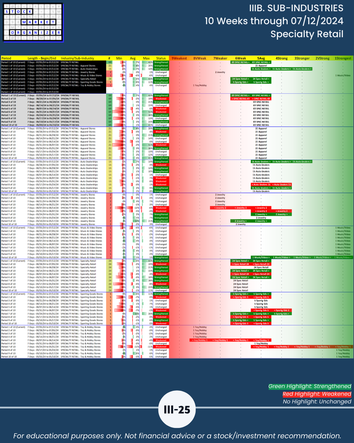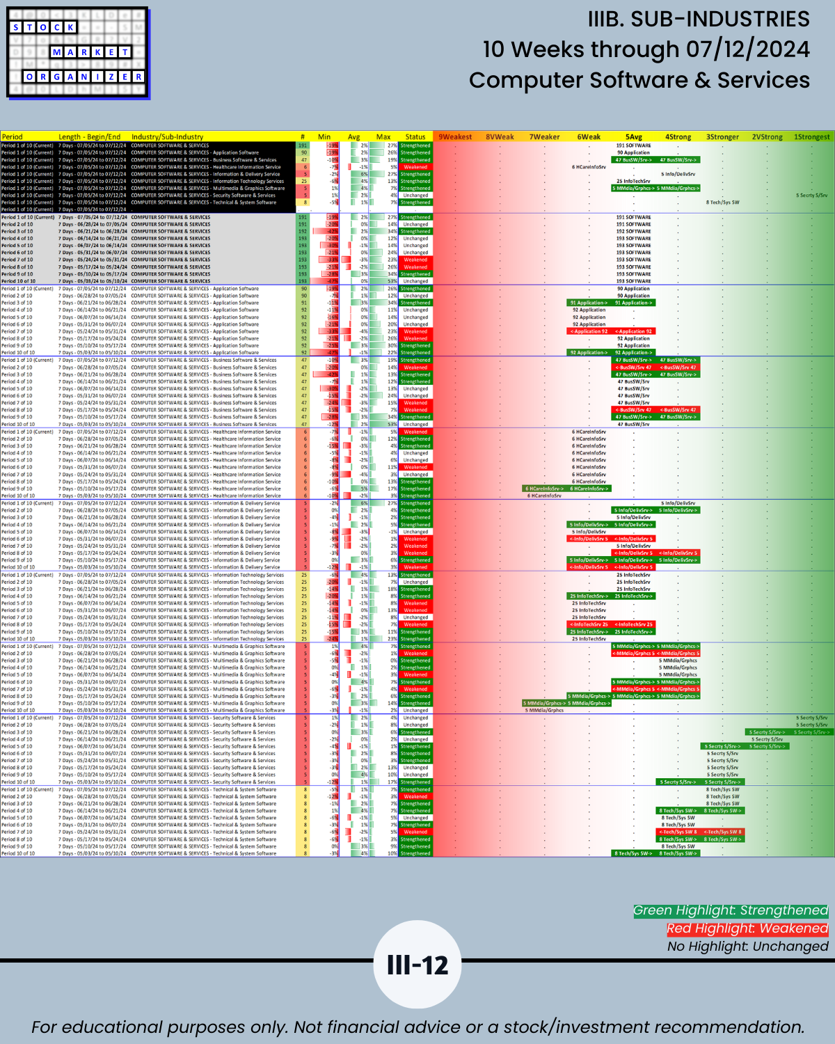 IIIB. SUB-INDUSTRIES 10-Week Strengthening/Weakening