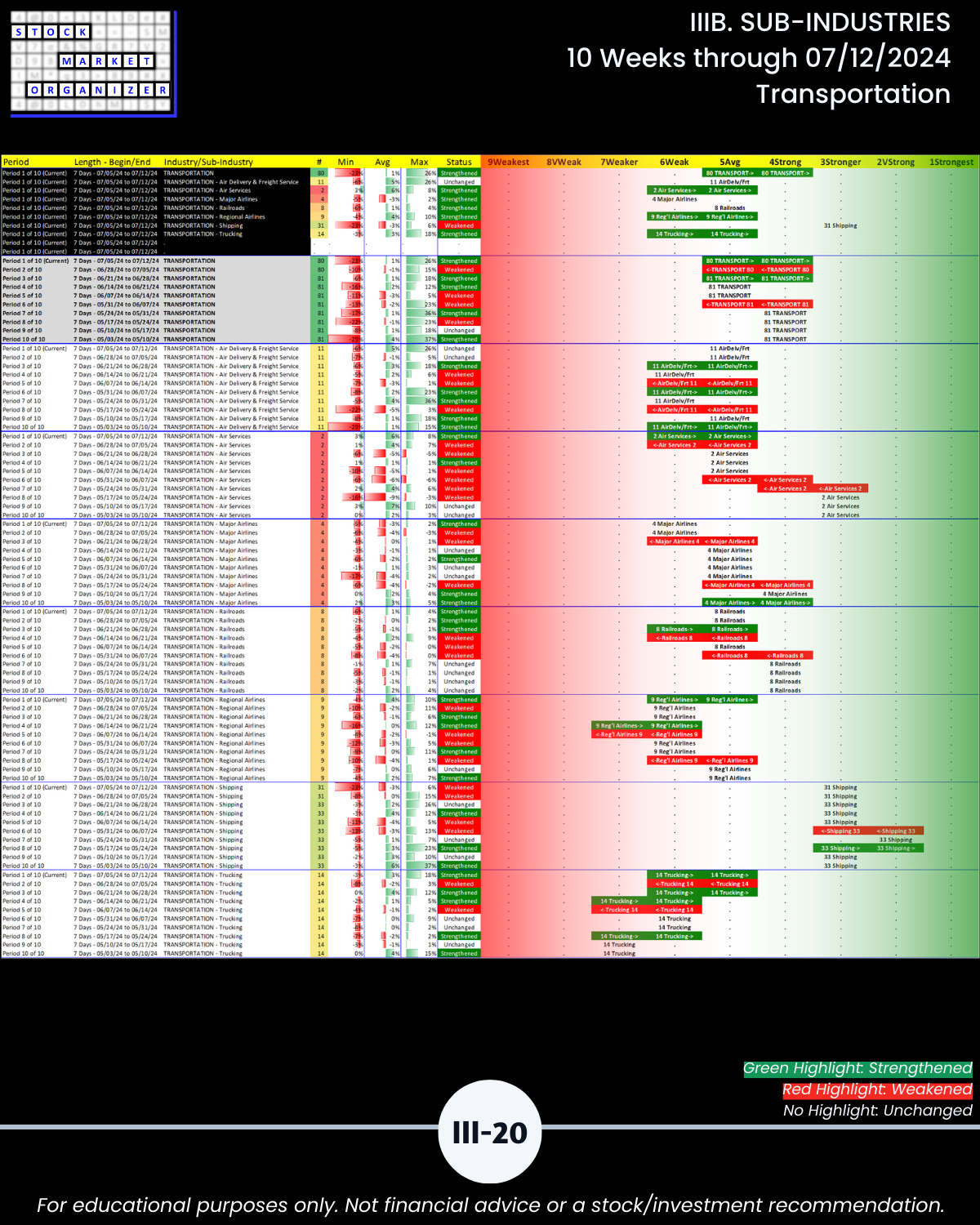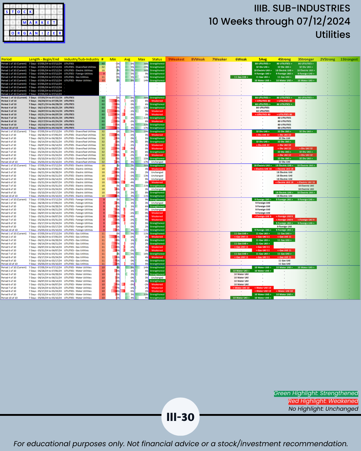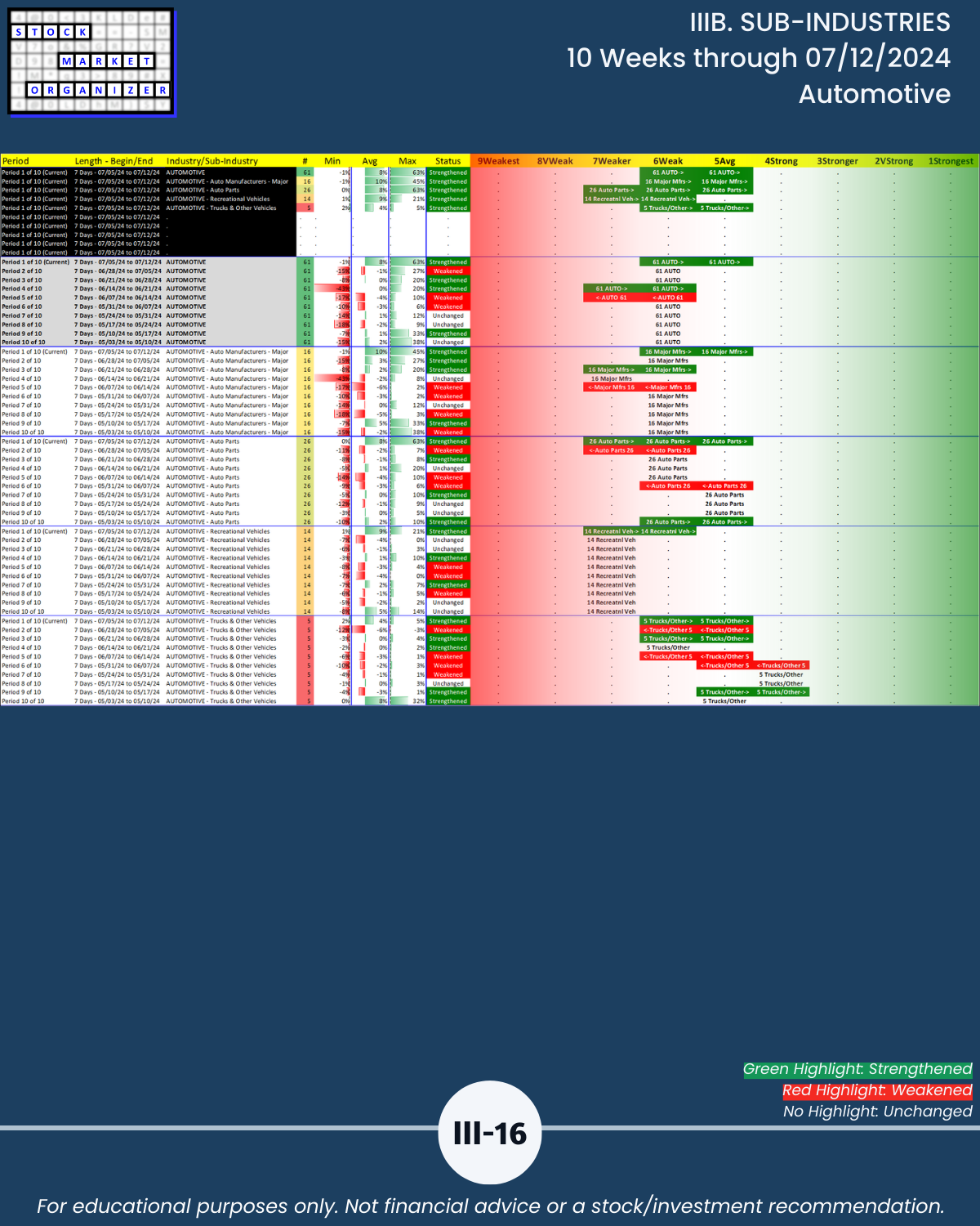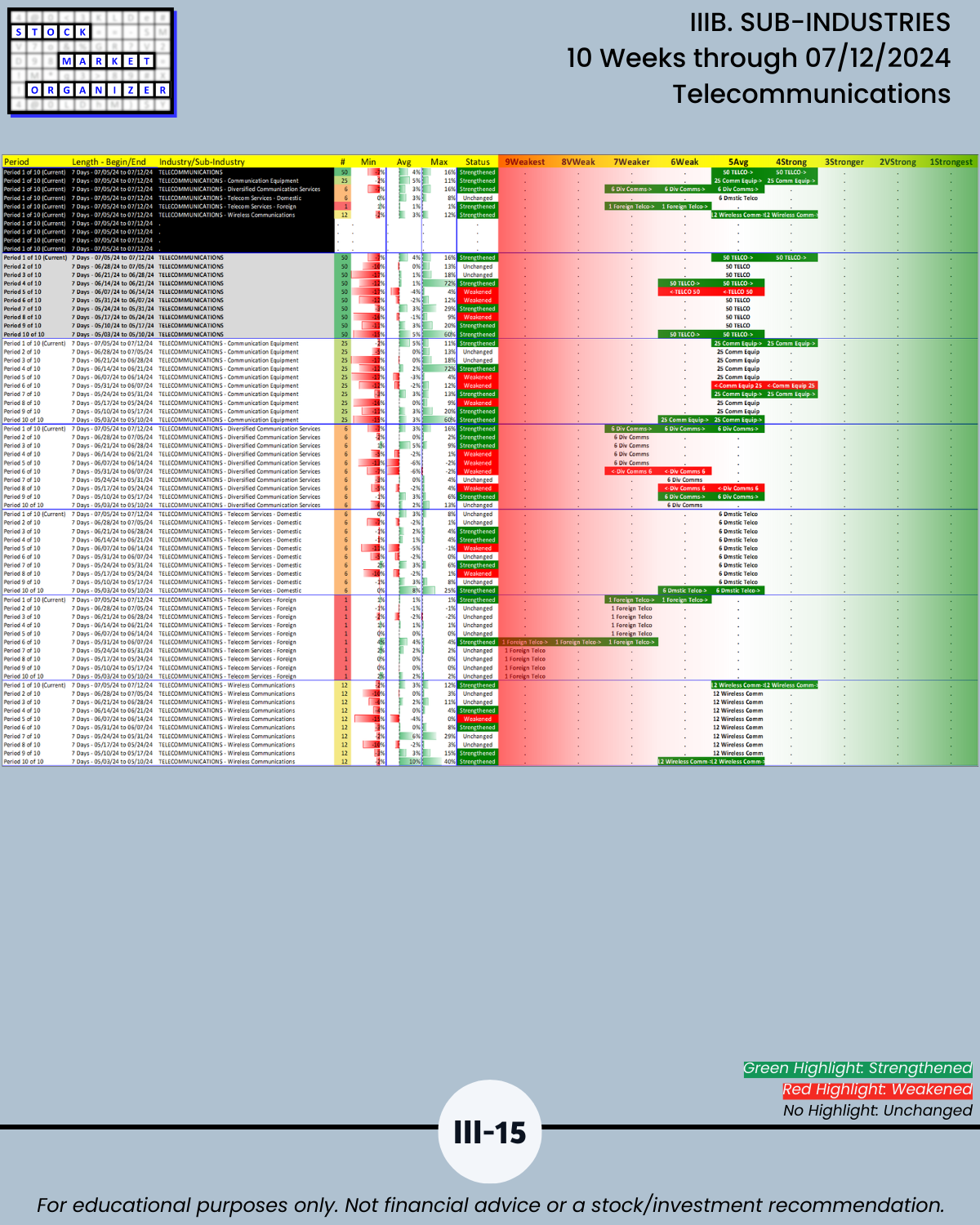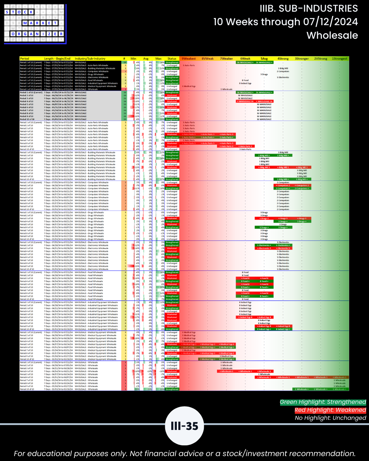 IIIB. SUB-INDUSTRIES 10-Week Strengthening/Weakening