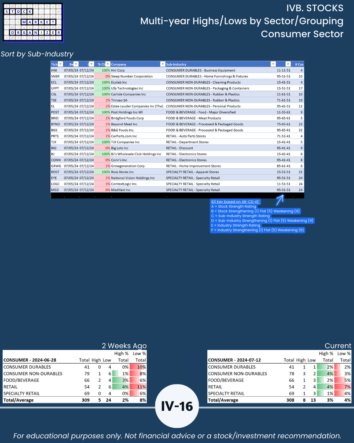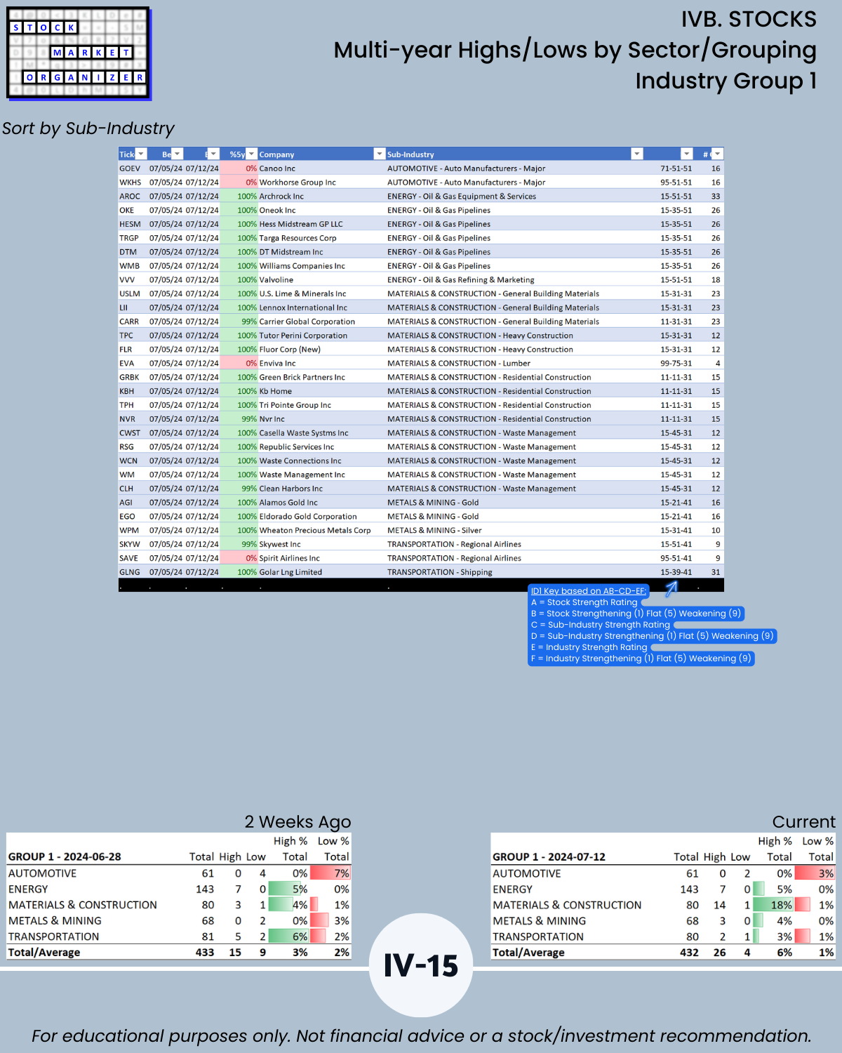 IVB. STOCKS Multi-Year Highs/Lows by Sector/Grouping