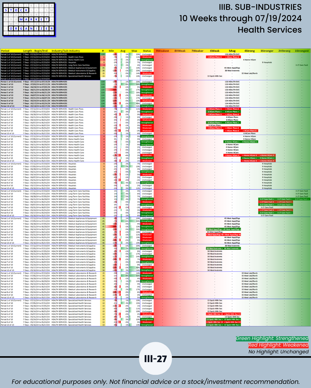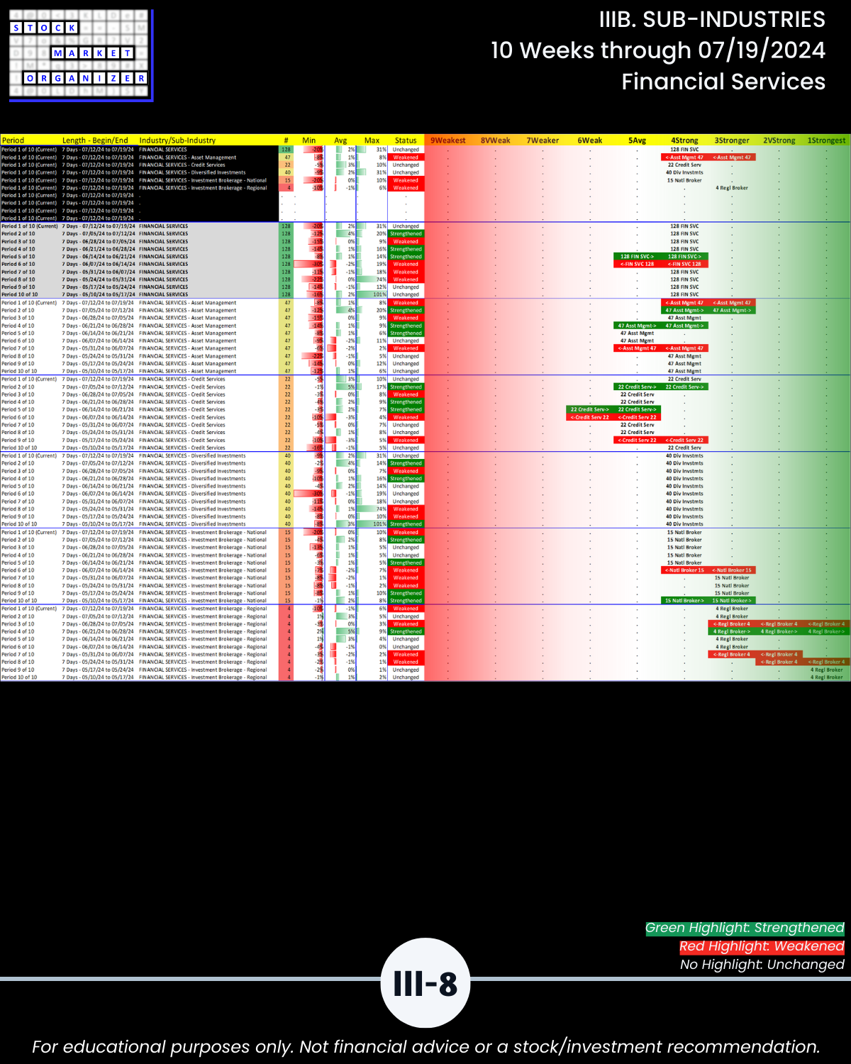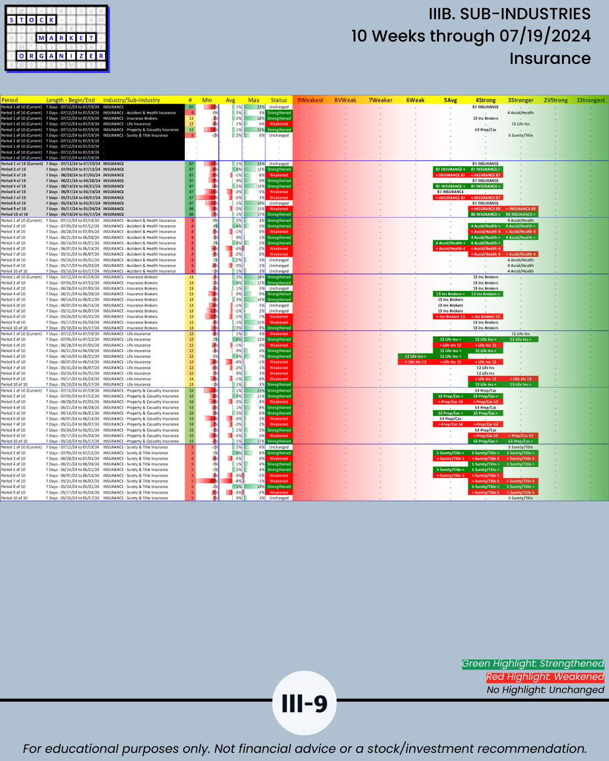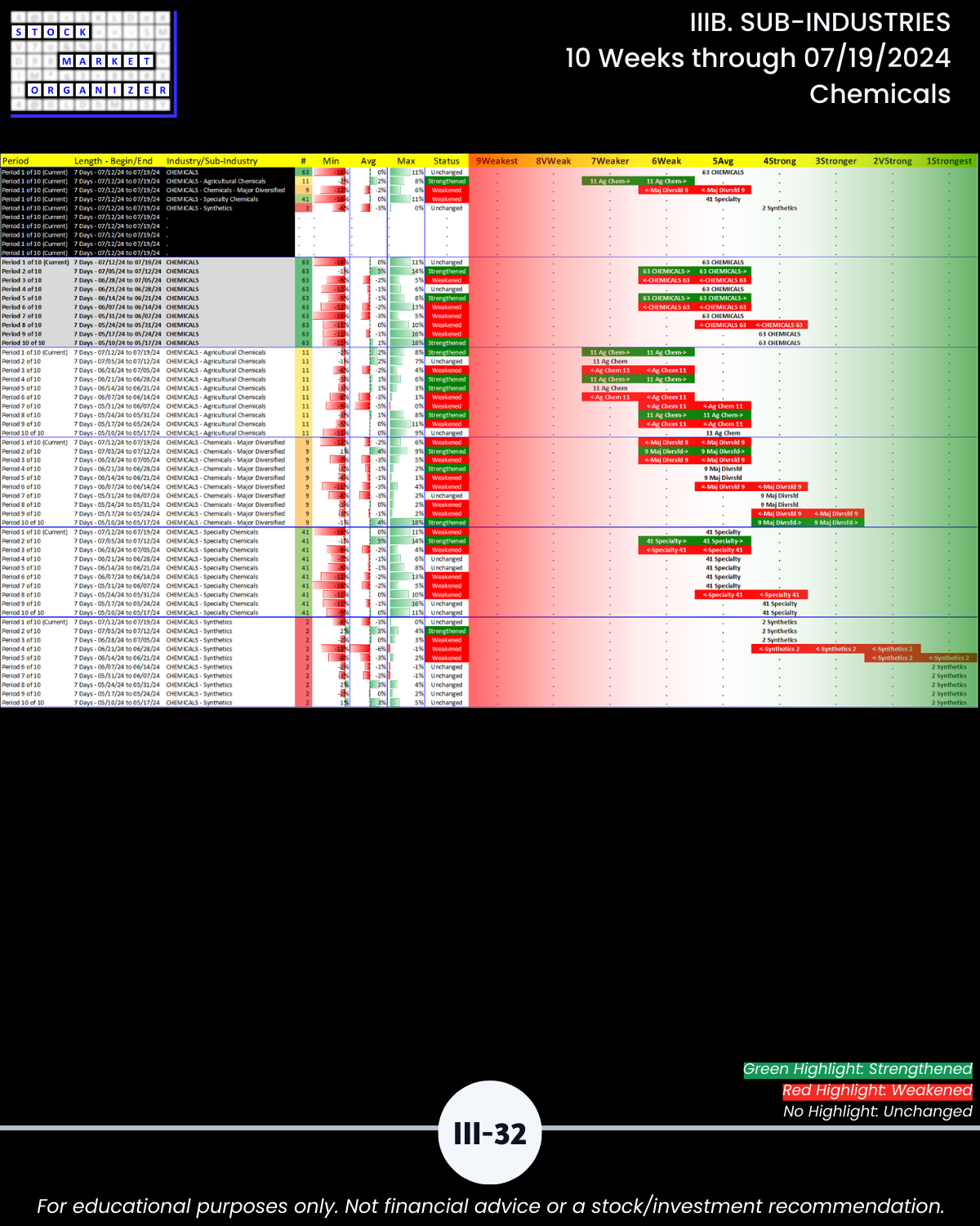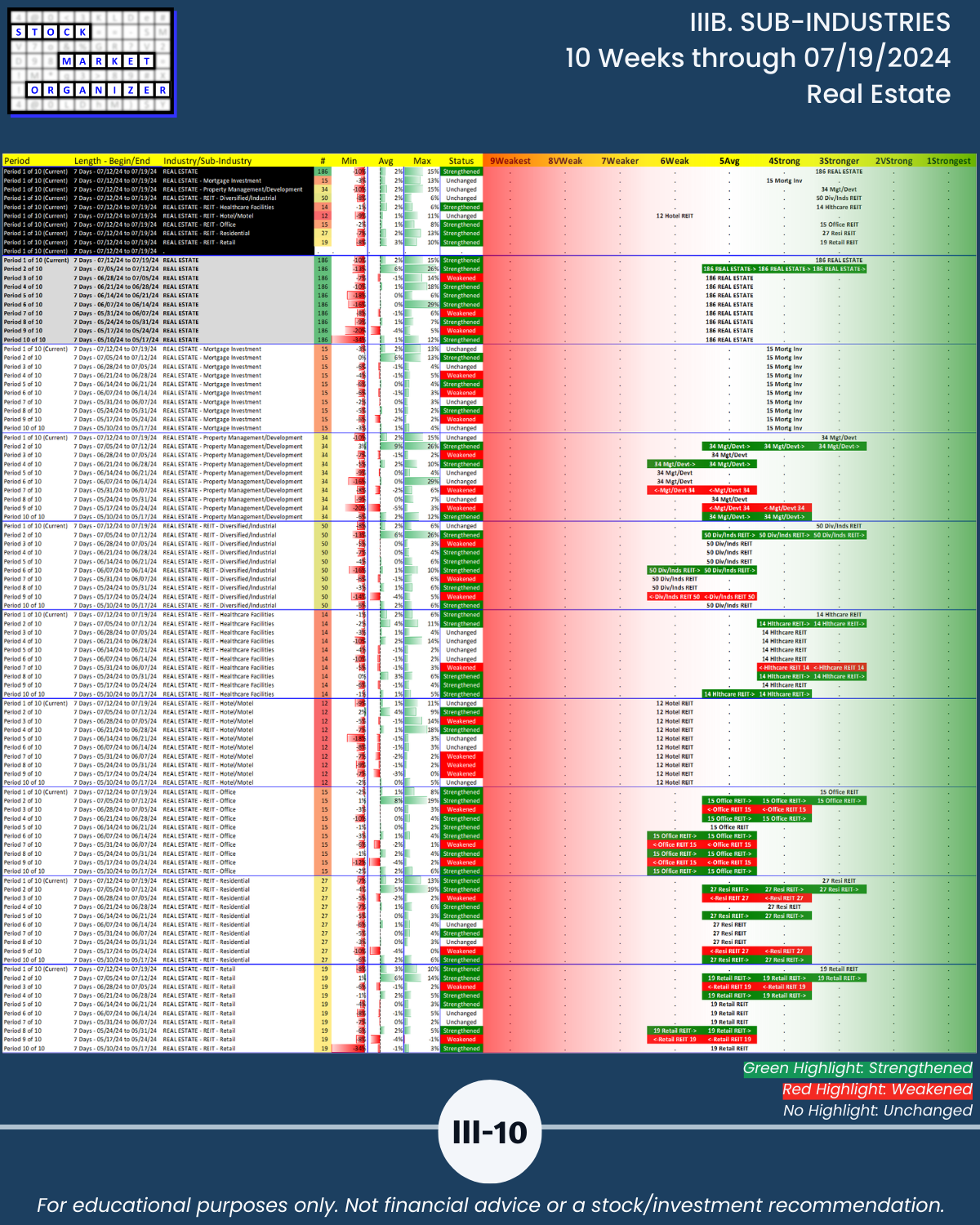 IIIB. SUB-INDUSTRIES 10-Week Strengthening/Weakening