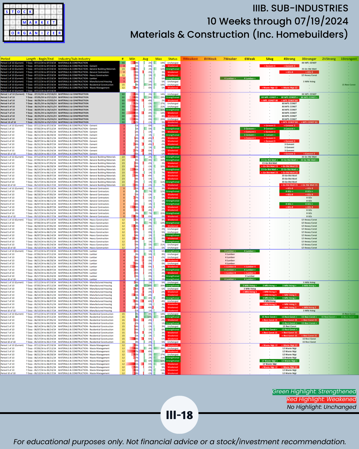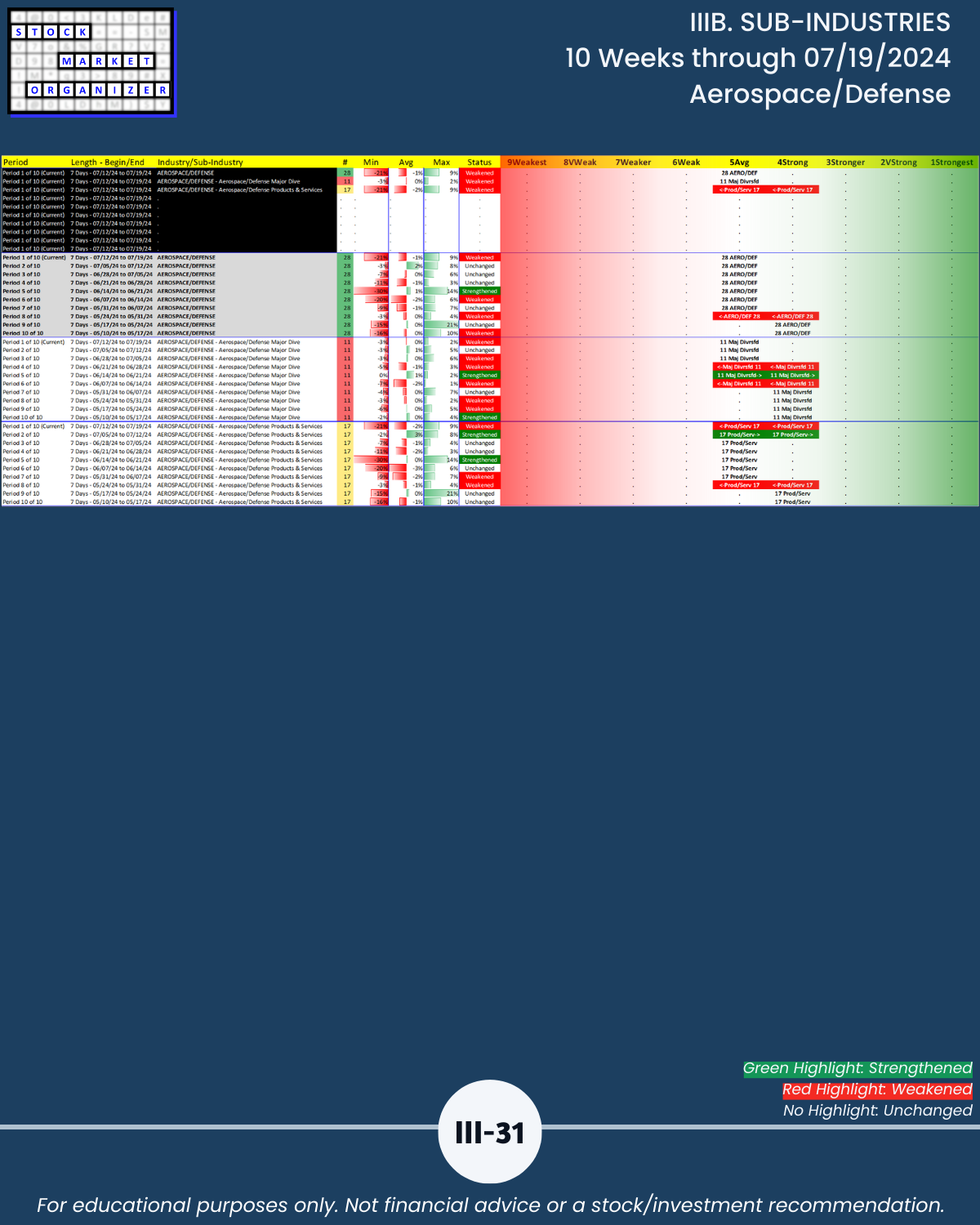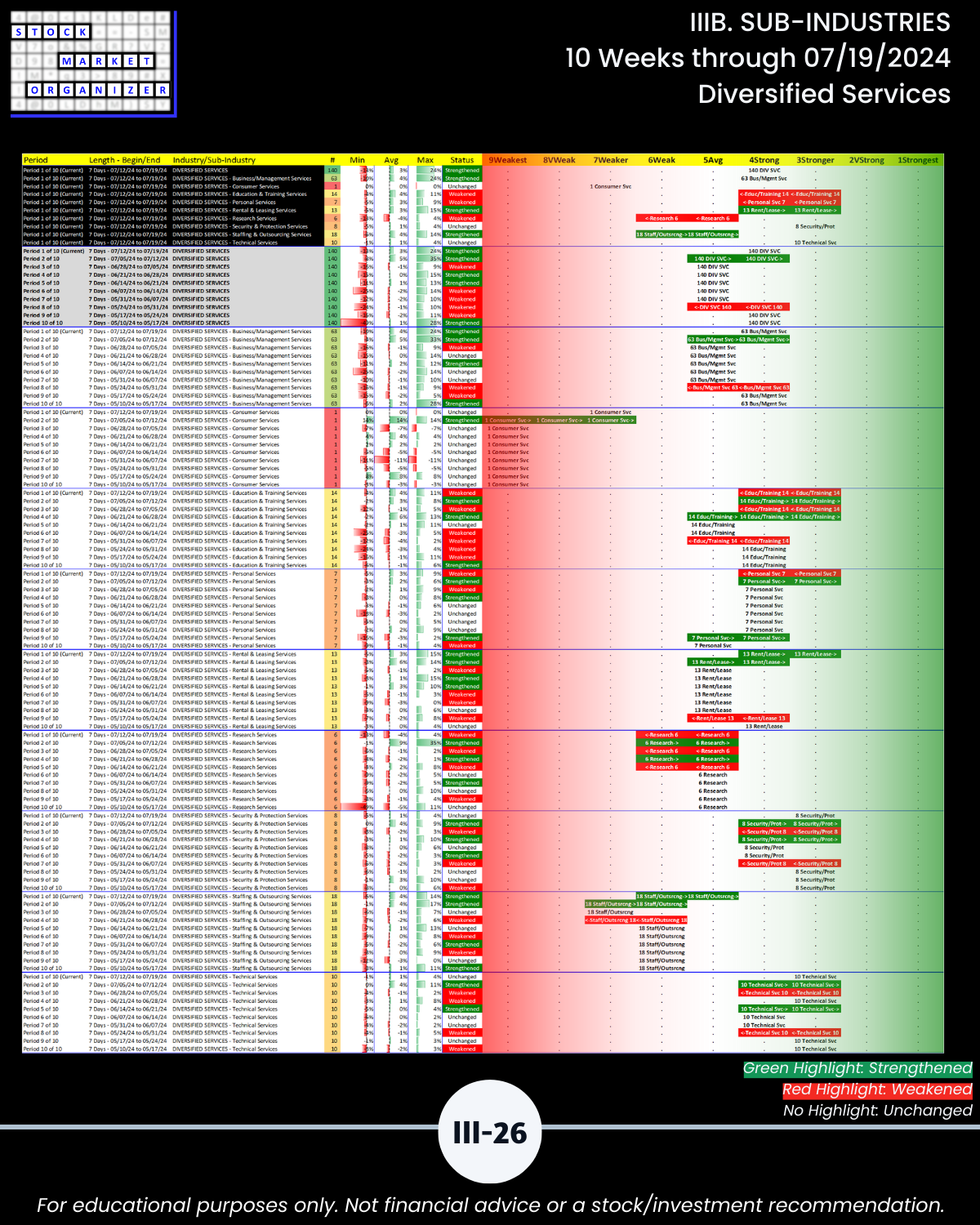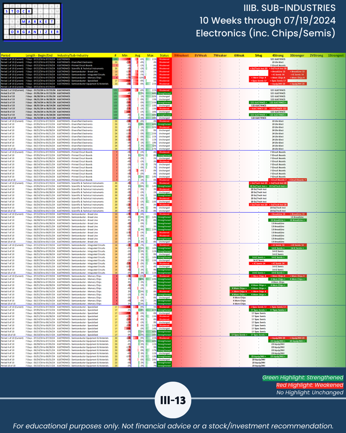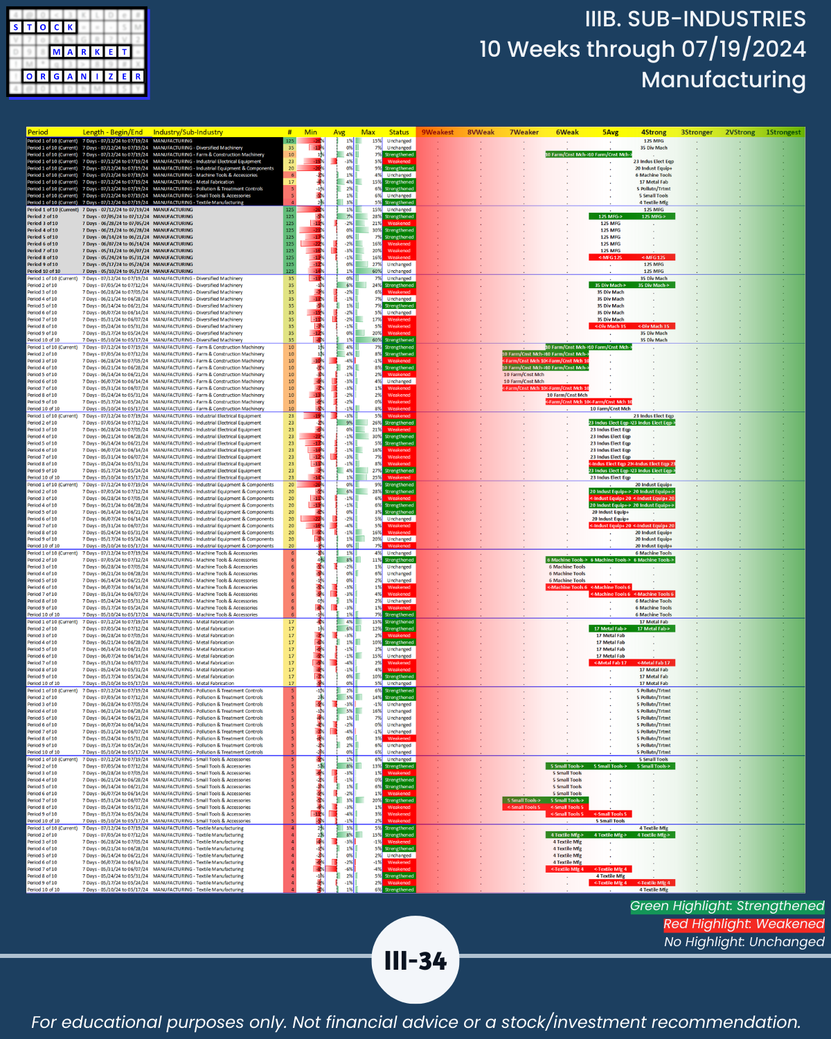 IIIB. SUB-INDUSTRIES 10-Week Strengthening/Weakening