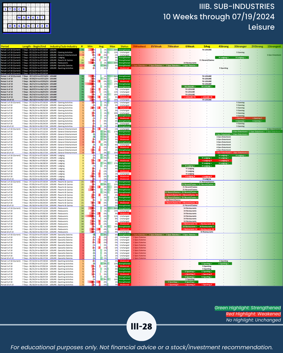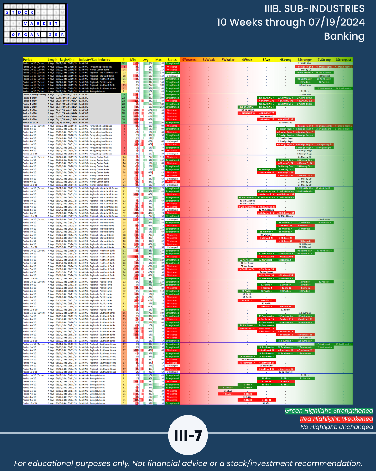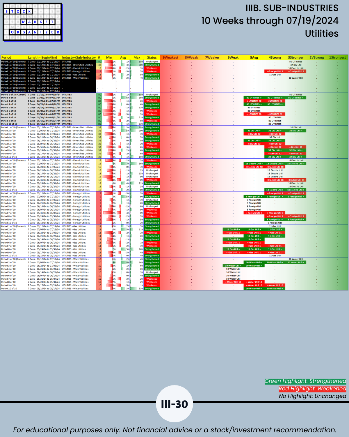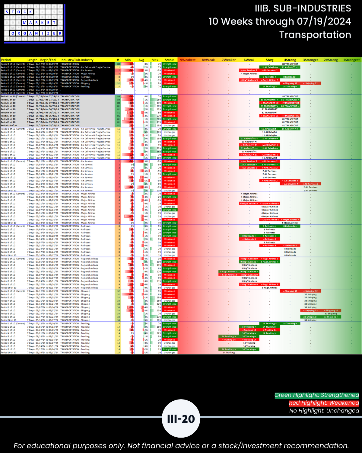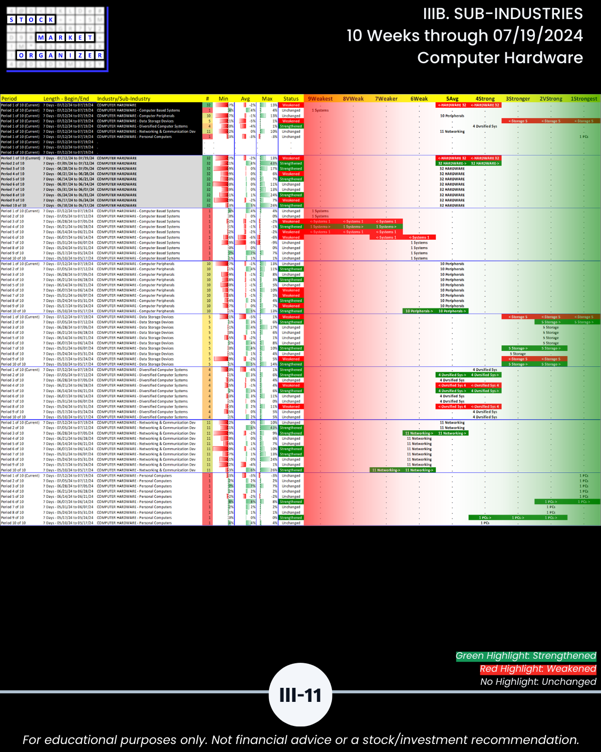 IIIB. SUB-INDUSTRIES 10-Week Strengthening/Weakening