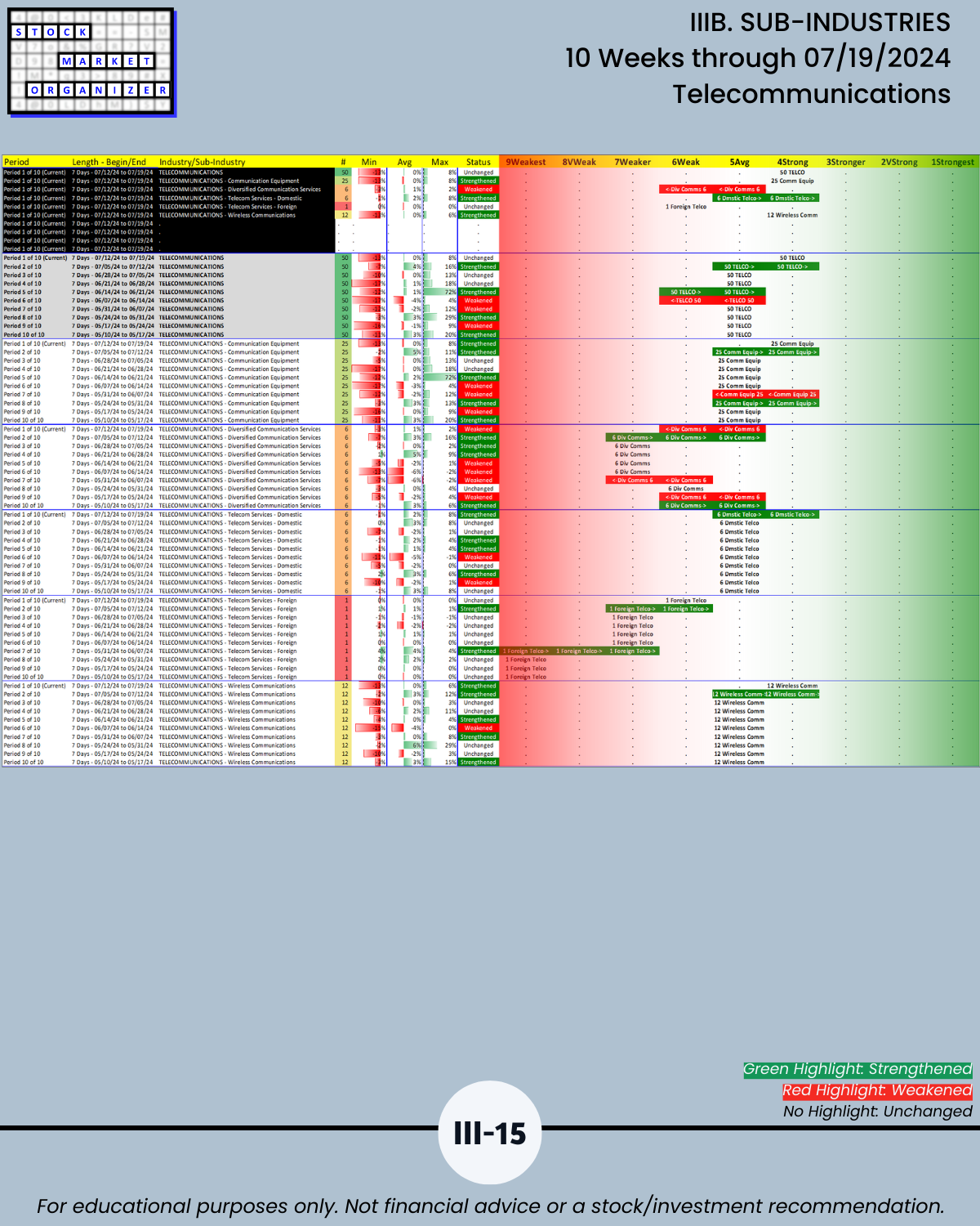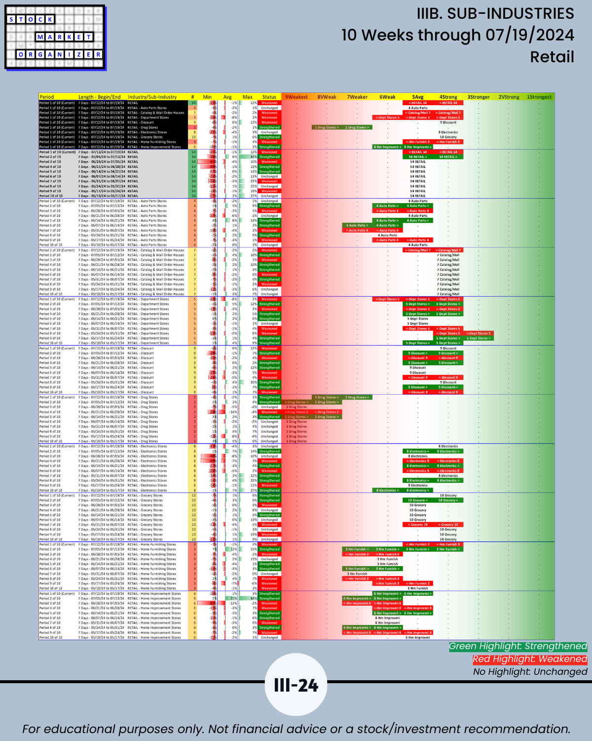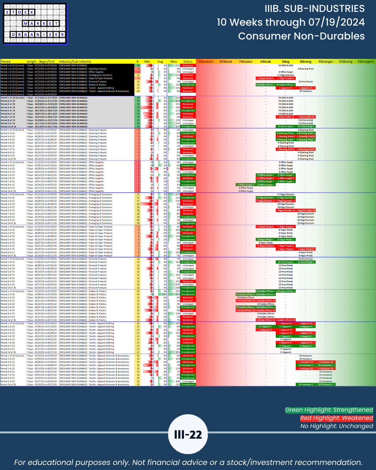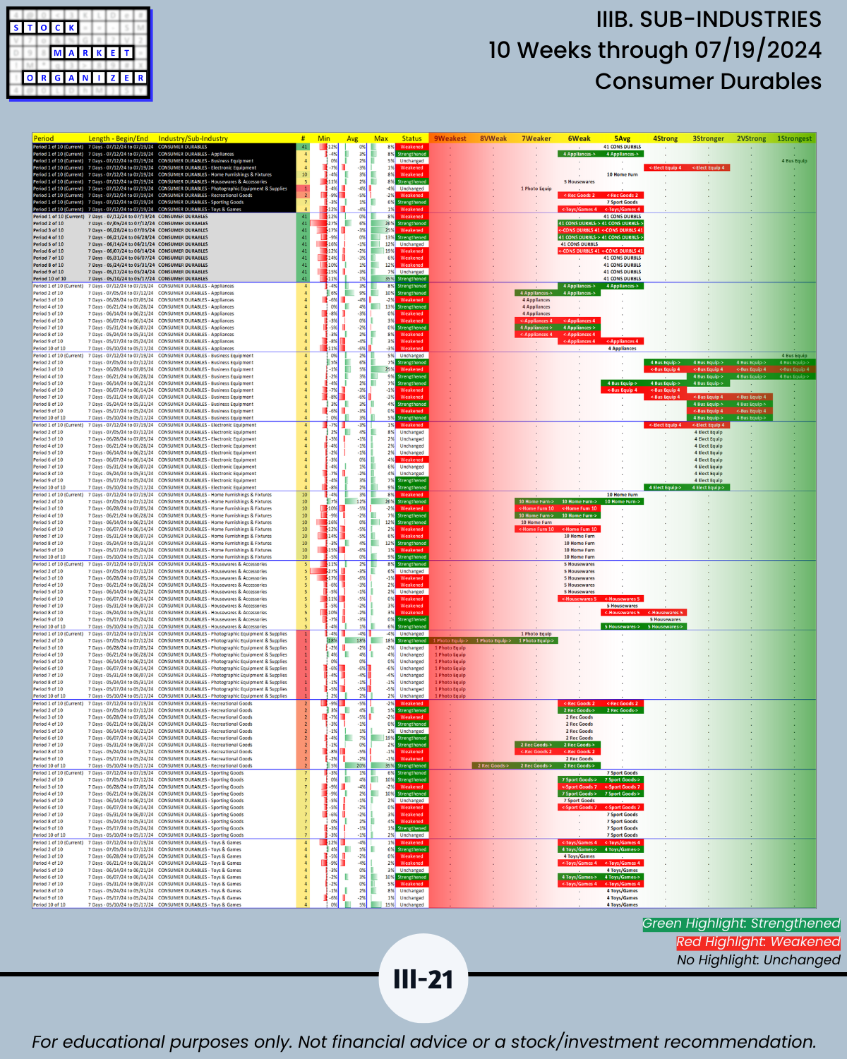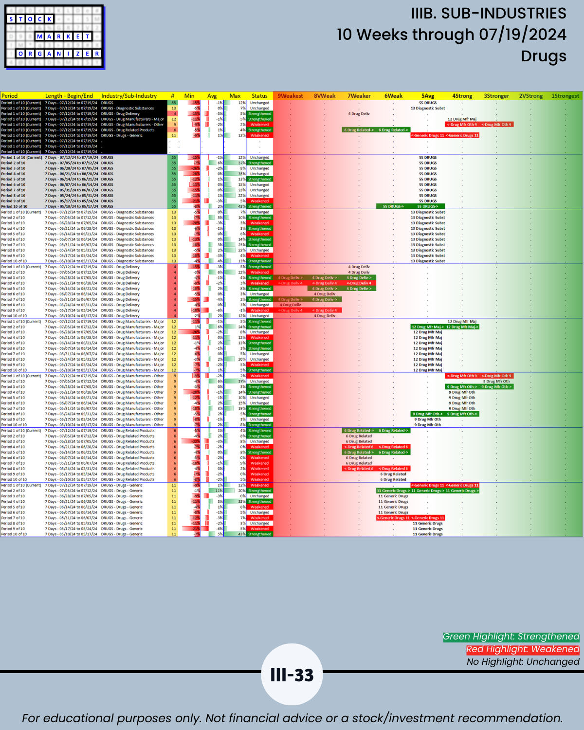 IIIB. SUB-INDUSTRIES 10-Week Strengthening/Weakening