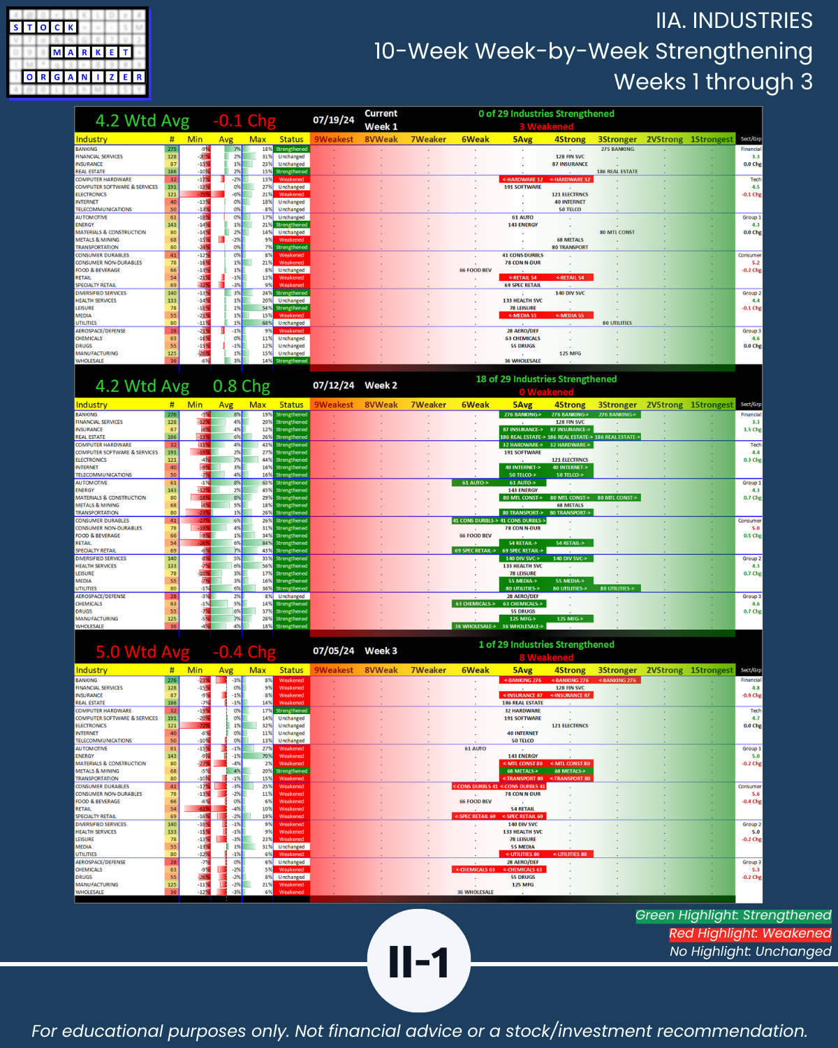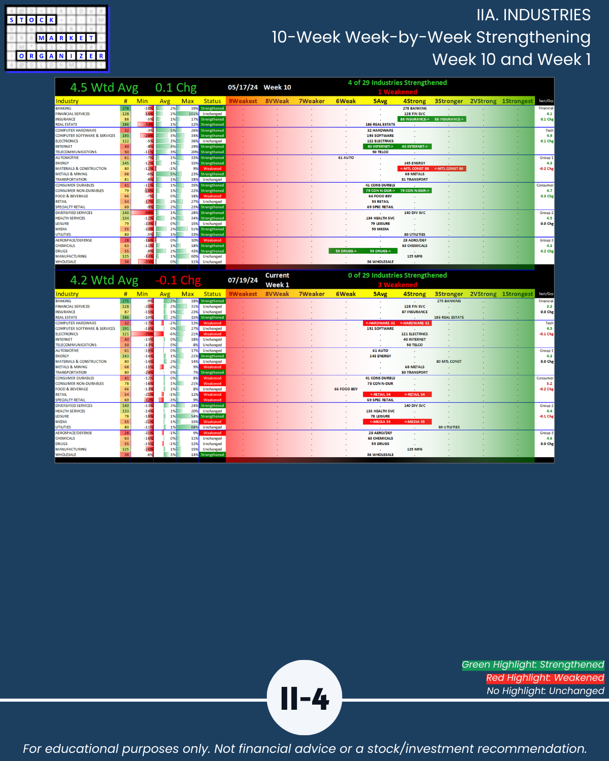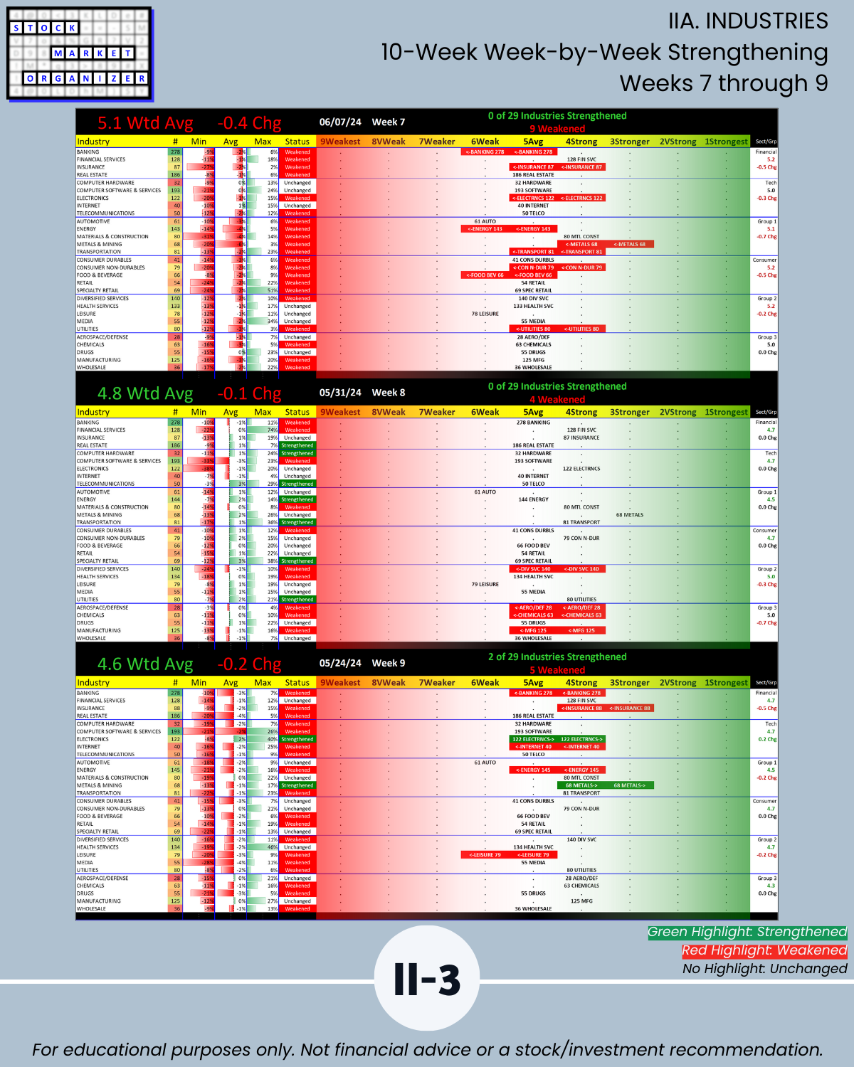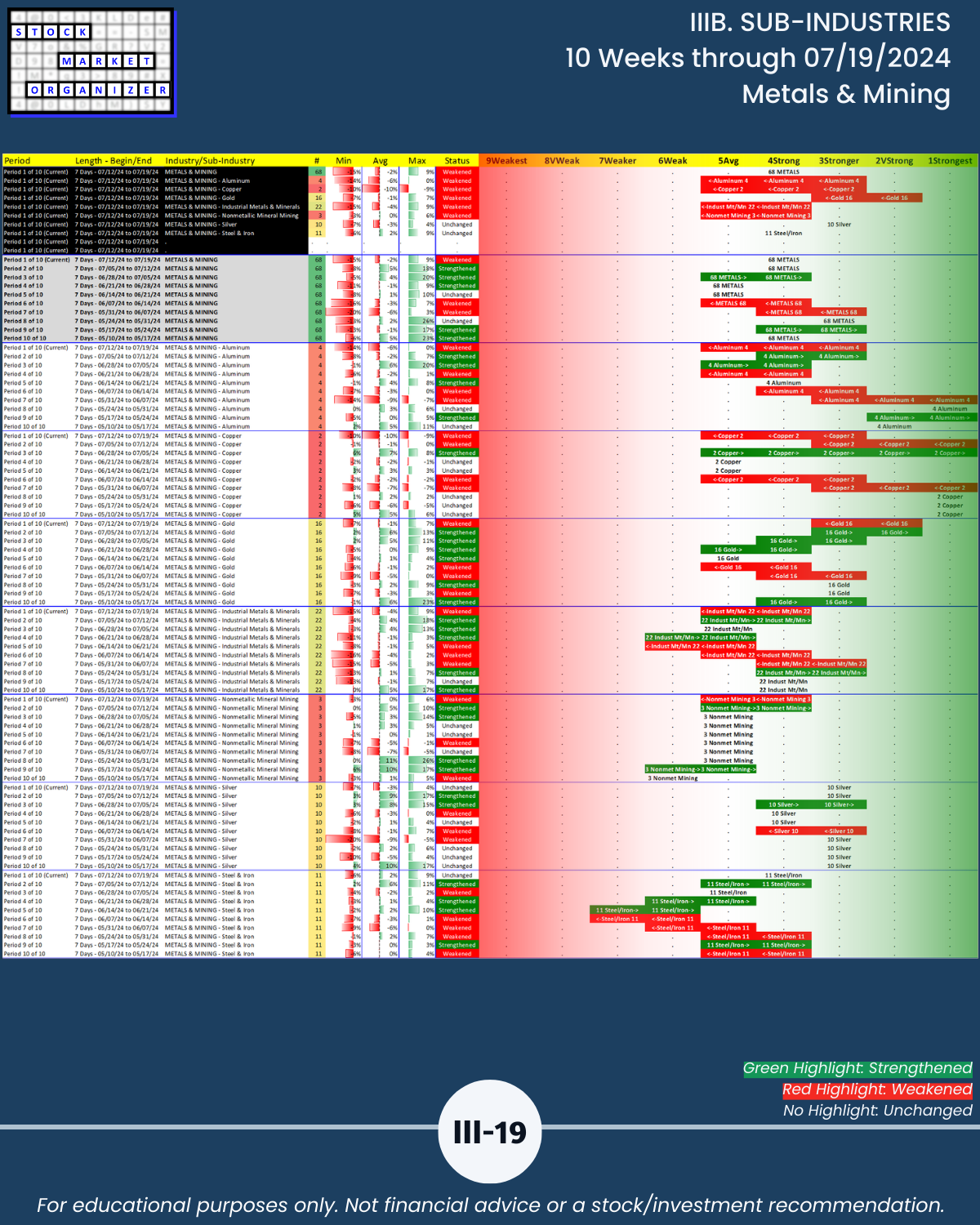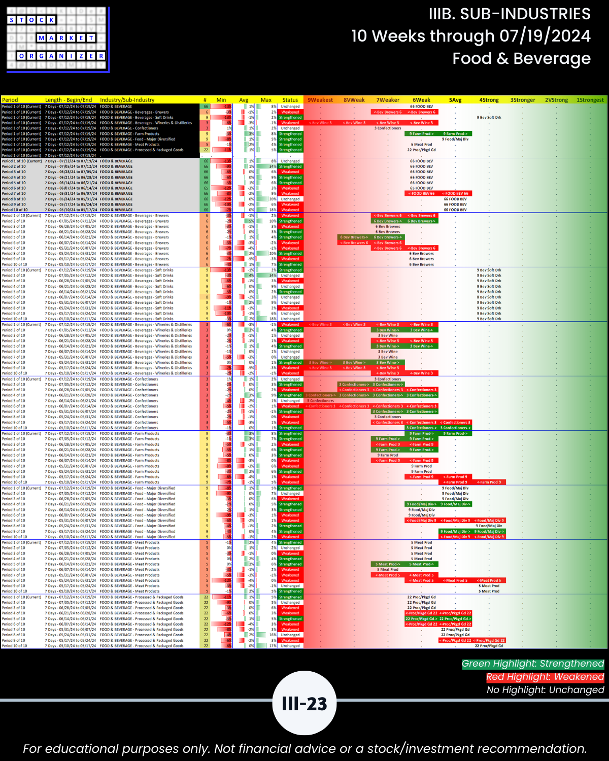 IIIB. SUB-INDUSTRIES 10-Week Strengthening/Weakening