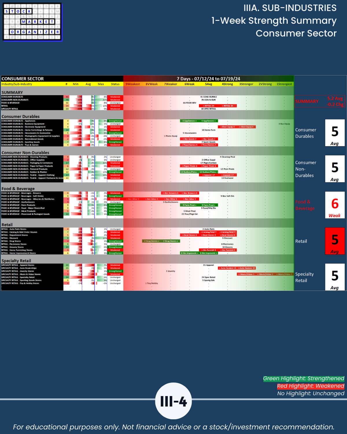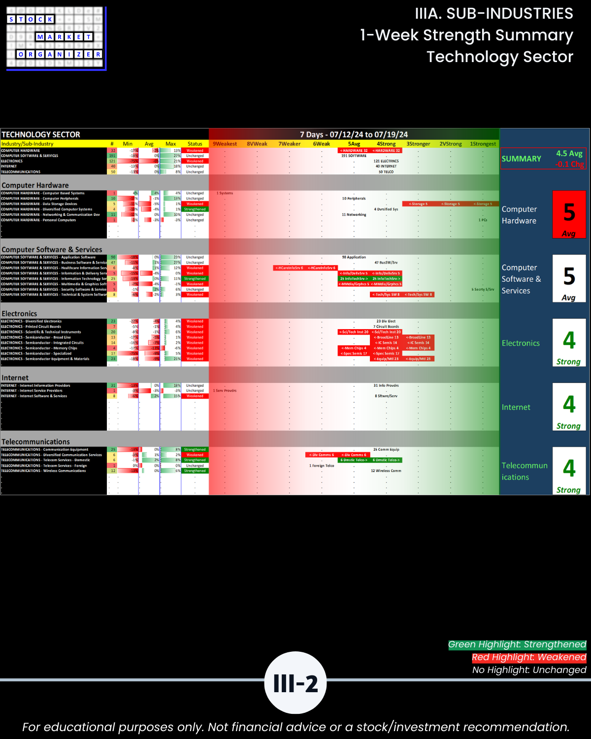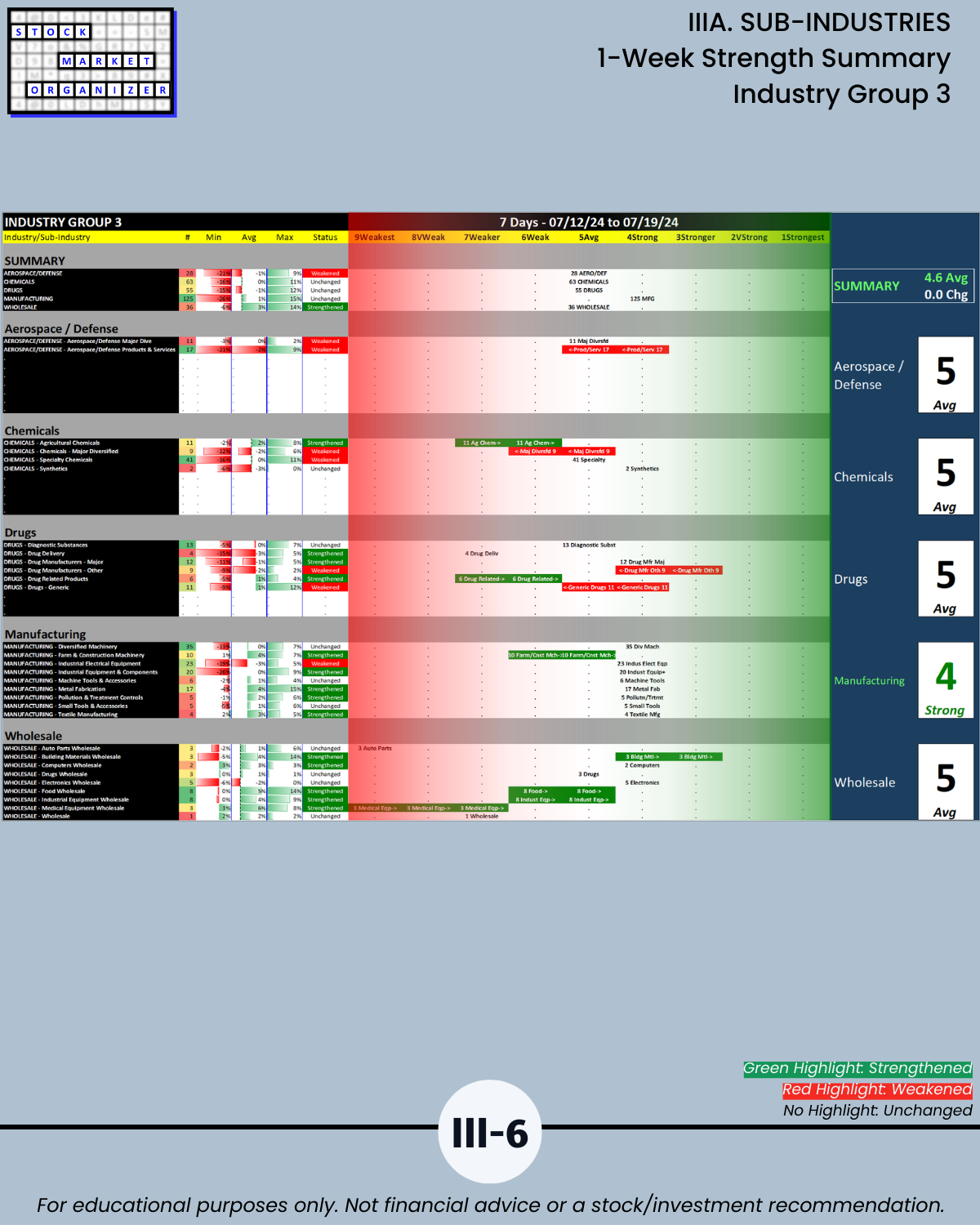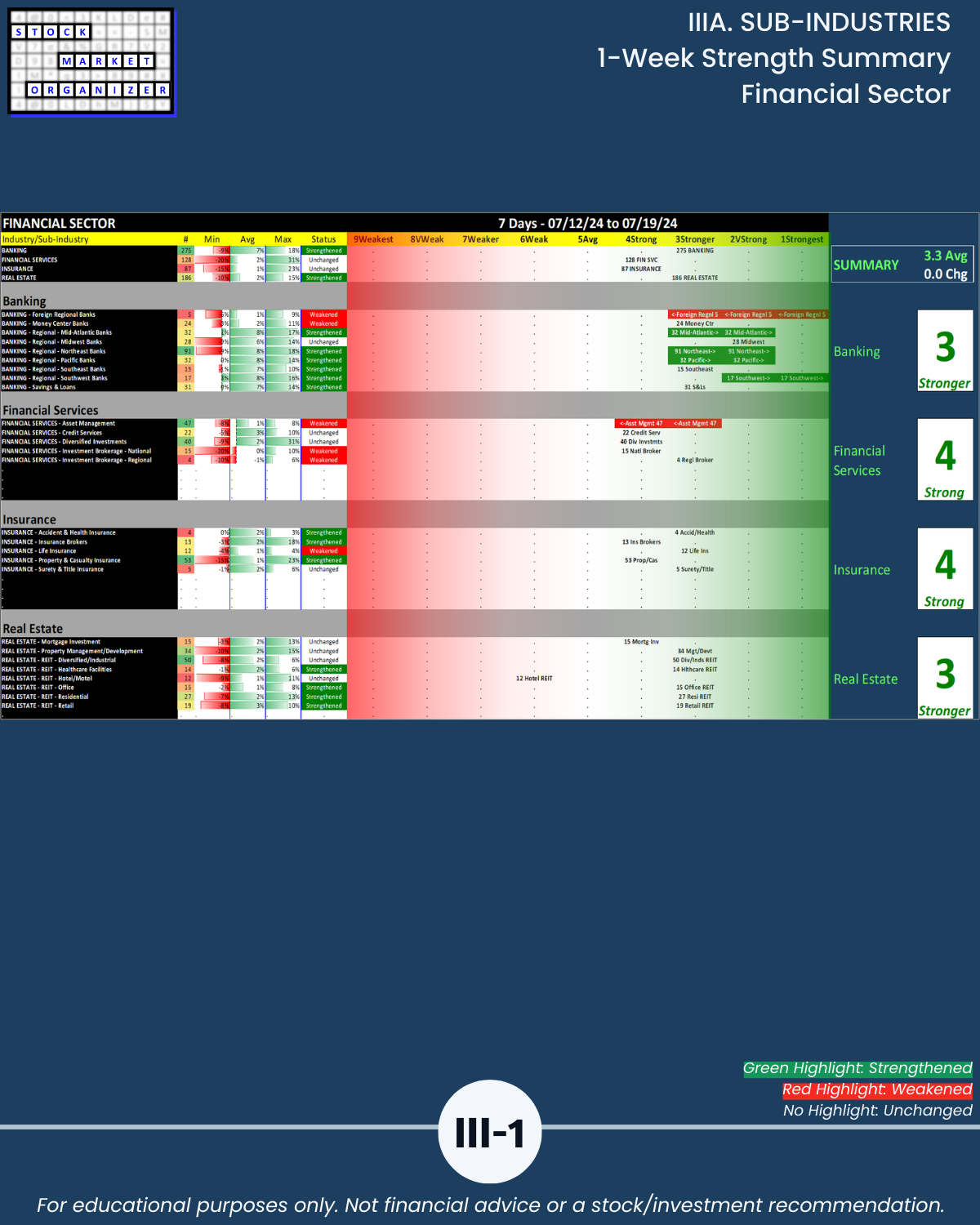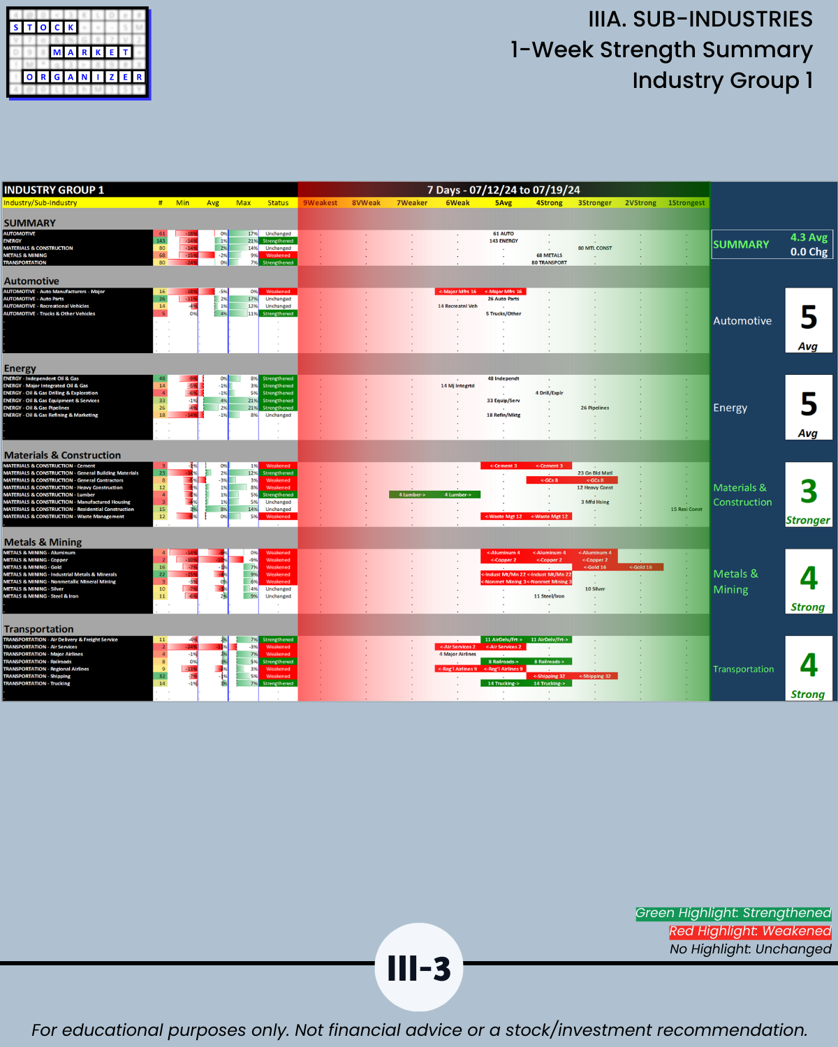 IIIA. SUB-INDUSTRIES 1-Week Strength Summary