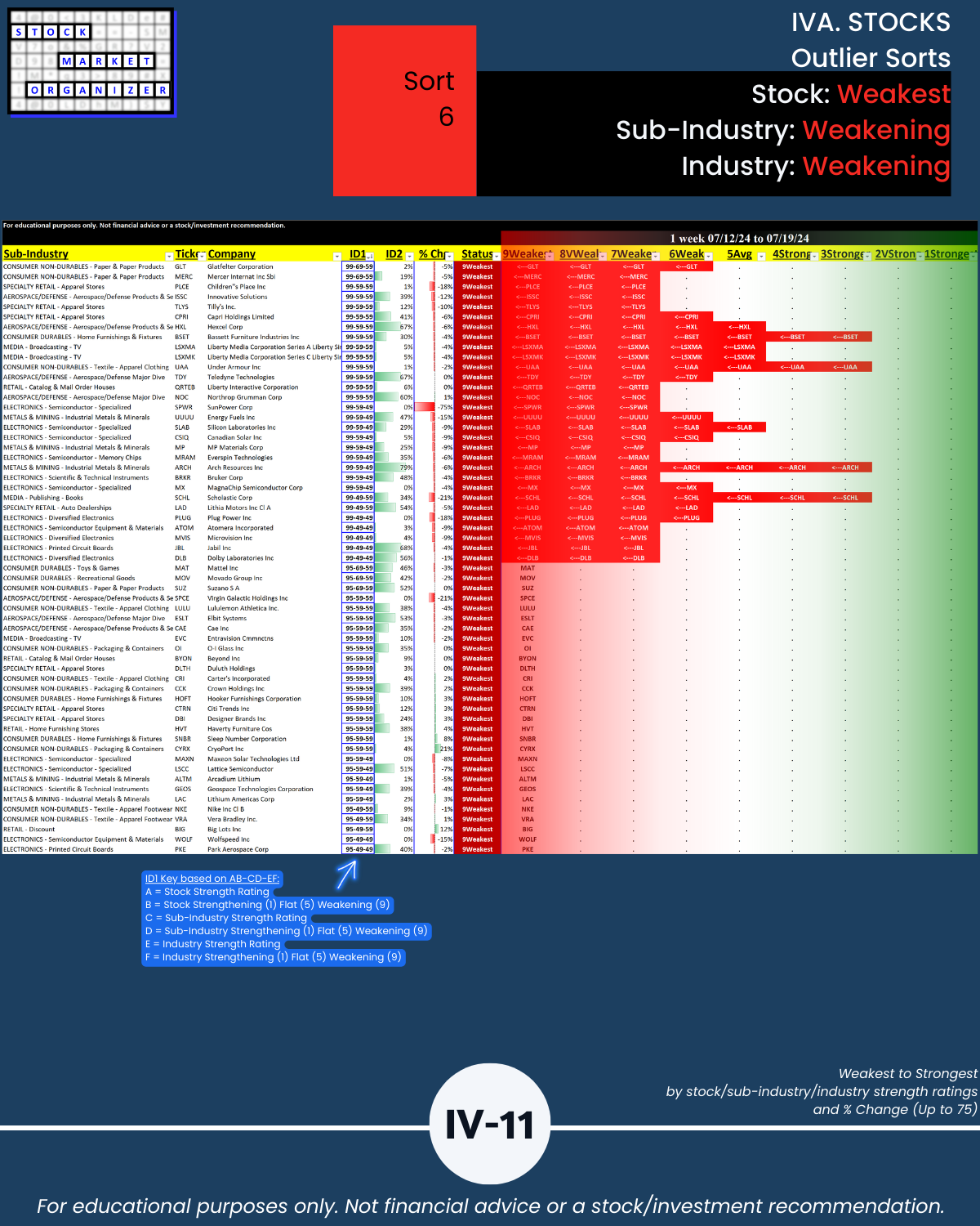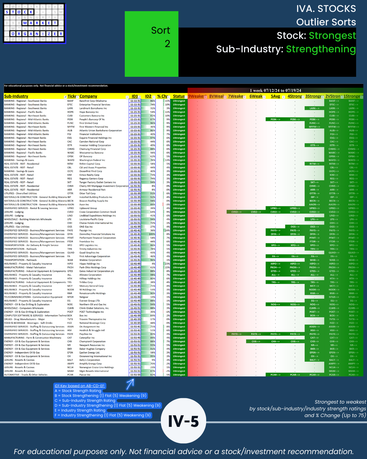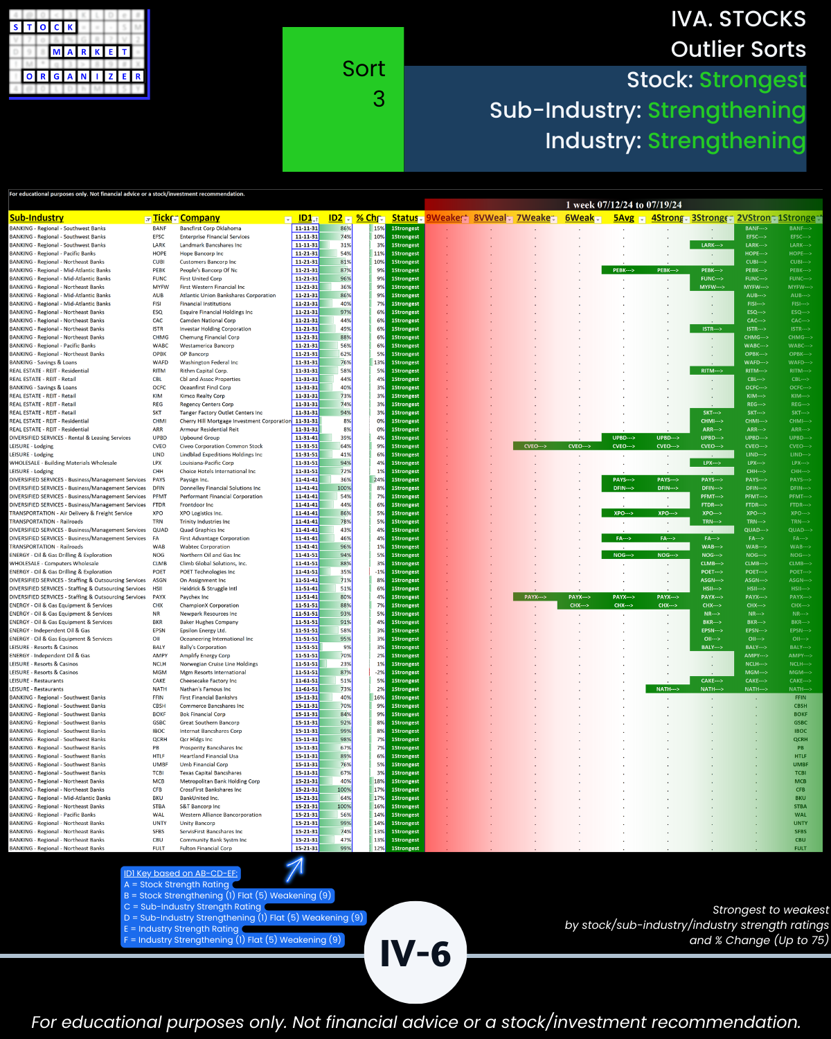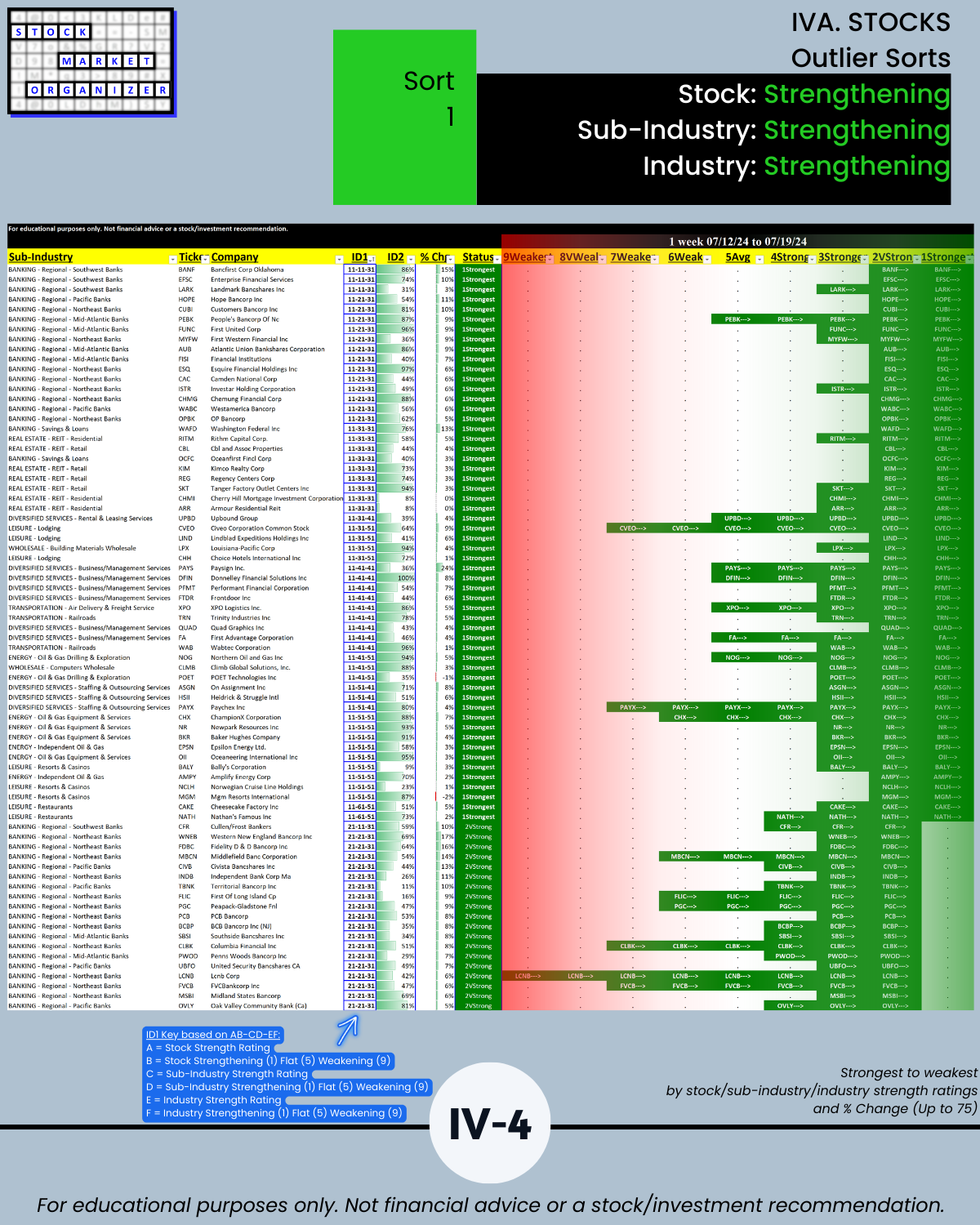 Knowing which stocks to ignore can be helpful. As is objectively knowing which strengthening stocks are also supported by strengthening sub-industries and strengthening industries (Sort1, page IV-4).